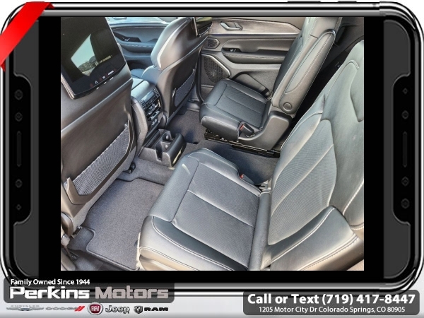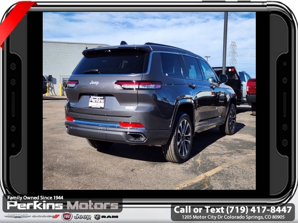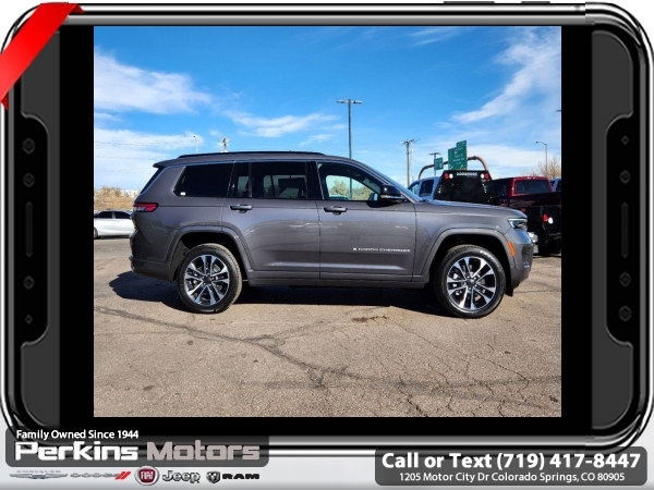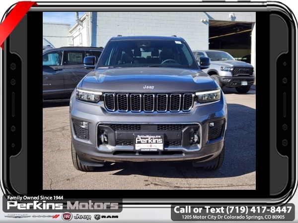 Factory MSRP: $67,160 $7,688 off MSRP! Baltic Gray Metallic Clearcoat 2025 Jeep Grand Cherokee L Overland 4WD 8-Speed Automatic 3.6L V6 24V VVT<br><br>Check us out at www.perkinsmotors.com to see our specials! Since opening our doors in 1944, we’ve been proud to serve Colorado Springs, CO, and the surrounding areas of Pueblo, Castle Rock and Denver, CO. Throughout this time of being family owned for 80 years, we’ve maintained a firm commitment to our customers: to offer a wide selection of New Chrysler, Dodge, Fiat, Jeep, and Ram vehicles and quality pre-owned vehicles, and provide a quick, no-hassle car-buying process that ensures everyone drives off the lot satisfied with their purchase.<br><br>Luxury Tech Group IV (2nd Row Manual Window Shades, Driver Power Seat Back Massage, Front Passenger Power Seat Back Massage, Nappa Leather Seats (TL), Passenger Seat Memory, Power Adjust 12-Way Driver Seat, Power Adjust 12-Way Front Passenger Seat, Rearview Autodim Digital Display Mirror, and Wireless Charging Pad), Quick Order Package 23N, Rear Seat Video Group I (Amazon Fire TV Built-In, Seatback Video Screens, and Video USB Port), Trailer Tow Package (7 & 4 Pin Wiring Harness and Class IV Receiver Hitch), 10 Speakers, 3.45 Rear Axle Ratio, 3rd row seats: split-bench, 4-Wheel Disc Brakes, ABS brakes, Adaptive suspension, Air Conditioning, Alloy wheels, AM/FM radio: SiriusXM with 360L, Anti-whiplash front head restraints, Audio memory, Auto High-beam Headlights, Auto-dimming door mirrors, Auto-dimming Rear-View mirror, Auto-leveling suspension, Automatic temperature control, Brake assist, Bumpers: body-color, Compass, Cruise Control, Delay-off headlights, Driver door bin, Driver vanity mirror, Dual front impact airbags, Dual front side impact airbags, Electronic Stability Control, Emergency communication system, Four wheel independent suspension, Front anti-roll bar, Front Bucket Seats, Front Center Armrest w/Storage, Front dual zone A/C, Front fog lights, Front License Plate Bracket, Front reading lights, Fully automatic headlights, Garage door transmitter, Heated door mirrors, Heated front seats, Heated rear seats, Heated steering wheel, Illuminated entry, Knee airbag, Low tire pressure warning, Memory seat, Model Year Tracking, Nappa Leather Seats, Navigation System, Normal Duty Suspension, Occupant sensing airbag, Outside temperature display, Overhead airbag, Overhead console, Panic alarm, Passenger door bin, Passenger vanity mirror, Power door mirrors, Power driver seat, Power Fold Seatbacks, Power Liftgate, Power moonroof, Power passenger seat, Power steering, Power windows, Radio data system, Radio: Uconnect 5 Nav w/10.1 Display, Rain sensing wipers, Rear air conditioning, Rear anti-roll bar, Rear reading lights, Rear window defroster, Rear window wiper, Reclining 3rd row seat, Remote keyless entry, Security system, Speed-Sensitive Wipers, Split folding rear seat, Spoiler, Steering wheel memory, Steering wheel mounted audio controls, Tachometer, Telescoping steering wheel, Tilt steering wheel, Traction control, Trip computer, Turn signal indicator mirrors, Variably intermittent wipers, Ventilated front seats, Voltmeter, and Wheels: 20 x 8.5 Machined Face Aluminum.
