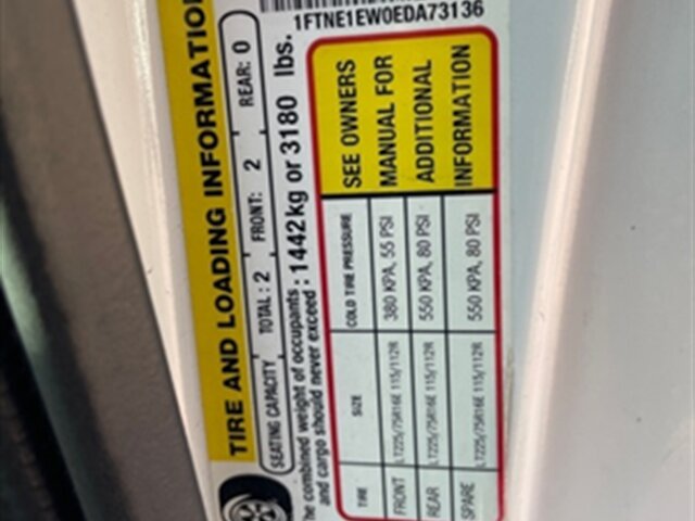 INSTALLED FEATURES: Front air conditioning, Front air conditioning zones: single, Front airbags: dual, Antenna type: mast, Auxiliary audio input: jack, Radio: AM/FM, Total speakers: 2, ABS: 4-wheel, Electronic brakeforce distribution, Front brake diameter: 13.0, Front brake type: ventilated disc, Rear brake diameter: 12.9, Rear brake type: ventilated disc, Armrests: front center, Floor material: rubber/vinyl, Ashtray, Cargo area light, Center console: front console with storage, Cupholders: front, Power outlet(s): 12V front, Power steering, Steering wheel: tilt, Storage: door pockets, Axle ratio: 3.73, Alternator: 120 amps, Battery: maintenance-free, Door handle color: black, Front bumper color: black, Mirror color: black, Rear bumper color: black, Rear trunk/liftgate: barn, Side door type: passenger-side hinged swing-out, Clock, Gauge: tachometer, Warnings and reminders: low fuel level, Side mirror adjustments: manual / manual telescoping, OEM roof height: undefined, Front seatbelts: 3-point, Seatbelt pretensioners: front, Driver seat manual adjustments: height, Front seat type: bucket, Passenger seat manual adjustments, Upholstery: vinyl, Roll stability control, Stability control, Traction control, Front shock type: gas, Front spring type: coil, Front stabilizer bar, Front suspension classification: independent, Front suspension type: twin I-beam, Rear shock type: gas, Rear spring type: leaf, Rear suspension classification: solid live axle, Rear suspension type: multi-leaf, Spare tire mount location: underbody, Spare tire size: full-size matching, Spare wheel type: steel, Tire Pressure Monitoring System, Tire type: all season, Wheel covers: full, Wheels: steel, Auxiliary transmission fluid cooler, Front wipers: intermittent, Tinted glass