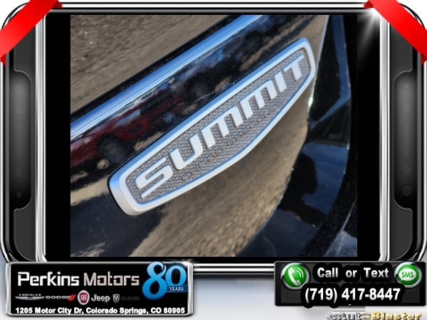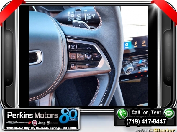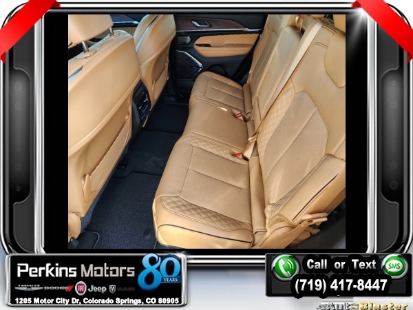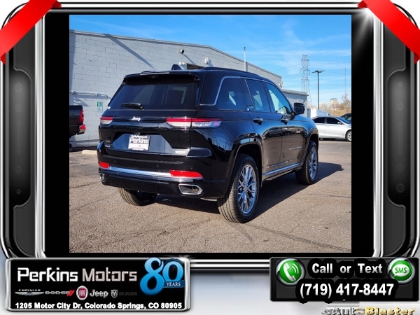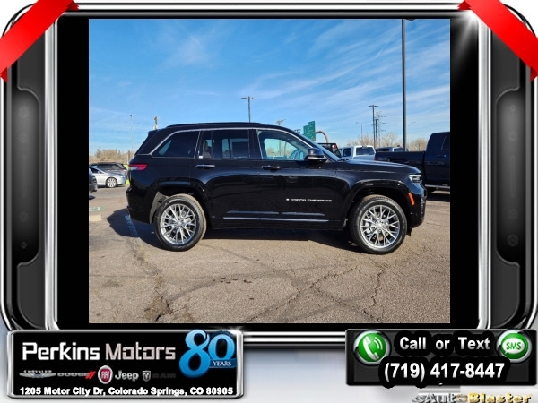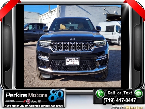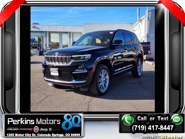 Factory MSRP: $71,315 $6,000 off MSRP! Diamond Black Crystal Pearlcoat 2025 Jeep Grand Cherokee Summit 4WD 8-Speed Automatic 3.6L V6 24V VVT<br>4WD.<br>Check us out at www.perkinsmotors.com to see our specials! Since opening our doors in 1944, we’ve been proud to serve Colorado Springs, CO, and the surrounding areas of Pueblo, Castle Rock and Denver, CO. Throughout this time of being family owned for 80 years, we’ve maintained a firm commitment to our customers: to offer a wide selection of New Chrysler, Dodge, Fiat, Jeep, and Ram vehicles and quality pre-owned vehicles, and provide a quick, no-hassle car-buying process that ensures everyone drives off the lot satisfied with their purchase.<br><br>ADV Protech Group IV (Heads-Up Display, Night Vision w/Pedestrian-Animal Detection, Rearview Autodim Digital Display Mirror, and Windshield Wiper De-Icer), Hands-Free Active Driving Assist System (Auxiliary Battery), Luxury Tech Group V (2nd-Row Manual Window Shades and Wireless Charging Pad), Quick Order Package 23S, 4WD, 10 Speakers, 19 Speakers High Performance Audio, 4-Wheel Disc Brakes, 950 Watt Amplifier, ABS brakes, Active Noise Control System, Adaptive suspension, Air Conditioning, Alloy wheels, AM/FM radio: SiriusXM with 360L, Anti-whiplash front head restraints, Audio memory, Auto High-beam Headlights, Auto-dimming door mirrors, Auto-dimming Rear-View mirror, Auto-leveling suspension, Automatic temperature control, Brake assist, Bumpers: body-color, Compass, Cruise Control, Delay-off headlights, Driver door bin, Driver vanity mirror, Dual front impact airbags, Dual front side impact airbags, Electronic Stability Control, Emergency communication system, Four wheel independent suspension, Front anti-roll bar, Front Bucket Seats, Front Center Armrest w/Storage, Front dual zone A/C, Front fog lights, Front License Plate Bracket, Front Passenger Interactive Display, Front reading lights, Fully automatic headlights, Garage door transmitter, Genuine wood dashboard insert, Genuine wood door panel insert, Heated door mirrors, Heated front seats, Heated rear seats, Heated steering wheel, Illuminated entry, Knee airbag, Leather steering wheel, Low tire pressure warning, Memory seat, Model Year Tracking, Nappa Leather Seats, Navigation System, Normal Duty Suspension, Occupant sensing airbag, Outside temperature display, Overhead airbag, Overhead console, Panic alarm, Passenger door bin, Passenger vanity mirror, Power door mirrors, Power driver seat, Power Liftgate, Power moonroof, Power passenger seat, Power steering, Power windows, Radio data system, Radio: Uconnect 5 Nav w/10.1 Display, Rain sensing wipers, Rear air conditioning, Rear anti-roll bar, Rear dual zone A/C, Rear reading lights, Rear seat center armrest, Rear window defroster, Rear window wiper, Remote keyless entry, Security system, Speed-Sensitive Wipers, Split folding rear seat, Spoiler, Steering wheel memory, Steering wheel mounted audio controls, Tachometer, Telescoping steering wheel, Tilt steering wheel, Traction control, Trip computer, Turn signal indicator mirrors, Variably intermittent wipers, Ventilated front seats, Voltmeter, and Wheels: 20 x 8.5 Fully Painted Aluminum Silver.<br><br>19/26 City/Highway MPG Sale price includes all manufacture's incentives and dealer discounts. Sale price not available on lease or compatible with special APR. $1000 - 2025 National Retail Consumer Cash. Exp. 01/02/2025 $1500 - 2025 National Holiday Bonus Cash. Exp. 01/02/2025