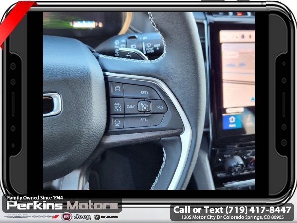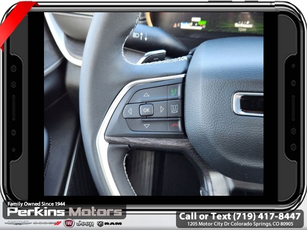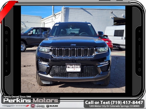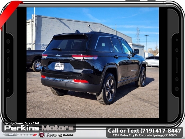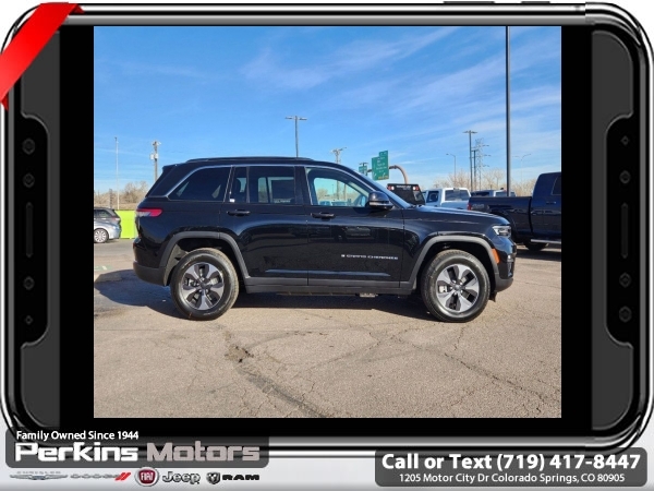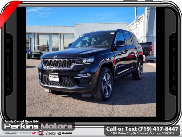 Factory MSRP: $62,880 $10,000 off MSRP! Priced below KBB Fair Purchase Price! Diamond Black Crystal Pearlcoat 2025 Jeep Grand Cherokee 4xe 4WD 8-Speed Automatic 2.0L I4 DOHC<br>2.0L I4 DOHC, 4WD.<br>Check us out at www.perkinsmotors.com to see our specials! Since opening our doors in 1944, we’ve been proud to serve Colorado Springs, CO, and the surrounding areas of Pueblo, Castle Rock and Denver, CO. Throughout this time of being family owned for 80 years, we’ve maintained a firm commitment to our customers: to offer a wide selection of New Chrysler, Dodge, Fiat, Jeep, and Ram vehicles and quality pre-owned vehicles, and provide a quick, no-hassle car-buying process that ensures everyone drives off the lot satisfied with their purchase.<br><br>Quick Order Package 27F, 2.0L I4 DOHC, 4WD, 10 Speakers, 3.70 Rear Axle Ratio, 4-Wheel Disc Brakes, ABS brakes, Air Conditioning, Alloy wheels, AM/FM radio: SiriusXM with 360L, Anti-whiplash front head restraints, Audio memory, Auto High-beam Headlights, Automatic temperature control, Brake assist, Bumpers: body-color, Capri Leatherette Seats, Compass, Cruise Control, Delay-off headlights, Driver door bin, Driver vanity mirror, Dual front impact airbags, Dual front side impact airbags, Electronic Stability Control, Four wheel independent suspension, Front anti-roll bar, Front Bucket Seats, Front Center Armrest w/Storage, Front dual zone A/C, Front fog lights, Front License Plate Bracket, Front reading lights, Fully automatic headlights, Garage door transmitter, Heated door mirrors, Heated front seats, Heated rear seats, Heated steering wheel, Heavy Duty Suspension, Illuminated entry, Knee airbag, Low tire pressure warning, Memory seat, Model Year Tracking, Navigation System, Occupant sensing airbag, Outside temperature display, Overhead airbag, Overhead console, Panic alarm, ParkView Rear Back-Up Camera, Passenger door bin, Passenger vanity mirror, Power door mirrors, Power driver seat, Power Liftgate, Power moonroof, Power passenger seat, Power steering, Power windows, Radio data system, Radio: Uconnect 5 Nav w/10.1 Display, Rear anti-roll bar, Rear reading lights, Rear window defroster, Rear window wiper, Remote keyless entry, Security system, Speed-Sensitive Wipers, Split folding rear seat, Spoiler, Steering wheel mounted audio controls, Tachometer, Telescoping steering wheel, Tilt steering wheel, Traction control, Trip computer, Turn signal indicator mirrors, Variably intermittent wipers, Voltmeter, and Wheels: 18 x 8 Fully Painted Aluminum. Sale price includes all manufacture's incentives and dealer discounts. Sale price not available on lease or compatible with special APR. $500 - 2025 National Presidents Day Bonus Cash. Exp. 03/03/2025 $6500 - 2025 National Retail Consumer Cash. Exp. 03/03/2025