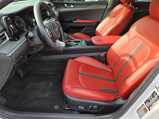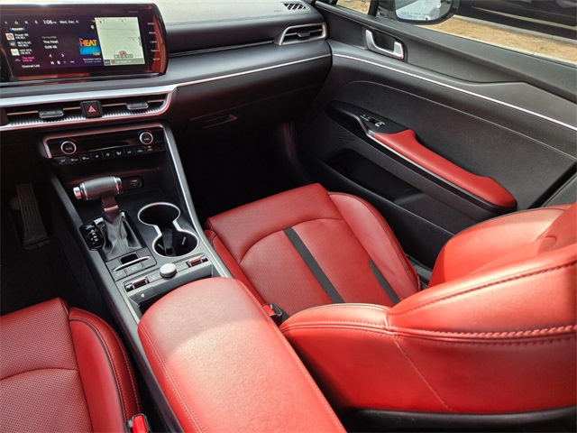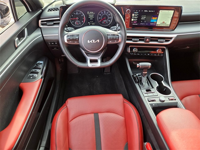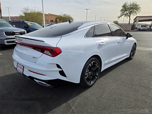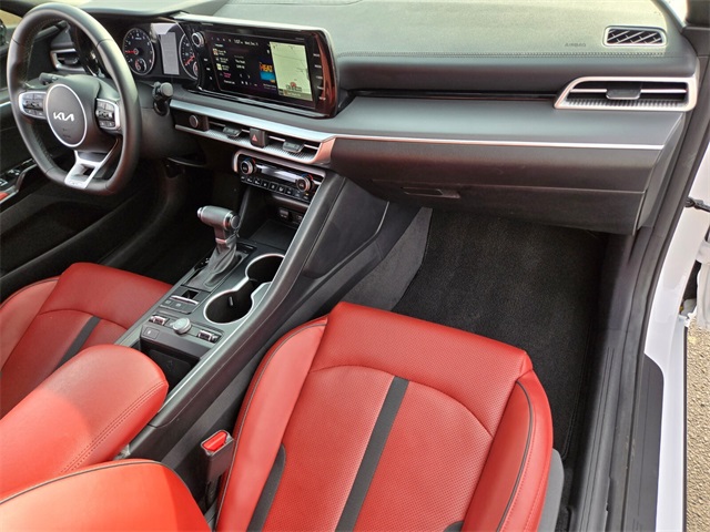 Priced below KBB Fair Purchase Price!Glacial White Pearl 2023 Kia K5 GT-Line AWD 8-Speed Automatic 1.6L I4 DGI Turbocharged DOHC 16V LEV3-ULEV70 180hpIf you don't drive here, you can't save here!Price may not include recon fee. GT-Line Panoramic Sunroof Package (LED Interior Lighting), GT-Line Premium Package (Smart Cruise Control w/Stop & Go), GT-Line Red Interior Package, 4-Wheel Disc Brakes, 6 Speakers, ABS brakes, Air Conditioning, Alloy wheels, AM/FM radio: SiriusXM, Apple CarPlay & Android Auto, Auto High-beam Headlights, Automatic temperature control, Brake assist, Bumpers: body-color, Carpeted Floor Mats, Cloth/SynTex Seat Trim, Delay-off headlights, Driver door bin, Driver vanity mirror, Dual front impact airbags, Dual front side impact airbags, Electronic Stability Control, Four wheel independent suspension, Front anti-roll bar, Front Bucket Seats, Front Center Armrest, Front dual zone A/C, Front fog lights, Front reading lights, Fully automatic headlights, Heated door mirrors, Illuminated entry, Knee airbag, Low tire pressure warning, Navigation System, Occupant sensing airbag, Outside temperature display, Overhead airbag, Overhead console, Panic alarm, Passenger door bin, Passenger vanity mirror, Power door mirrors, Power driver seat, Power steering, Power windows, Radio data system, Radio: AM/FM/MP3 Audio System, Rear anti-roll bar, Rear seat center armrest, Rear side impact airbag, Rear window defroster, Remote keyless entry, Security system, Speed control, Speed-sensing steering, Split folding rear seat, Spoiler, Sport steering wheel, Steering wheel mounted audio controls, Tachometer, Telescoping steering wheel, Tilt steering wheel, Traction control, Trip computer, Turn signal indicator mirrors, Variably intermittent wipers, and Wheels: 18" Gloss Black Machined Finish Alloy.