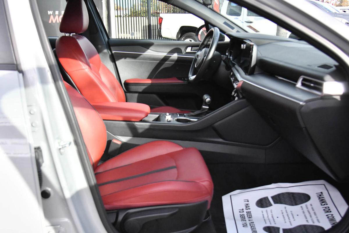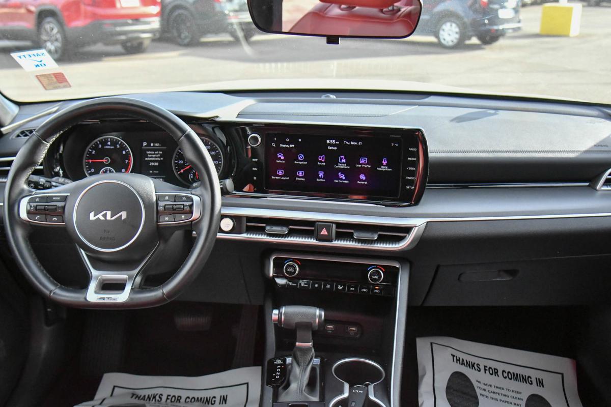 Scores 37 Highway MPG and 27 City MPG! This Kia K5 delivers a Intercooled Turbo Regular Unleaded I-4 1.6 L/98 engine powering this Automatic transmission. WOLF GRAY, GT-LINE RED INTERIOR PACKAGE, GT-LINE PREMIUM PACKAGE -inc: Smart Cruise Control w/Stop & Go, LED Projection Headlamps, Highway Driving Assist, Forward Collision Avoidance-Assist, cyclist and junction turning.*This Kia K5 Comes Equipped with These Options *BLACK, CLOTH/SYNTEX SEAT TRIM -inc: GT-Line logo, Window Grid Antenna, Wheels: 18 Gloss Black Machined Finish Alloy, Variable Intermittent Wipers, Urethane Gear Shifter Material, Turn-By-Turn Navigation Directions, Trunk Rear Cargo Access, Trip Computer, Transmission: 8-Speed Automatic -inc: drive mode select system, Transmission w/Sequential Shift Control.