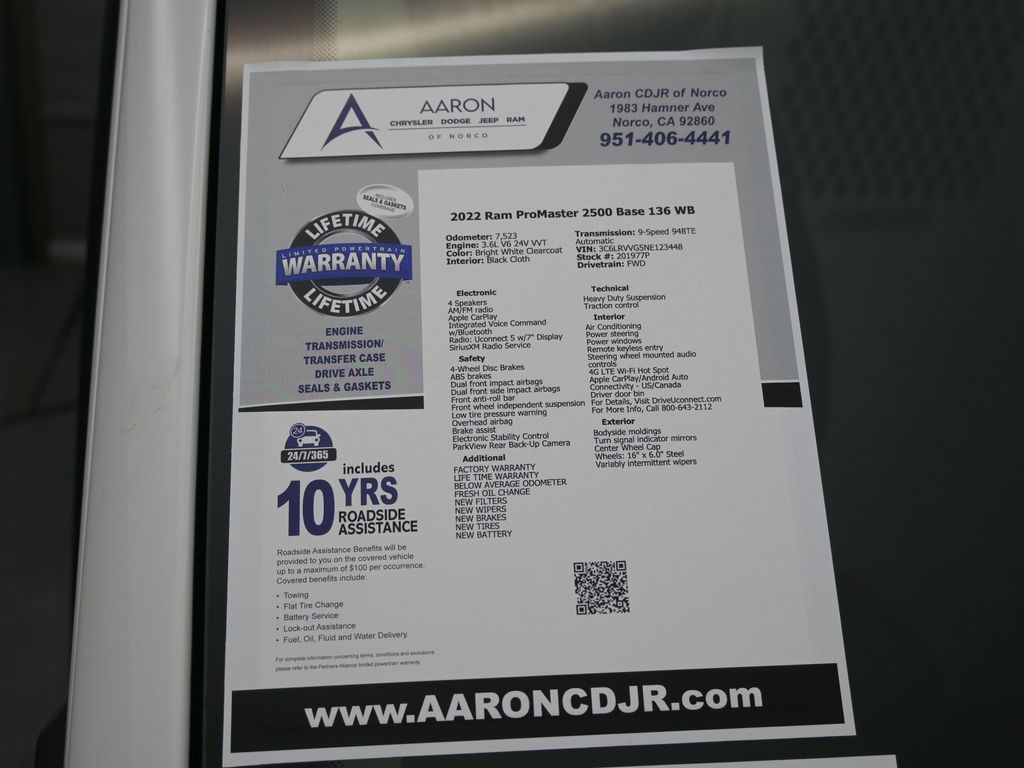 Priced below KBB Fair Purchase Price!FACTORY WARRANTY, BELOW AVERAGE ODOMETER, FRESH OIL CHANGE, NEW FILTERS, NEW WIPERS, 3D Cargo Van, 3.6L V6 24V VVT, FWD, Apple CarPlay, Apple CarPlay/Android Auto, Center Wheel Cap, Front anti-roll bar, Low tire pressure warning, Radio: Uconnect 5 w/7" Display, Wheels: 16" x 6.0" Steel.For help with any Vehicle needs please call us directly at 951-621-1288.Clean CARFAX.CARFAX One-Owner.