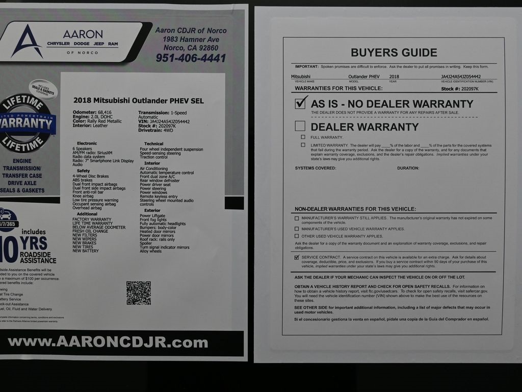 Priced below KBB Fair Purchase Price!LIFE TIME WARRANTY, FRESH OIL CHANGE, NEW FILTERS, NEW WIPERS, Outlander PHEV SEL, 4D Sport Utility, 2.0L DOHC, 1-Speed Automatic, 4WD, Alloy wheels, Compass, Exterior Parking Camera Rear, Front anti-roll bar, Front dual zone A/C, Front fog lights, Heated Front Bucket Seats, Knee airbag, Low tire pressure warning, Power Liftgate, Radio: 7" Smartphone Link Display Audio.For help with any Vehicle needs please call us directly at 951-621-1288.Clean CARFAX.