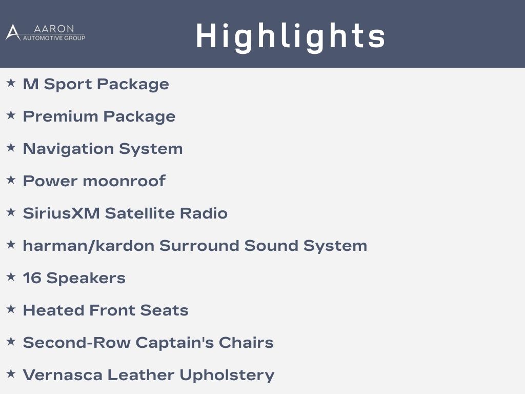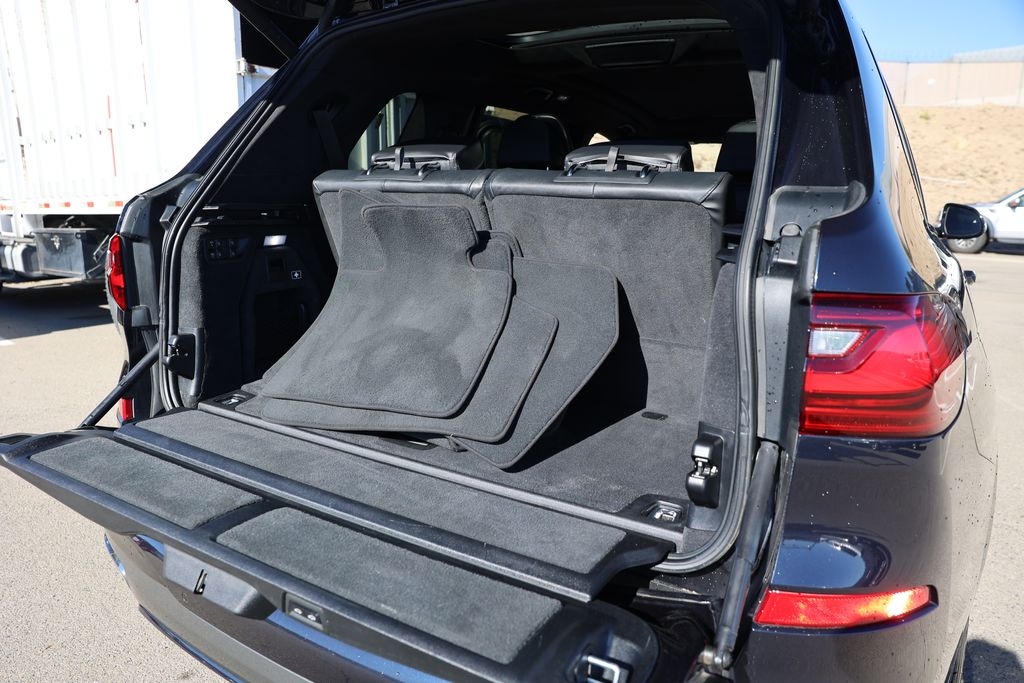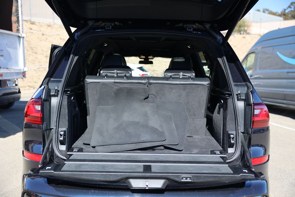 Carbon Black Metallic 2019 BMW X7 xDrive50i AWD 8-Speed Automatic 4.4L V8 DOHC 32V 16 Speakers, 3rd row seats: split-bench, Aerodynamic Kit, Air Conditioning, Anthracite Alcantara Headliner, Apple CarPlay, Apple CarPlay Compatibility, Auto-leveling suspension, Brake assist, Electronic Stability Control, Front dual zone A/C, Front fog lights, Fully automatic headlights, Gesture Control, harman/kardon Surround Sound System, Head restraints memory, Head-Up Display, Heads-Up Display, Heated & Cooled Cup Holders, Heated Front Seats, High-Gloss Shadowline Roof Rails, M Sport Exhaust System, M Sport Package, M Steering Wheel, Memory seat, Navigation System, Power moonroof, Premium Package, Rear air conditioning, Rear dual zone A/C, Rear Electric Side Window Shades, Remote Engine Start, Remote keyless entry, Second-Row Captain's Chairs, Shadowline Exterior Trim, SiriusXM Satellite Radio, Soft-Close Automatic Doors, Vernasca Leather Upholstery, Wheels: 22" x 9.5" Fr & 22" x 10.5" Rr V-Spoke, Without Lines Designation Outside.Odometer is 26360 miles below market average!Awards: * 2019 KBB.com 10 Best SUVs Worth Waiting For