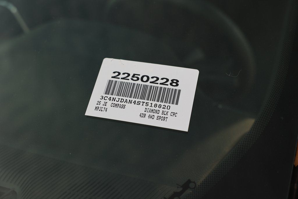 2025 Jeep Compass Sport Diamond Black Crystal PearlcoatFactory MSRP: $28,435 Dealer Discount of $3,500 off MSRPPriced below KBB Fair Purchase Price!4WD, MOPAR Carpet Cargo Mat, MOPAR Interior Premium Package, MOPAR Pedal Kit, MOPAR Premium Carpet Floor Mats, Quick Order Package 29A. 24/32 City/Highway MPG 4WD 8-Speed Automatic 2.0L I4 DOHC24/32 City/Highway MPG