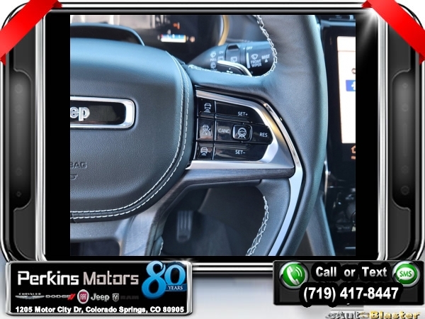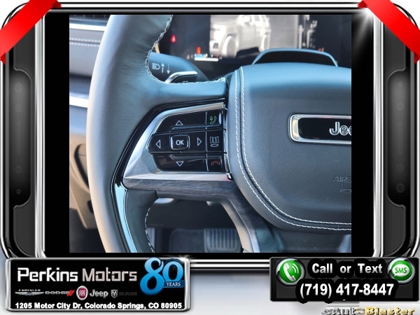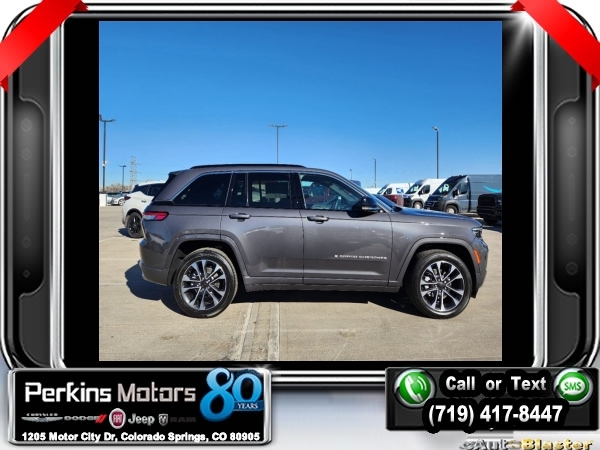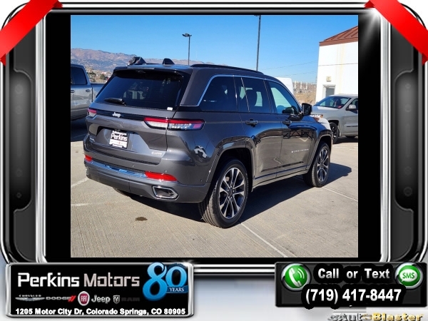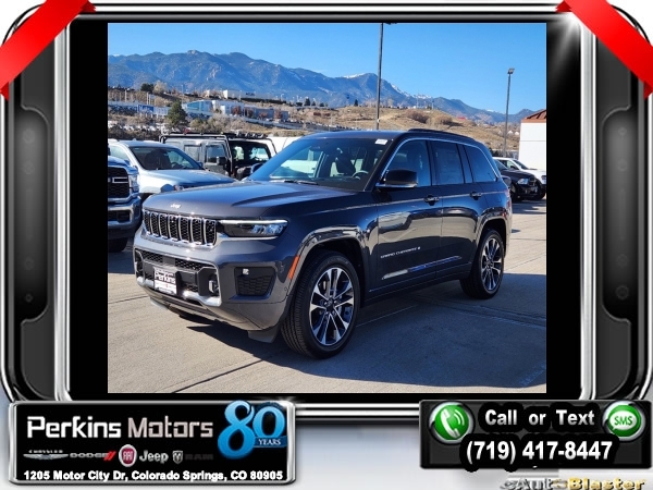 Factory MSRP: $69,025 $5,500 off MSRP! Baltic Gray Metallic Clearcoat 2025 Jeep Grand Cherokee Overland 4WD 8-Speed Automatic 3.6L V6 24V VVT<br>4WD.<br>Check us out at www.perkinsmotors.com to see our specials! Since opening our doors in 1944, we’ve been proud to serve Colorado Springs, CO, and the surrounding areas of Pueblo, Castle Rock and Denver, CO. Throughout this time of being family owned for 80 years, we’ve maintained a firm commitment to our customers: to offer a wide selection of New Chrysler, Dodge, Fiat, Jeep, and Ram vehicles and quality pre-owned vehicles, and provide a quick, no-hassle car-buying process that ensures everyone drives off the lot satisfied with their purchase.<br><br>ADV Protech Group III (Active Driving Assist System, Heads-Up Display, Integrated Off-Road Camera, Intersection Collision Assist System, Leather Wrapped Steering Wheel, Map-In-Cluster Display, Night Vision w/Pedestrian-Animal Detection, Rear Back-Up Camera Washer, Surround View Camera System, and Windshield Wiper De-Icer), Hands-Free Active Driving Assist System (Auxiliary Battery), Luxury Tech Group IV (12-Way Power Adjust Driver Seat, 12-Way Power Adjust Front Passenger Seat, 2nd-Row Manual Window Shades, Nappa Leather Seats w/AAM, Passenger Seat Memory, Power Driver Seatback Massage, Power Front Passenger Seatback Massage, Rearview Autodim Digital Display Mirror, and Wireless Charging Pad), Quick Order Package 23N, Trailer Tow Package (7 & 4-Pin Wiring Harness and Class IV Receiver Hitch), 4WD, 10 Speakers, 4-Wheel Disc Brakes, ABS brakes, Adaptive suspension, Air Conditioning, Alloy wheels, AM/FM radio: SiriusXM with 360L, Anti-whiplash front head restraints, Audio memory, Auto High-beam Headlights, Auto-dimming door mirrors, Auto-dimming Rear-View mirror, Auto-leveling suspension, Automatic temperature control, Brake assist, Bumpers: body-color, Compass, Cruise Control, Delay-off headlights, Driver door bin, Driver vanity mirror, Dual front impact airbags, Dual front side impact airbags, Electronic Stability Control, Emergency communication system, Four wheel independent suspension, Front anti-roll bar, Front Bucket Seats, Front Center Armrest w/Storage, Front dual zone A/C, Front fog lights, Front License Plate Bracket, Front reading lights, Fully automatic headlights, Garage door transmitter, Heated door mirrors, Heated front seats, Heated rear seats, Heated steering wheel, Illuminated entry, Knee airbag, Low tire pressure warning, Memory seat, Model Year Tracking, Nappa Leather Seats, Navigation System, Normal Duty Suspension, Occupant sensing airbag, Outside temperature display, Overhead airbag, Overhead console, Panic alarm, Passenger door bin, Passenger vanity mirror, Power door mirrors, Power driver seat, Power Liftgate, Power moonroof, Power passenger seat, Power steering, Power windows, Radio data system, Radio: Uconnect 5 Nav w/10.1 Display, Rain sensing wipers, Rear anti-roll bar, Rear reading lights, Rear seat center armrest, Rear window defroster, Rear window wiper, Remote keyless entry, Security system, Speed-Sensitive Wipers, Split folding rear seat, Spoiler, Steering wheel memory, Steering wheel mounted audio controls, Tachometer, Telescoping steering wheel, Tilt steering wheel, Traction control, Trip computer, Turn signal indicator mirrors, Variably intermittent wipers, Ventilated front seats, Voltmeter, and Wheels: 20 x 8.5 Machined Face Aluminum.<br><br>19/26 City/Highway MPG Sale price includes all manufacture's incentives and dealer discounts. Sale price not available on lease or compatible with special APR. $1000 - 2025 National Retail Consumer Cash. Exp. 01/02/2025 $1500 - 2025 National Holiday Bonus Cash. Exp. 01/02/2025