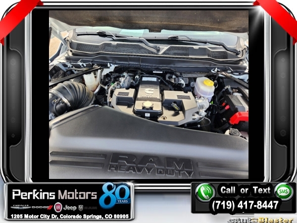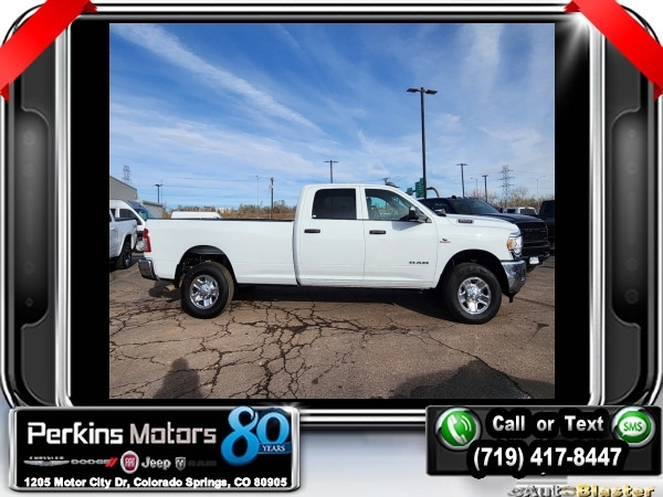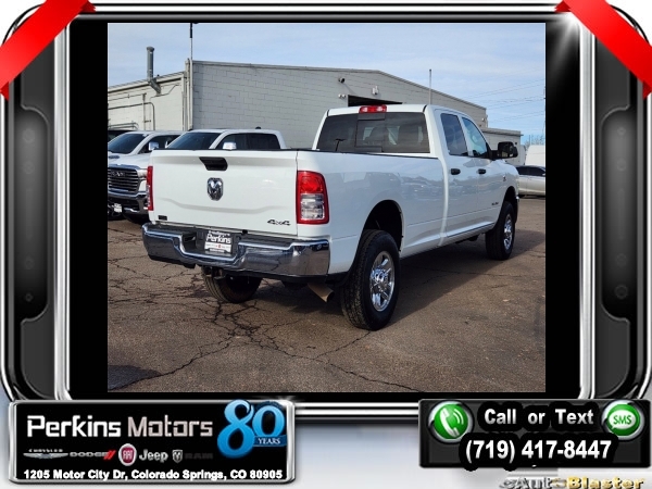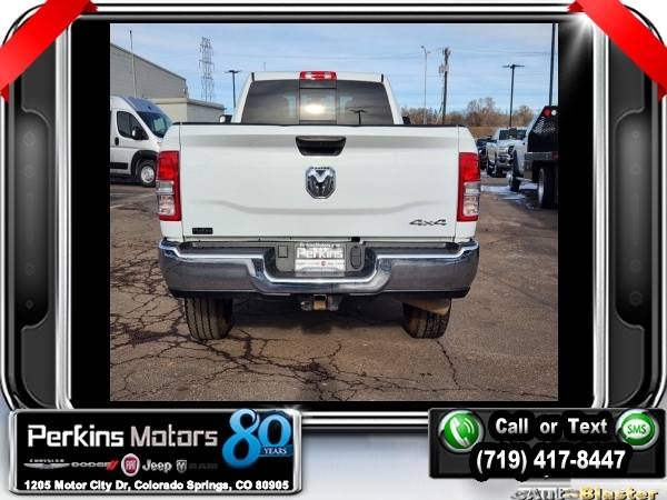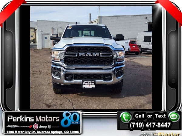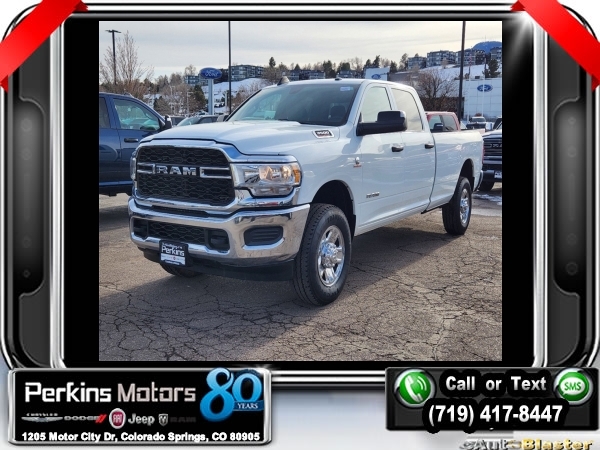 Bright White Clearcoat 4WD Cummins 6.7L I6 Turbodiesel 6-Speed Automatic<br><br>2 Way Rear Headrest Seat, 3.73 Axle Ratio, 4 Way Front Headrests, 40/20/40 Split Bench Seat, 4G LTE Wi-Fi Hot Spot, 8.4 Touchscreen Display, All R1 Low Radios, All Radio Equipped Vehicles, Apple CarPlay, Bluetooth Handsfree Phone & Audio, Bright Front Bumper, Bright Rear Bumper, Bright Wheel Skins, Carpet Floor Covering, Center Hub, Chrome Appearance Group, Chrome Grille Surround, Cloth 40/20/40 Bench Seat, Cluster 3.5 TFT Color Display, Connectivity - US/Canada, For Details Visit DriveUconnect.com, Front Armrest w/Cupholders, Global Telematics Box Module (TBM), Google Android Auto, GPS Antenna Input, Integrated Center Stack Radio, Integrated Voice Command w/Bluetooth, Manual Adjust 4-Way Driver Seat, Manual Adjust 4-Way Front Passenger Seat, Matte Black Mesh w/Chrome Grille, Quick Order Package 2HA Tradesman, Radio: Uconnect 5 w/8.4 Display, Rear Folding Seat, Rear Power Sliding Window, Rear Window Defroster, Selectable Tire Fill Alert, SiriusXM Satellite Radio, Storage Tray, Tradesman Level 2 Equipment Group.<br><br><br>CARFAX One-Owner. Clean CARFAX.<br><br>Check us out at www.perkinsmotors.com to see our specials! Since opening our doors in 1944, we’ve been proud to serve Colorado Springs, CO, and the surrounding areas of Pueblo, Castle Rock and Denver, CO. Throughout this time of being family owned for 80 years, we’ve maintained a firm commitment to our customers: to offer a wide selection of New Chrysler, Dodge, Fiat, Jeep, and Ram vehicles and quality pre-owned vehicles, and provide a quick, no-hassle car-buying process that ensures everyone drives off the lot satisfied with their purchase.<br><br><br>Chrome Appearance Group (Bright Front Bumper, Bright Rear Bumper, Bright Wheel Skins, Center Hub, Chrome Grille Surround, and Matte Black Mesh w/Chrome Grille), Quick Order Package 2HA Tradesman, Tradesman Level 2 Equipment Group (2 Way Rear Headrest Seat, 4 Way Front Headrests, 40/20/40 Split Bench Seat, Carpet Floor Covering, Cloth 40/20/40 Bench Seat, Front Armrest w/Cupholders, Manual Adjust 4-Way Driver Seat, Manual Adjust 4-Way Front Passenger Seat, Rear Folding Seat, Rear Power Sliding Window, Rear Window Defroster, and Storage Tray), 3.73 Axle Ratio, 4G LTE Wi-Fi Hot Spot, 8.4 Touchscreen Display, All R1 Low Radios, All Radio Equipped Vehicles, Apple CarPlay, Bluetooth Handsfree Phone & Audio, Cluster 3.5 TFT Color Display, Connectivity - US/Canada, For Details Visit DriveUconnect.com, Global Telematics Box Module (TBM), Google Android Auto, GPS Antenna Input, Integrated Center Stack Radio, Integrated Voice Command w/Bluetooth, Radio: Uconnect 5 w/8.4 Display, Selectable Tire Fill Alert, SiriusXM Satellite Radio, 4-Wheel Disc Brakes, 50 Gallon Fuel Tank, 6 Speakers, ABS brakes, Active Noise Control System, Air Conditioning, AM/FM radio, Black Exterior Mirrors, Brake assist, Cluster 7.0 TFT Color Display, Compass, Cruise Control, Delay-off headlights, Driver door bin, Dual front impact airbags, Dual front side impact airbags, Electronic Stability Control, Electronically Controlled Throttle, Emergency communication system: SiriusXM Guardian, Front anti-roll bar, Front Center Armrest w/Storage, Front License Plate Bracket, Front reading lights, Fully automatic headlights, HD Vinyl 40/20/40 Split Bench Seat, Heated door mirrors, Illuminated entry, Low tire pressure warning, Manufacturer's Statement of Origin, MOPAR Front & Rear Rubber Floor Mats, Occupant sensing airbag, Outside temperature display, Overhead airbag, Overhead console, ParkView Rear Back-Up Camera, Passenger door bin, Passenger vanity mirror, Power door mirrors, Power steering, Power windows, Radio data system, Radio: Uconnect 3 w/5 Display, Rear step bumper, Tachometer, Tilt steering wheel, Tip Start, Traction control, Trailer Brake Control, Trailer Light Check, Turn signal indicator mirrors, Variably intermittent wipers, Voltmeter, Wheels: 18 x 8.0 Steel, and