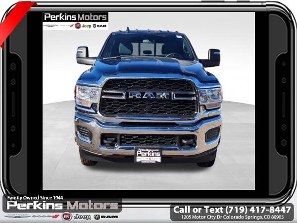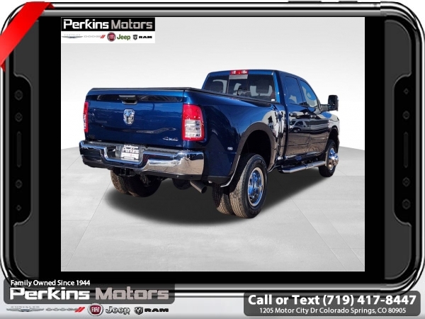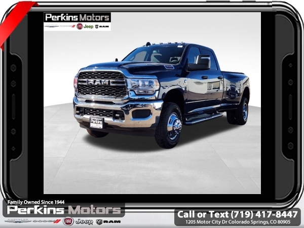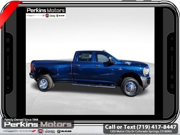 Factory MSRP: $75,215 $13,515 off MSRP! Patriot Blue Pearlcoat 2024 Ram 3500 Tradesman 4WD Aisin 6-Speed Automatic 6.7L I6<br><br>Check us out at www.perkinsmotors.com to see our specials! Since opening our doors in 1944, we’ve been proud to serve Colorado Springs, CO, and the surrounding areas of Pueblo, Castle Rock and Denver, CO. Throughout this time of being family owned for 80 years, we’ve maintained a firm commitment to our customers: to offer a wide selection of New Chrysler, Dodge, Fiat, Jeep, and Ram vehicles and quality pre-owned vehicles, and provide a quick, no-hassle car-buying process that ensures everyone drives off the lot satisfied with their purchase.<br><br>Bed Utility Group (LED Bed Lighting and MOPAR Spray In Bedliner), Chrome Appearance Group (Bright Front Bumper, Bright Rear Bumper, Bright Wheel Skins, Center Hub, Chrome Headlamp Bezels, and Matte Black Mesh w/Chrome Grille), Cold Weather Group (Engine Block Heater and MOPAR Winter Front Grille Cover), Heavy Duty Snow Plow Prep Group (220 Amp Alternator), Protection Group, Quick Order Package 21A Tradesman, Tradesman Level 2 Equipment Group (2 Way Rear Headrest Seat, 4 Way Front Headrests, 40/20/40 Split Bench Seat, Black Exterior Mirrors, Carpet Floor Covering, Cloth 40/20/40 Bench Seat, Exterior Mirrors w/Heating Element, Front Armrest w/Cupholders, Manual Adjust 4-Way Driver Seat, Manual Adjust 4-Way Front Passenger Seat, Manual Folding Exterior Mirrors, Manual Telescoping Mirrors, Mirror Running Lights, Power Adjust Mirrors, Power Heat Fold Telescopic Mirrors, Power-Adjustable Convex Aux Mirrors, Rear Folding Seat, Rear Window Defroster, Remote USB Port - Charge Only, and Storage Tray), 3.73 Axle Ratio, 4-Wheel Disc Brakes, 4.10 Axle Ratio, 5th Wheel/Gooseneck Towing Prep Group, 6 Speakers, ABS brakes, Active Noise Control System, Air Conditioning, AM/FM radio, Box & Rear Fender Clearance Lamps, Brake assist, Chrome Flat Cab-Length Side Steps, Clearance Lamps, Compass, Cruise Control, Delay-off headlights, Driver door bin, Dual front impact airbags, Dual front side impact airbags, Dual Rear Wheels, Electronic Stability Control, Electronically Controlled Throttle, Emergency communication system: SiriusXM Guardian, For Details Visit DriveUconnect.com, Front anti-roll bar, Front Center Armrest w/Storage, Front License Plate Bracket, Front reading lights, Fully automatic headlights, Global Telematics Box Module (TBM), GPS Antenna Input, HD Vinyl 40/20/40 Split Bench Seat, I/P Mounted Auxiliary Switches, Illuminated entry, Integrated Voice Command w/Bluetooth, Low tire pressure warning, MOPAR Front & Rear Rubber Floor Mats, Occupant sensing airbag, Outside temperature display, Overhead airbag, Overhead console, Panic alarm, ParkSense Rear Park Assist System, ParkView Rear Back-Up Camera, Passenger door bin, Passenger vanity mirror, Power steering, Power windows, Radio data system, Radio: Uconnect 3 w/5 Display, Rear step bumper, Rear Wheelhouse Liners, Remote keyless entry, Tachometer, Tilt steering wheel, Tip Start, Traction control, Trailer Brake Control, Trailer Light Check, Tri-Fold Tonneau Cover, Variably intermittent wipers, Voltmeter, Wheels: 17 x 6.0 Steel Chrome Clad, and Wheels: 18 x 8.0 SteeL. Sale price includes all manufacture's incentives and dealer discounts. Sale price not available on lease or compatible with special APR. 10% Msrp - 2024 West BC Standalone 10% Below MSRP. Exp. 03/31/2025 Price includes $1,506 in dealer added accessories.