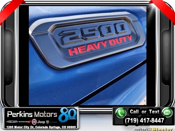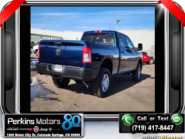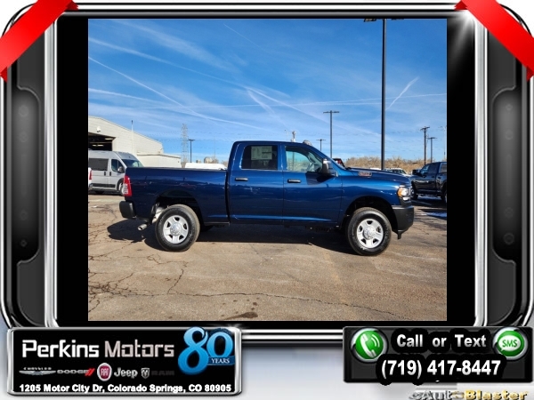 Factory MSRP: $57,860 $12,000 off MSRP! Priced below KBB Fair Purchase Price! Patriot Blue Pearlcoat 2024 Ram 2500 Tradesman 4WD 8-Speed Automatic 6.4L V8<br><br>Check us out at www.perkinsmotors.com to see our specials! Since opening our doors in 1944, we’ve been proud to serve Colorado Springs, CO, and the surrounding areas of Pueblo, Castle Rock and Denver, CO. Throughout this time of being family owned for 80 years, we’ve maintained a firm commitment to our customers: to offer a wide selection of New Chrysler, Dodge, Fiat, Jeep, and Ram vehicles and quality pre-owned vehicles, and provide a quick, no-hassle car-buying process that ensures everyone drives off the lot satisfied with their purchase.<br><br>Bed Utility Group (LED Bed Lighting, MOPAR Deployable Bed Step, and MOPAR Spray In Bedliner), Protection Group (Tow Hooks), Quick Order Package 2GA Tradesman, Tradesman Level 1 Equipment Group (Manual Folding Exterior Mirrors and Manual Telescoping Mirrors), 17 x 7.5 Steel Styled Wheels, 2 Way Rear Headrest Seat, 220 Amp Alternator, 3.73 Axle Ratio, 4 Way Front Headrests, 4-Wheel Disc Brakes, 40/20/40 Split Bench Seat, 6 Speakers, ABS brakes, Active Noise Control System, Air Conditioning, AM/FM radio, Anti-Spin Differential Rear Axle, Auto Power-Folding Mirrors, Black Exterior Mirrors, Brake assist, Carpet Floor Covering, Center Hub, Clearance Lamps, Compass, Cruise Control, Dash Pass Thru Wire Circuits, Delay-off headlights, Driver door bin, Dual Alternators Rated At 380 Amps, Dual front impact airbags, Dual front side impact airbags, Electric Shift-On-The-Fly Transfer Case, Electronic Stability Control, Electronically Controlled Throttle, Emergency communication system: SiriusXM Guardian, Engine Block Heater, Exterior Mirrors Courtesy Lamps, Exterior Mirrors w/Heating Element, Exterior Mirrors w/Supplemental Signals, Forward & Reverse Utility Lights, Front & Rear Floor Mats, Front anti-roll bar, Front Center Armrest w/Storage, Front License Plate Bracket, Front reading lights, Fully automatic headlights, Global Telematics Box Module (TBM), GPS Antenna Input, Heavy Duty Vinyl 40/20/40 Split Bench Seat, I/P Mounted Auxiliary Switches, Illuminated entry, Integrated Voice Command w/Bluetooth, Low tire pressure warning, Manual Adjust 4-Way Driver Seat, Mirror Running Lights, Occupant sensing airbag, Outside temperature display, Overhead airbag, Overhead console, ParkView Rear Back-Up Camera, Passenger door bin, Passenger vanity mirror, Power Adjust Mirrors, Power Adjustable Convex Aux Mirrors, Power Heated Fold Telescope Mirrors, Power steering, Power Telescoping Mirrors, Power windows, Radio data system, Radio: Uconnect 3 w/5 Display, Rear anti-roll bar, Rear Folding Seat, Rear step bumper, Rear Window Defroster, SiriusXM Radio Service, Storage Tray, Tachometer, Tilt steering wheel, Tip Start, Traction control, Trailer Brake Control, Trailer Light Check, Variably intermittent wipers, Voltmeter, and Wheels: 18 x 8.0 Steel. Sale price includes all manufacture's incentives and dealer discounts. Sale price not available on lease or compatible with special APR. $1000 - 2024 Bonus Cash . Exp. 01/02/2025 $2000 - 2024 West BC Bonus Cash . Exp. 01/02/2025