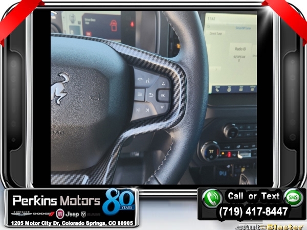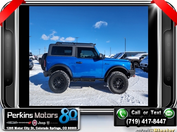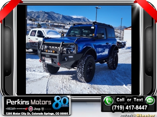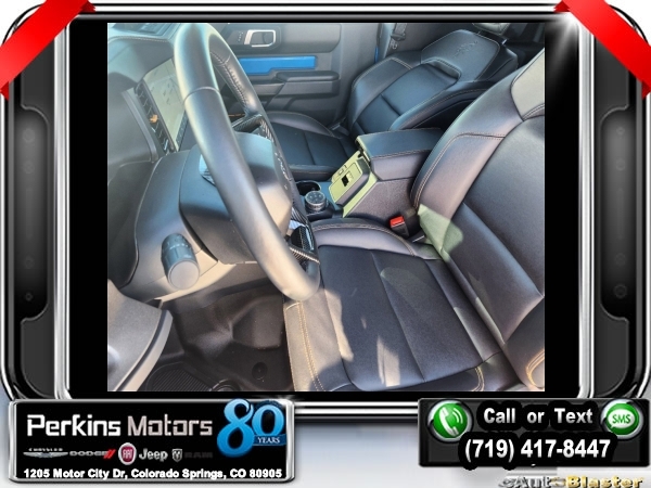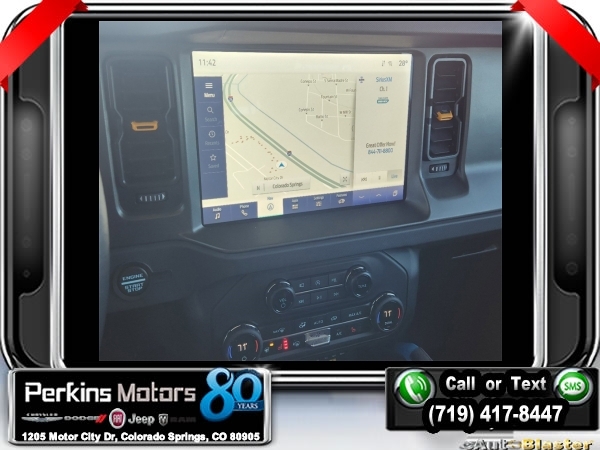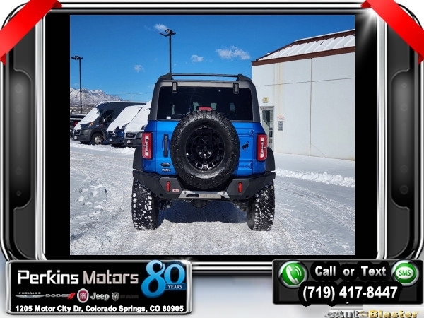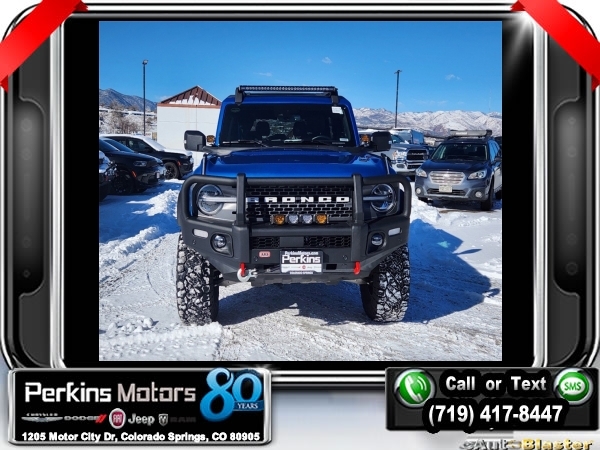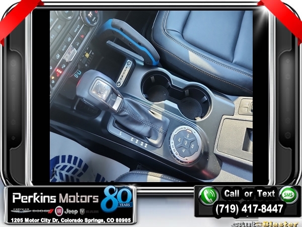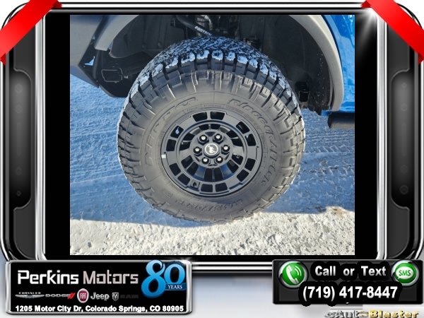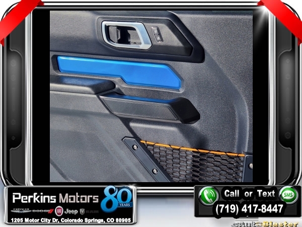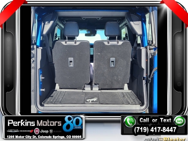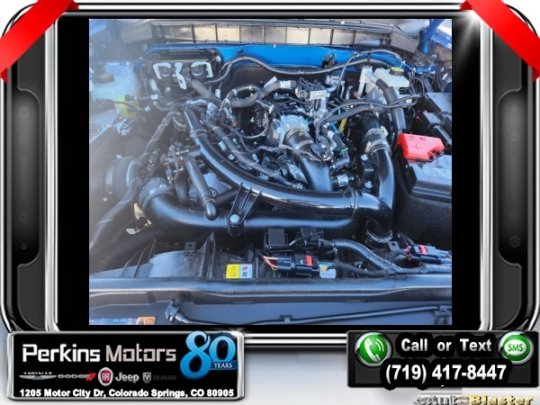 Velocity Blue Metallic 4WD 2.7L EcoBoost V6 10-Speed Automatic<br><br>10 Speakers w/Subwoofer, 2-Door Intelligent Access w/Lock/Unlock, 360-Degree Camera, Adaptive Cruise Control, Additional Sound Deadening, Ambient Footwell Lighting, Auto-Dimming Interior Rear-View Mirror, Brush Guard, Dr & Pass Illuminated Sliding Visor Vanity Mirrors, Dual Smart Charging USB Ports, Dual-Zone Electronic Automatic Temperature Control, Equipment Group 334A High/Lux Package, Evasive Steering Assist, Front Parking Sensors, Front Row Heated Seats, Heated Steering Wheel, Information on Demand Panel, Power Outlet - Back Side of Center Floor Console, Radio: B&O Sound System by Bang & Olufsen, Rear Parking Sensors, Sideview Mirrors, Universal Garage Door Opener, Wireless Charging Pad.<br><br><br>Clean CARFAX.<br><br>Check us out at www.perkinsmotors.com to see our specials! Since opening our doors in 1944, we’ve been proud to serve Colorado Springs, CO, and the surrounding areas of Pueblo, Castle Rock and Denver, CO. Throughout this time of being family owned for 80 years, we’ve maintained a firm commitment to our customers: to offer a wide selection of New Chrysler, Dodge, Fiat, Jeep, and Ram vehicles and quality pre-owned vehicles, and provide a quick, no-hassle car-buying process that ensures everyone drives off the lot satisfied with their purchase.<br><br><br>Equipment Group 334A High/Lux Package (10 Speakers w/Subwoofer, 2-Door Intelligent Access w/Lock/Unlock, 360-Degree Camera, Adaptive Cruise Control, Additional Sound Deadening, Ambient Footwell Lighting, Auto-Dimming Interior Rear-View Mirror, Dr & Pass Illuminated Sliding Visor Vanity Mirrors, Dual Smart Charging USB Ports, Dual-Zone Electronic Automatic Temperature Control, Evasive Steering Assist, Front Parking Sensors, Front Row Heated Seats, Heated Steering Wheel, Information on Demand Panel, Power Outlet - Back Side of Center Floor Console, Radio: B&O Sound System by Bang & Olufsen, Rear Parking Sensors, Sideview Mirrors, Universal Garage Door Opener, and Wireless Charging Pad), Brush Guard, 4-Wheel Disc Brakes, 4.7 Axle Ratio, 7 Speakers, ABS brakes, Air Conditioning, Alloy wheels, AM/FM radio: SiriusXM with 360L, AM/FM Stereo, Auto High-Beam Headlamps, Auto High-beam Headlights, Black Roof Rails w/Crossbars, BLIS Blind Spot Information System, Brake assist, Cargo Area Protector, Compass, Convertible HardTop, Convertible roof lining, Cruise Control, Delay-off headlights, Driver door bin, Driver vanity mirror, Dual front impact airbags, Dual front side impact airbags, Electronic Stability Control, Emergency communication system: 911 Assist, Exterior Parking Camera Rear, Front & Rear Floor Liners w/o Carpet Floor Mats, Front anti-roll bar, Front Bucket Seats, Front Center Armrest, Front License Plate Bracket, Front reading lights, Front Row Top Panels & Door Storage Bags, Front wheel independent suspension, Fully automatic headlights, Glass rear window, Heated door mirrors, Illuminated entry, Integrated roll-over protection, Lane-Keeping System, Leather Shift Knob, Low tire pressure warning, Marine Grade Vinyl Bucket Seats, Occupant sensing airbag, Outside temperature display, Overhead airbag, Overhead console, Panic alarm, Passenger door bin, Passenger vanity mirror, Power door mirrors, Power steering, Power windows, Pre-Collision Assist w/Automatic Emergency Braking, Radio data system, Rear window defroster, Rear window wiper, Rear-View Camera, Remote keyless entry, Removable Hoop Step, Security system, SiriusXM Radio w/360L, Split folding rear seat, Steering wheel mounted audio controls, SYNC 4, Tachometer, Telescoping steering wheel, Tilt steering wheel, Traction control, Trip computer, Variably intermittent wipers, Voltmeter, and Wheels: 17 Machined Carbonized Aluminum.