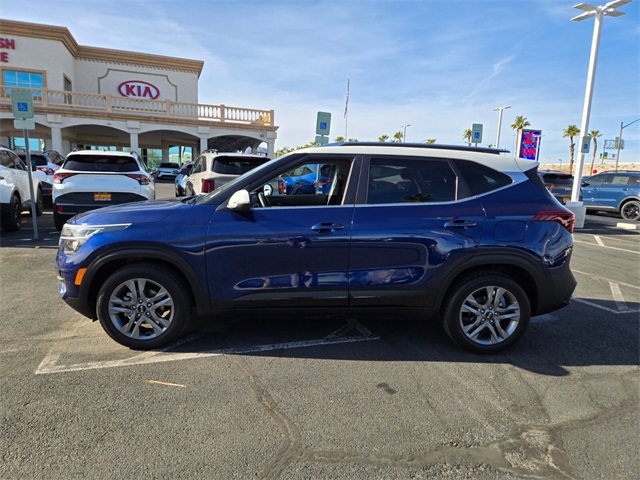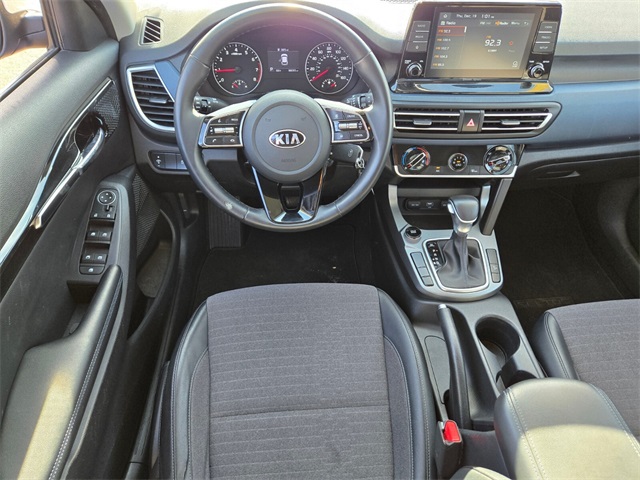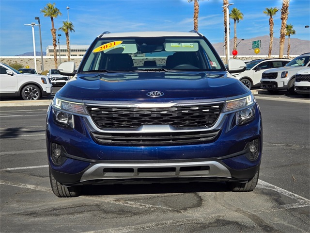 29/34 City/Highway MPGDark Ocean Blue/White Roof 2021 Kia Seltos S FWD IVT 2.0L I4 MPIIf you don't drive here, you can't save here!Price may not include recon fee. Glossy Black Door Garnish Package (Glossy Black Door Garnishes), 4-Wheel Disc Brakes, 6 Speakers, 6.052 Axle Ratio, ABS brakes, Air Conditioning, Alloy wheels, AM/FM radio, Apple CarPlay & Android Auto, Brake assist, Bumpers: body-color, Cargo Net (Floor), Cargo Tray, Carpeted Floor Mats, Combination Sofino & Cloth Seat Trim, Delay-off headlights, Driver door bin, Driver vanity mirror, Dual front impact airbags, Dual front side impact airbags, Electronic Stability Control, Exterior Parking Camera Rear, Front anti-roll bar, Front Bucket Seats, Front Center Armrest, Front fog lights, Front reading lights, Front wheel independent suspension, Fully automatic headlights, Heated door mirrors, Illuminated entry, Leather Shift Knob, Low tire pressure warning, Occupant sensing airbag, Outside temperature display, Overhead airbag, Overhead console, Panic alarm, Passenger door bin, Passenger vanity mirror, Power door mirrors, Power steering, Power windows, Radio: AM/FM/MP3 Display Audio, Rear seat center armrest, Rear window defroster, Rear window wiper, Remote keyless entry, Security system, Speed control, Speed-sensing steering, Split folding rear seat, Spoiler, Steering wheel mounted audio controls, Tachometer, Telescoping steering wheel, Tilt steering wheel, Traction control, Trip computer, Turn signal indicator mirrors, Variably intermittent wipers, and Wheels: 17" Alloy w/Dark Gray Finish.