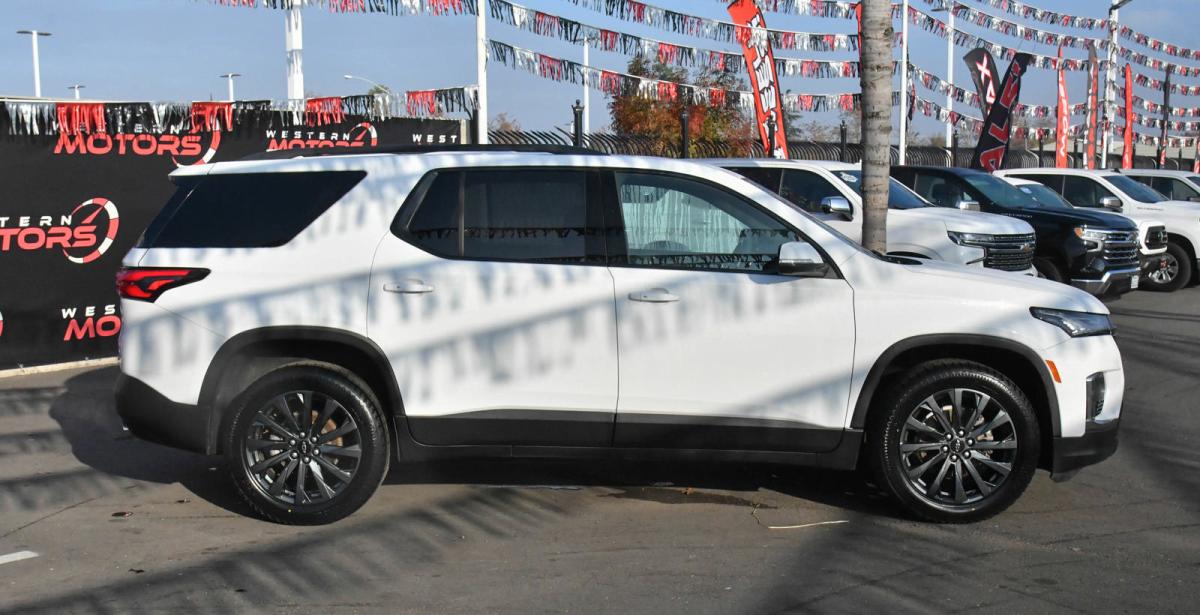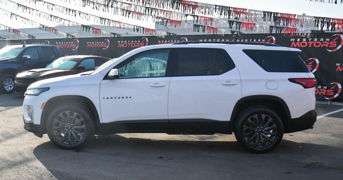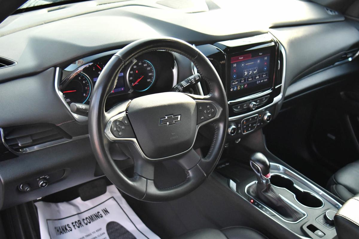 Scores 27 Highway MPG and 18 City MPG! This Chevrolet Traverse delivers a Gas V6 3.6L/217 engine powering this Automatic transmission. TRANSMISSION, 9-SPEED AUTOMATIC (STD), SUMMIT WHITE, SEATS, FRONT BUCKET (STD).*This Chevrolet Traverse Features the Following Options *LICENSE PLATE FRONT MOUNTING PACKAGE (will be forced on orders with ship-to states that require a front license plate) , RS PREFERRED EQUIPMENT GROUP Includes Standard Equipment, NOT EQUIPPED WITH REAR PARK ASSIST, SEE DEALER FOR DETAILS (Vehicles built prior to December 20, 2021 include Rear Park Assist. Certain vehicles built on or after December 20, 2021, will be forced to include (00Y) Not Equipped with Rear Park Assist, which removes Rear Park Assist. See the window label for the features on a specific vehicle.), NOT EQUIPPED WITH HEATED STEERING WHEEL, SEE DEALER FOR DETAILS (Vehicles built prior to November 22, 2021 and after April 17, 2022, include heated steering wheel. Certain vehicles built on or after November 22, 2021 through April 17, 2022, will be forced to include (00G) Not Equipped with Heated Steering Wheel, which removes heated steering wheel. See the window label for the features on a specific vehicle.), NOT EQUIPPED WITH DRIVER AND FRONT PASSENGER HEATED SEATS see dealer for details (Certain vehicles built between November 15, 2021 and February 20, 2022 and after March 13, 2022 will be forced to include (00V) Not Equipped with Heated Driver and Front Passenger Seats, which removes heated driver and front passenger seats. Feature will not function on certain models without later dealer retrofit, see dealer for details.), JET BLACK/SPICE RED, PERFORATED LEATHER-APPOINTED SEAT TRIM, ENGINE, 3.6L V6, SIDI, VVT (310 hp [232.0 kW] @ 6800 rpm, 266 lb-ft of torque [361 N-m] @ 2800 rpm) (STD), AUDIO SYSTEM, CHEVROLET INFOTAINMENT 3 PLUS SYSTEM with connected Navigation, 8 diagonal HD color touchscreen, AM/FM stereo, Bluetooth audio streaming for 2 active devices, Apple CarPlay and Android Auto capable, enhanced voice recognition, in-vehicle apps, cloud connected personalization for select infotainment and vehicle settings. Subscription required for enhanced and connected services after trial period (STD), Wireless Phone Charging, Wireless Apple CarPlay/Wireless Android Auto.