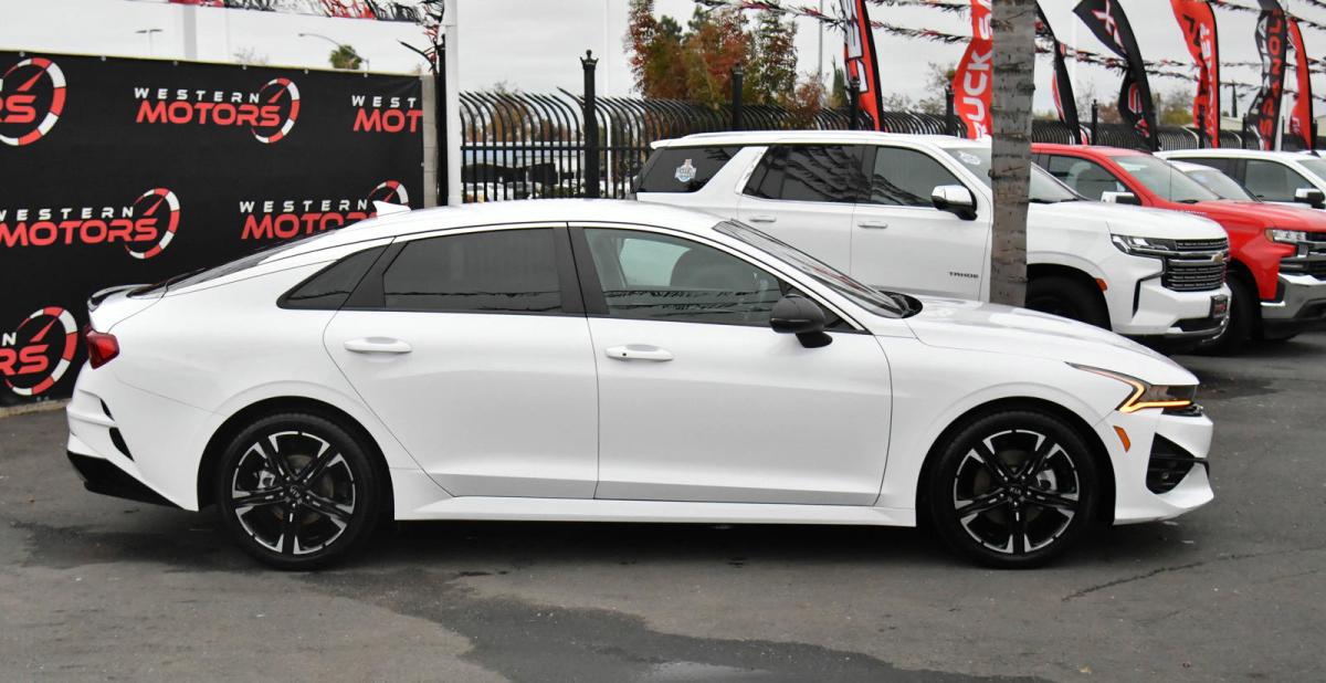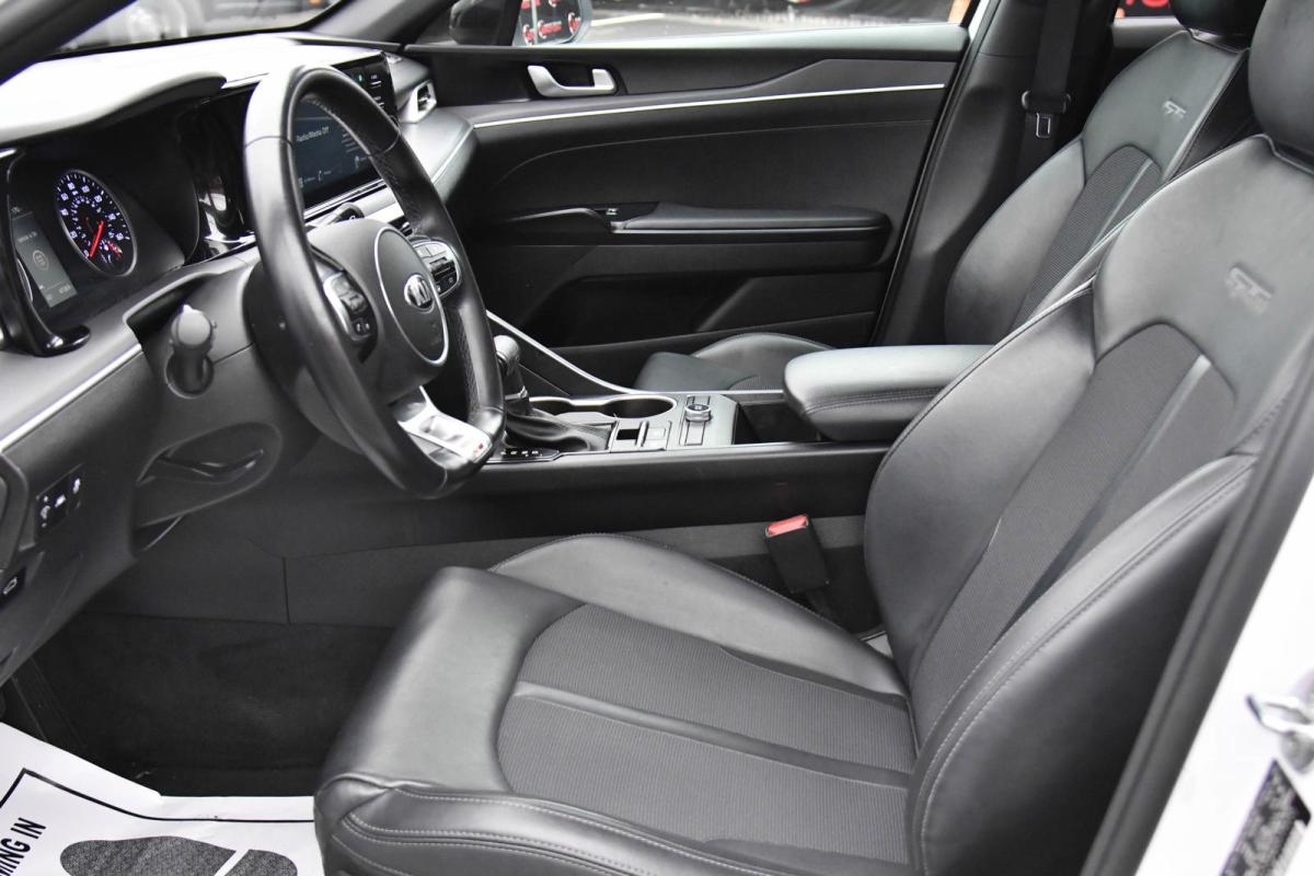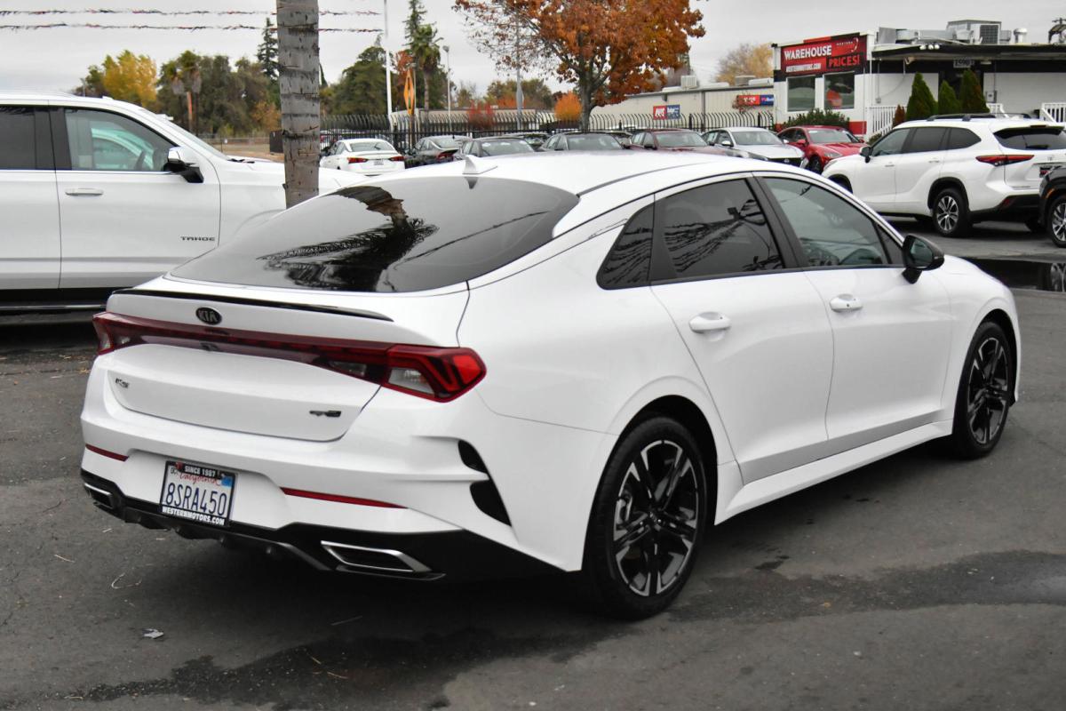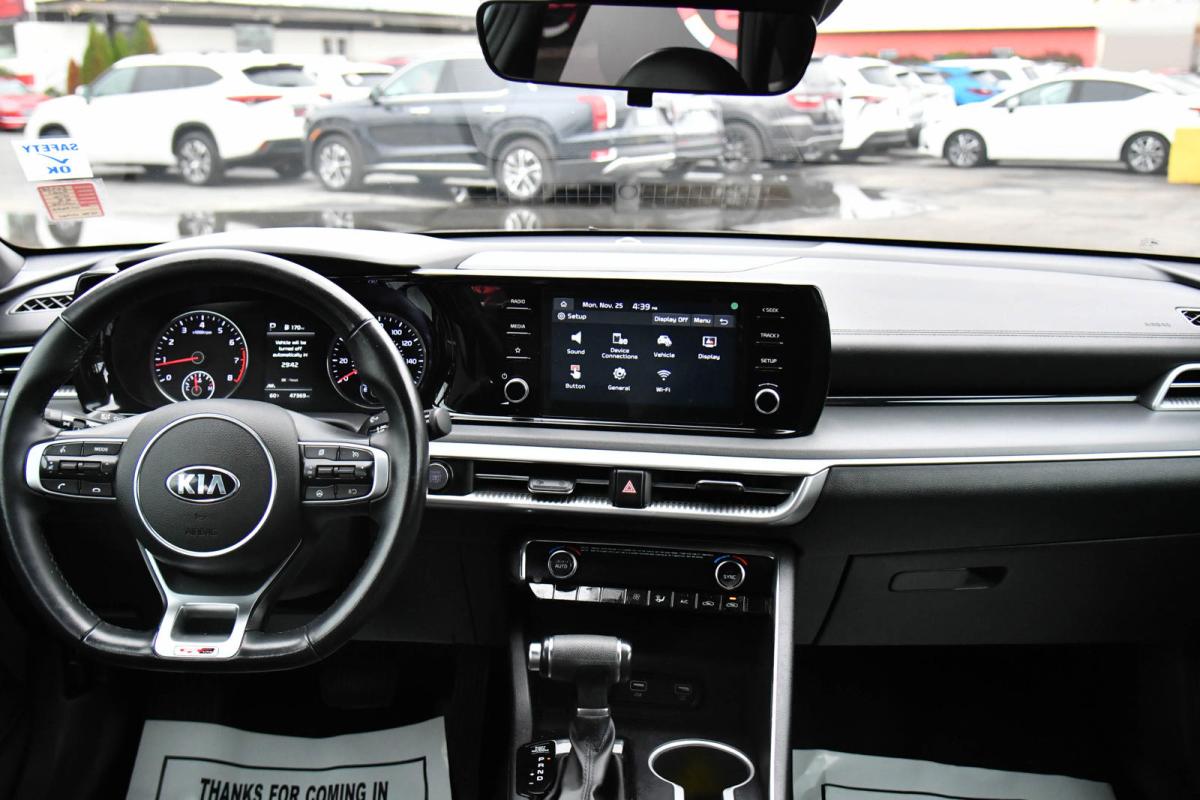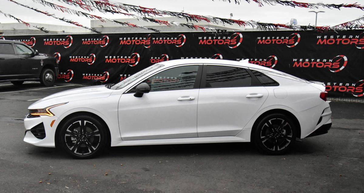 Scores 37 Highway MPG and 27 City MPG! This Kia K5 boasts a Intercooled Turbo Regular Unleaded I-4 1.6 L/98 engine powering this Automatic transmission. GLACIAL WHITE PEARL, CARPETED FLOOR MATS, BLACK, CLOTH/LEATHERETTE SEAT TRIM -inc: GT-Line logo.*This Kia K5 Features the Following Options *Window Grid Antenna, Wheels: 7.5J x 18 Graphite Machined Finish Alloy, Variable Intermittent Wipers, Urethane Gear Shifter Material, Turn-By-Turn Navigation Directions, Trunk Rear Cargo Access, Trip Computer, Transmission: 8-Speed Automatic -inc: drive mode select system, Transmission w/Sportmatic Sequential Shift Control, Tires: P235/45R18 AS.