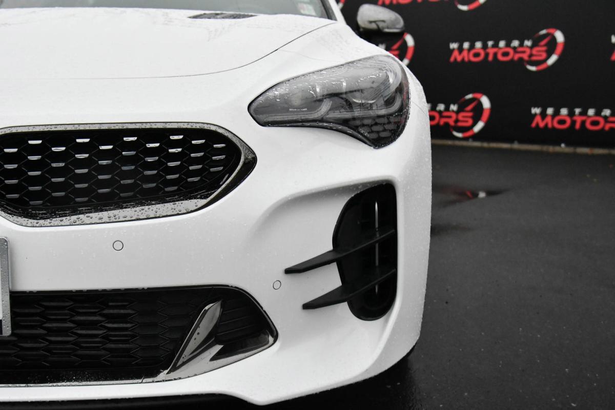 KBB.com 10 Favorite New-for-2018 Cars. Only 23,666 Miles! Boasts 25 Highway MPG and 17 City MPG! This Kia Stinger delivers a Twin Turbo Premium Unleaded V-6 3.3 L/204 engine powering this Automatic transmission. WHEEL LOCKS 19, SNOW WHITE PEARL, REMOTE START (PUSH-BUTTON START).*This Kia Stinger Features the Following Options *MUD GUARDS, DOOR SILL APPLIQUE, CARGO TRAY AND SEATBACK COVER, CARGO NET, BUMPER APPLIQUE, BLACK, NAPPA LEATHER SEAT TRIM, Window Grid Antenna, Wheels: 19 x 8J Front & 19 x 8.5J Rear Alloy, Valet Function, UVO eServices Emergency Sos.