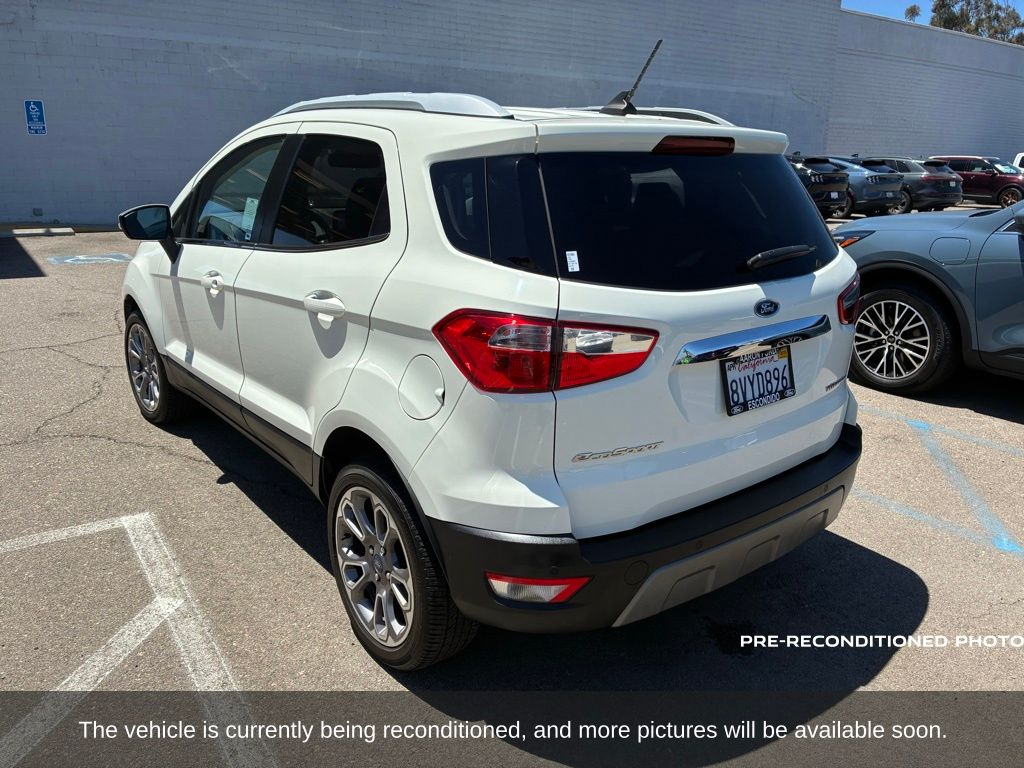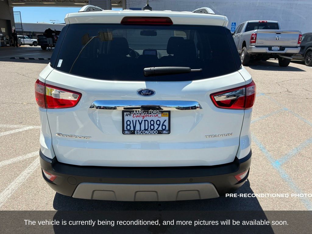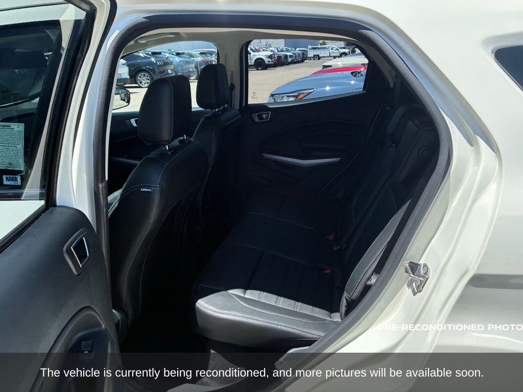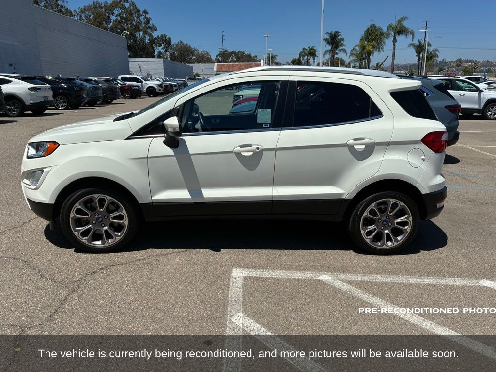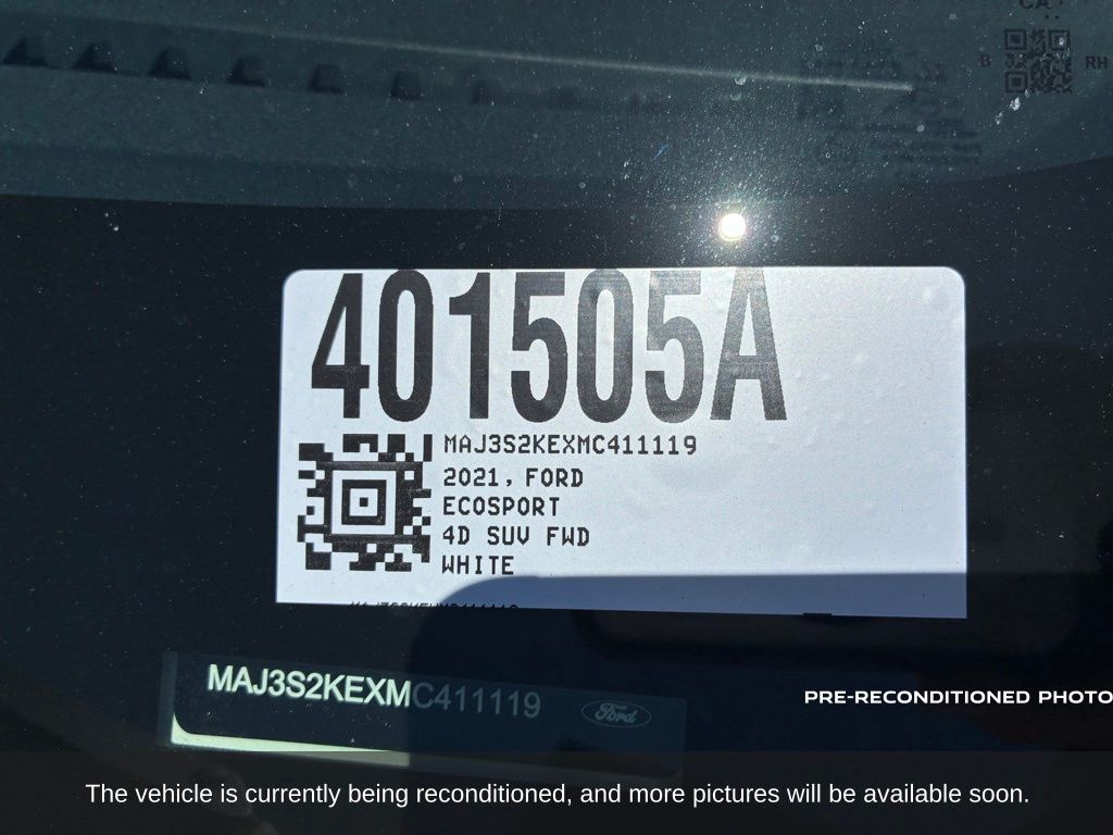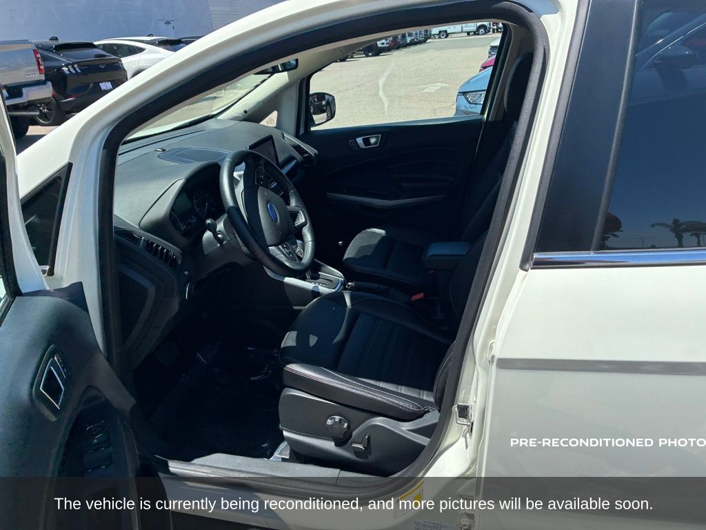 Diamond White 2021 Ford EcoSport Titanium FWD 6-Speed Automatic EcoBoost 1.0L I3 GTDi DOHC Turbocharged VCT 10 Speakers, ActiveX Seating Material Heated Front Bucket Seats, Air Conditioning, Brake assist, Electronic Stability Control, Equipment Group 400A, Exterior Parking Camera Rear, Front Bucket Seats, Front fog lights, Fully automatic headlights, Heated front seats, Navigation System, Power moonroof, Radio: AM/FM/MP3 Stereo, Rear Parking Sensors, SiriusXM Radio, SiriusXM Traffic & Travel Link, Speed control, SYNC 3 Communications & Entertainment System, Wheels: 17" Premium Dark Stainless-Painted.27/29 City/Highway MPG