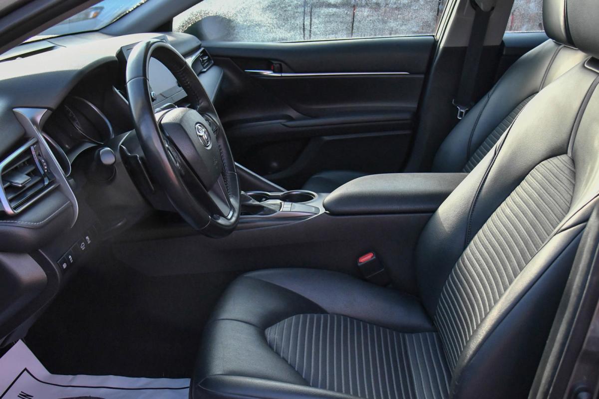 Delivers 39 Highway MPG and 28 City MPG! This Toyota Camry delivers a Regular Unleaded I-4 2.5 L/152 engine powering this Automatic transmission. Variable Intermittent Wipers, Urethane Gear Shifter Material, Trunk Rear Cargo Access.*This Toyota Camry Features the Following Options *Trip Computer, Transmission: 8-Speed Direct Shift ECT-i Automatic -inc: sequential shift mode and paddle shifters, Toyota Safety Sense (TSS) 2.5+, Tires: 235/45R18 AS, Tire Pressure Monitor System (TPMS) Tire Specific Low Tire Pressure Warning, Strut Front Suspension w/Coil Springs, Steel Spare Wheel, Single Stainless Steel Exhaust w/Polished Tailpipe Finisher, Side Impact Beams, Seats w/Leatherette Back Material.