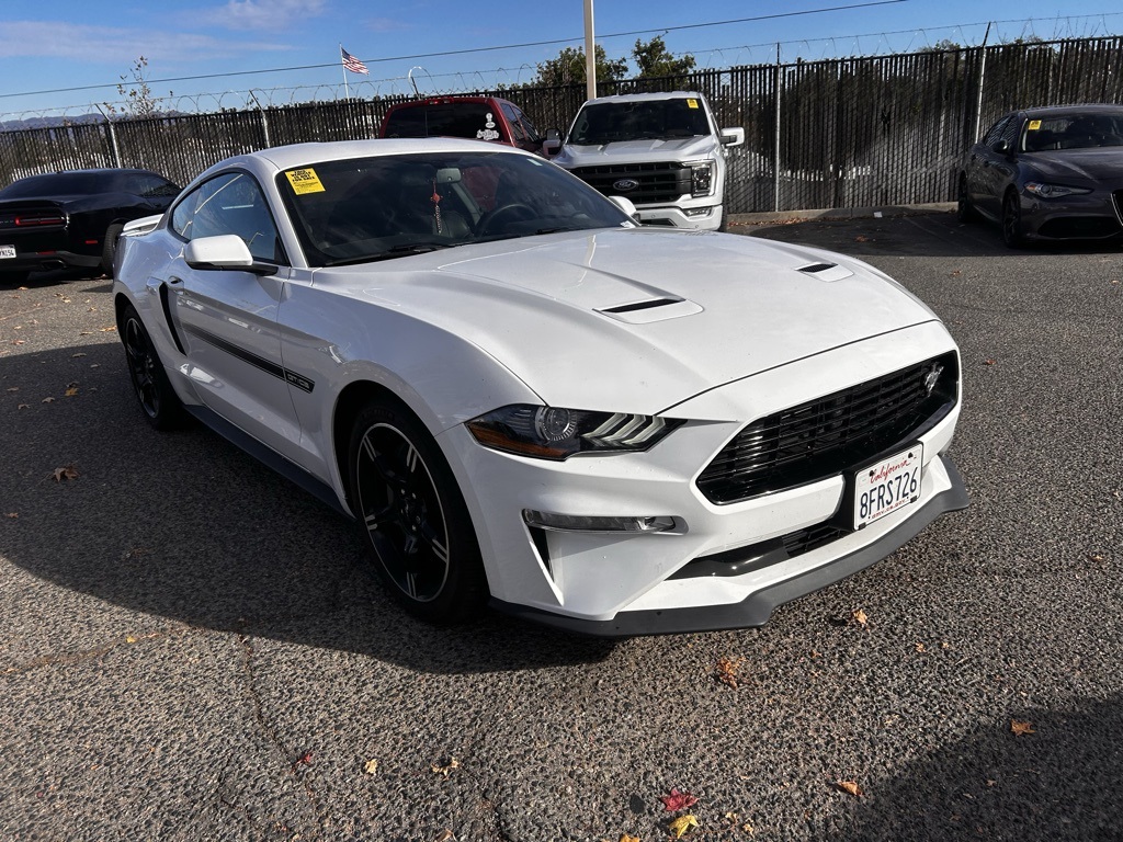 Oxford White 2019 Ford Mustang GT Premium RWD 10-Speed Automatic 5.0L V8 Ti-VCT Active Anti-Theft System, Air Conditioning, AM/FM Stereo, Blind Spot Info System w/Cross-Traffic Alert, Brake assist, California Special Instrument Panel Applique Badge, California Special Package, California Special Script Rear Badging, Climate Controlled Heated/Cooled Front Seats, Electronic Stability Control, Enhanced Security Package, Equipment Group 401A, Exterior Parking Camera Rear, Floor Mats w/Red Contrast Stitching, Front fog lights, Fully automatic headlights, Leather Bucket Seats, Leather Bucket Seats w/Color Accents, Leather-Trimmed Bucket Seats w/Miko Suede Inserts, Memory Driver Seat, Mirrors & Ambient Lighting, Miko Suede Door Inserts w/Red Contrast Stitching, Pedestal Rear Spoiler, Radio data system, SiriusXM Radio, Speed control, Spoiler, SYNC 3 Communications & Entertainment System, Unique Front Grilles w/Offset Tri-Bar Pony Logo, Voice-Activated Touch-Screen Navigation System, Wheels: 19" x 8.5" Machined-Face Aluminum.Recent Arrival! Odometer is 20184 miles below market average!Awards: * 2019 KBB.com 10 Coolest Cars Under $30,000