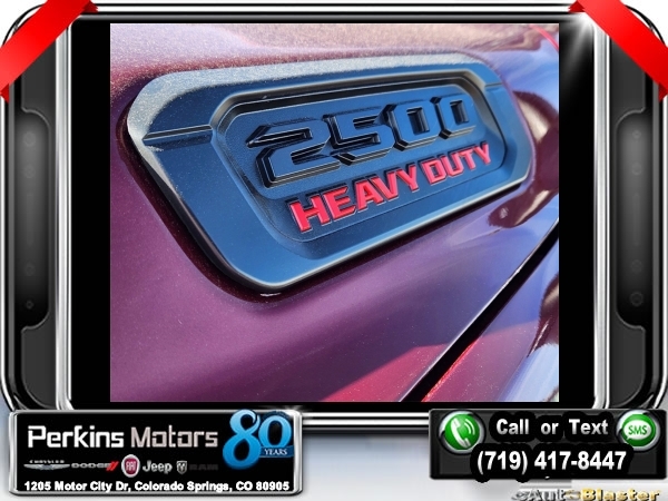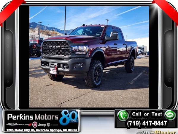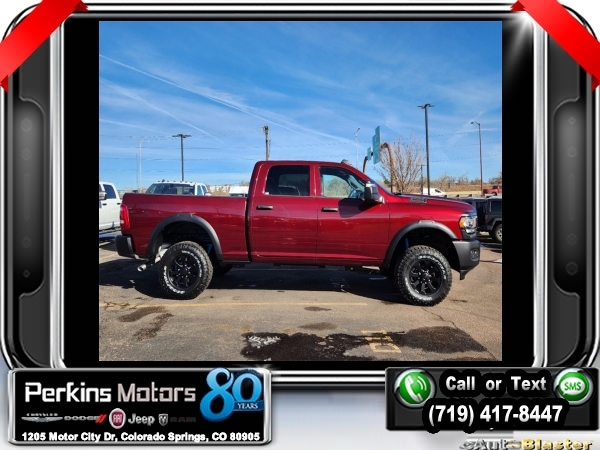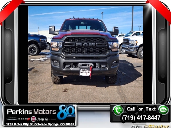 Factory MSRP: $64,860 $12,000 off MSRP! Delmonico Red Pearlcoat 2024 Ram 2500 Tradesman 4WD 8-Speed Automatic 6.4L V8<br><br>Check us out at www.perkinsmotors.com to see our specials! Since opening our doors in 1944, we’ve been proud to serve Colorado Springs, CO, and the surrounding areas of Pueblo, Castle Rock and Denver, CO. Throughout this time of being family owned for 80 years, we’ve maintained a firm commitment to our customers: to offer a wide selection of New Chrysler, Dodge, Fiat, Jeep, and Ram vehicles and quality pre-owned vehicles, and provide a quick, no-hassle car-buying process that ensures everyone drives off the lot satisfied with their purchase.<br><br>Power Wagon Package (4.10 Axle Ratio, Base Engine Controller, Black Wheel Center Hub, Black Wheel Flares, Front Disconnecting Stabilizer Bar, Front Electric Winch, Front LED Fog Lamps, Front Performance Tuned Shock Absorbers, Fuel Tank Skid Plate Shield, Hill Descent Control, ParkSense Front/Rear Park Assist System, Powder Coated Front Bumper, Powder Coated Rear Bumper, Raised Ride Height, RAM Articulink Suspension, Rear Performance Tuned Shock Absorbers, Rear Wheelhouse Liners, Tow Hooks, Tru-Lok Front & Rear Axles, and Wheels: 17 x 8.0 Black Painted Aluminum), Quick Order Package 2GA Tradesman, Tradesman Level 2 Equipment Group (2 Way Rear Headrest Seat, 4 Way Front Headrests, 40/20/40 Split Bench Seat, Black Exterior Mirrors, Cloth 40/20/40 Bench Seat, Exterior Mirrors Courtesy Lamps, Exterior Mirrors w/Heating Element, Exterior Mirrors w/Supplemental Signals, For More Info, Call 800-643-2112, Front Armrest w/Cupholders, Manual Adjust 4-Way Driver Seat, Manual Adjust 4-Way Front Passenger Seat, Manual Folding Exterior Mirrors, Manual Telescoping Mirrors, Mirror Running Lights, Power Adjust Mirrors, Power Adjustable Convex Aux Mirrors, Power Heated Folding Telescope Mirrors, Rear Folding Seat, Rear Power Sliding Window, Rear Window Defroster, Remote USB Port - Charge Only, SiriusXM Radio Service, SiriusXM Satellite Radio, and Storage Tray), 115V Auxiliary Front Power Outlet, 17 x 7.5 Steel Styled Wheels, 220 Amp Alternator, 3.73 Axle Ratio, 4-Wheel Disc Brakes, 400W Inverter, 4G LTE Wi-Fi Hot Spot, 6 Speakers, 8.4 Touchscreen Display, ABS brakes, Active Noise Control System, Air Conditioning, All R1 Low Radios, All Radio Equipped Vehicles, AM/FM radio, Apple CarPlay, Auto Power-Folding Mirrors, Blind Spot & Cross Path Detection, Bluetooth Handsfree Phone & Audio, Brake assist, Carpet Floor Covering, Center Hub, Clearance Lamps, Compass, Connectivity - US/Canada, Cruise Control, Delay-off headlights, Driver door bin, Dual front impact airbags, Dual front side impact airbags, Electronic Stability Control, Electronically Controlled Throttle, Emergency communication system: SiriusXM Guardian, Exterior 115V AC Outlet, For Details, Visit DriveUconnect.com, Forward & Reverse Utility Lights, Front & Rear Floor Mats, Front anti-roll bar, Front Center Armrest w/Storage, Front License Plate Bracket, Front reading lights, Fully automatic headlights, Global Telematics Box Module (TBM), Google Android Auto, GPS Antenna Input, Heavy Duty Vinyl 40/20/40 Split Bench Seat, Illuminated entry, Integrated Center Stack Radio, Integrated Voice Command w/Bluetooth, LED Tail Lamps, Low tire pressure warning, Manufacturer's Statement of Origin, MOPAR Front & Rear Rubber Floor Mats, Occupant sensing airbag, Outside temperature display, Overhead airbag, Overhead console, ParkView Rear Back-Up Camera, Passenger door bin, Passenger vanity mirror, Power Heated Fold Telescope Mirrors, Power steering, Power Telescoping Mirrors, Power windows, Radio data system, Radio: Uconnect 3 w/5 Display, Radio: Uconnect 5 W w/8.4 Display, Rear anti-roll bar, Rear step bump Sale price includes all manufacture's incentives and dealer discounts. Sale price not available on lease or compatible with special APR. $1000 - 2024 Bonus Cash . Exp. 01/02/2025 $2000 - 2024 West BC Bonus Cash . Exp. 0