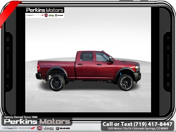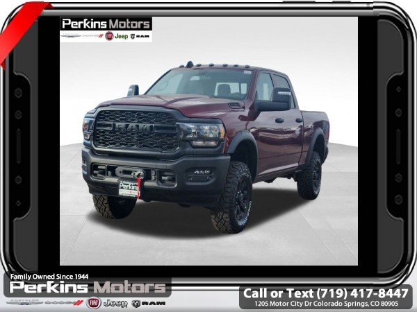 Factory MSRP: $64,745 $11,804 off MSRP! Delmonico Red Pearlcoat 2024 Ram 2500 Tradesman 4WD 8-Speed Automatic 6.4L V8<br><br>Check us out at www.perkinsmotors.com to see our specials! Since opening our doors in 1944, we’ve been proud to serve Colorado Springs, CO, and the surrounding areas of Pueblo, Castle Rock and Denver, CO. Throughout this time of being family owned for 80 years, we’ve maintained a firm commitment to our customers: to offer a wide selection of New Chrysler, Dodge, Fiat, Jeep, and Ram vehicles and quality pre-owned vehicles, and provide a quick, no-hassle car-buying process that ensures everyone drives off the lot satisfied with their purchase.<br><br>Bed Utility Group (LED Bed Lighting, MOPAR Deployable Bed Step, and MOPAR Spray In Bedliner), Power Wagon Package (4.10 Axle Ratio, Base Engine Controller, Black Wheel Center Hub, Black Wheel Flares, Front Disconnecting Stabilizer Bar, Front Electric Winch, Front LED Fog Lamps, Front Performance Tuned Shock Absorbers, Fuel Tank Skid Plate Shield, Hill Descent Control, ParkSense Front/Rear Park Assist System, Powder Coated Front Bumper, Powder Coated Rear Bumper, Raised Ride Height, RAM Articulink Suspension, Rear Performance Tuned Shock Absorbers, Rear Wheelhouse Liners, Tow Hooks, Tru-Lok Front & Rear Axles, and Wheels: 17 x 8.0 Black Painted Aluminum), Quick Order Package 2GA Tradesman, Tradesman Level 2 Equipment Group (2 Way Rear Headrest Seat, 4 Way Front Headrests, 40/20/40 Split Bench Seat, Black Exterior Mirrors, Cloth 40/20/40 Bench Seat, Exterior Mirrors Courtesy Lamps, Exterior Mirrors w/Heating Element, Exterior Mirrors w/Supplemental Signals, For More Info, Call 800-643-2112, Front Armrest w/Cupholders, Manual Adjust 4-Way Driver Seat, Manual Adjust 4-Way Front Passenger Seat, Manual Folding Exterior Mirrors, Manual Telescoping Mirrors, Mirror Running Lights, Power Adjust Mirrors, Power Adjustable Convex Aux Mirrors, Power Heated Folding Telescope Mirrors, Rear Folding Seat, Rear Power Sliding Window, Rear Window Defroster, Remote USB Port - Charge Only, SiriusXM Radio Service, SiriusXM Satellite Radio, and Storage Tray), 115V Auxiliary Front Power Outlet, 17 x 7.5 Steel Styled Wheels, 220 Amp Alternator, 3.73 Axle Ratio, 4-Wheel Disc Brakes, 400W Inverter, 6 Speakers, ABS brakes, Active Noise Control System, Air Conditioning, AM/FM radio, Auto Power-Folding Mirrors, Blind Spot & Cross Path Detection, Brake assist, Carpet Floor Covering, Center Hub, Clearance Lamps, Compass, Cruise Control, Delay-off headlights, Driver door bin, Dual Alternators Rated At 380 Amps, Dual front impact airbags, Dual front side impact airbags, Electronic Stability Control, Electronically Controlled Throttle, Emergency communication system: SiriusXM Guardian, Exterior 115V AC Outlet, Forward & Reverse Utility Lights, Front & Rear Floor Mats, Front anti-roll bar, Front Center Armrest w/Storage, Front License Plate Bracket, Front reading lights, Fully automatic headlights, Global Telematics Box Module (TBM), GPS Antenna Input, Heavy Duty Vinyl 40/20/40 Split Bench Seat, Illuminated entry, Integrated Voice Command w/Bluetooth, LED Tail Lamps, Low tire pressure warning, Manufacturer's Statement of Origin, MOPAR Front & Rear Rubber Floor Mats, Occupant sensing airbag, Outside temperature display, Overhead airbag, Overhead console, ParkView Rear Back-Up Camera, Passenger door bin, Passenger vanity mirror, Power Heated Fold Telescope Mirrors, Power steering, Power Telescoping Mirrors, Power windows, Radio data system, Radio: Uconnect 3 w/5 Display, Rear anti-roll bar, Rear step bumper, Tachometer, Tilt steering wheel, Tip Start, Traction control, Variably intermittent wipers, and Voltmeter. Sale price includes all manufacture's incentives and dealer discounts. Sale price not available on lease or compatible with special APR. 10% Msrp - 2024 West BC Standalone 10% Below MSRP. Exp. 03/03/2025 Price includes $670 in dealer added accessories.