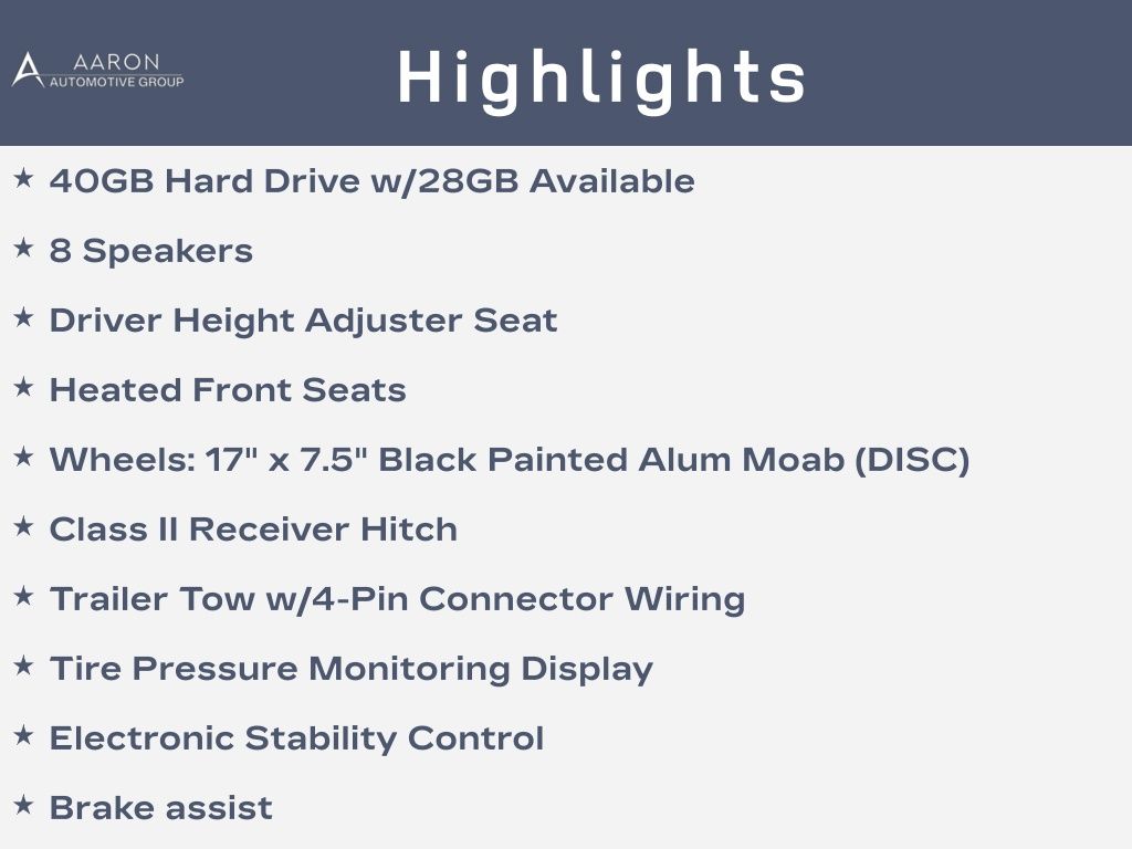 3.73 Rear Axle Ratio, 40GB Hard Drive w/28GB Available, 5-Year SiriusXM Travel Link Service, 6.5" Touchscreen Display, 8 Speakers, Air Conditioning, Air Conditioning w/Auto Temperature Control, Air Filtering, Alpine 9-Speaker w/All Weather Subwoofer, Anti-Spin Differential Rear Axle, Audio Jack Input for Mobile Devices, Backcountry Package, Backcountry Package Decals, Black 3-Piece Hard Top, Black Jeep Grille Badge, Black/Chrome Screws Fuel Filler Door, Body Color 3-Piece Hard Top, Body Color Grille w/Black Accent, Brake assist, Chrome/Leather Wrapped Shift Knob, Class II Receiver Hitch, Connectivity Group, Diesel Gray Interior Accents, Driver Height Adjuster Seat, Electronic Stability Control, Freedom Panel Storage Bag, Front Seat Back Map Pockets, Fully automatic headlights, GPS Navigation, Heated Front Seats, Humidity Sensor, Leather Seat w/Cloth (Sport Mesh) (DISC), Leather Wrapped Steering Wheel, Low Gloss Black Wrangler Decal, Max Tow Package, MOPAR Coat Hooks and Grab Handles, MOPAR HD Rear Bumper, MOPAR Slush Mats, MOPAR Winch-Capable HD Front Bumper, Quick Order Package 24X Backcountry (DISC), Radio: 430N, Rear Window Defroster, Rear Window Wiper/Washer, Remote USB Port, SiriusXM Travel Link, Tire Pressure Monitoring Display, Trailer Tow w/4-Pin Connector Wiring, Uconnect Voice Command w/Bluetooth, Vehicle Information Center, Wheels: 17" x 7.5" Black Painted Alum Moab (DISC).Clean CARFAX.To see more quality vehicles like this one right just click on AaronFordofPoway.com or dial (858) 748-1400.