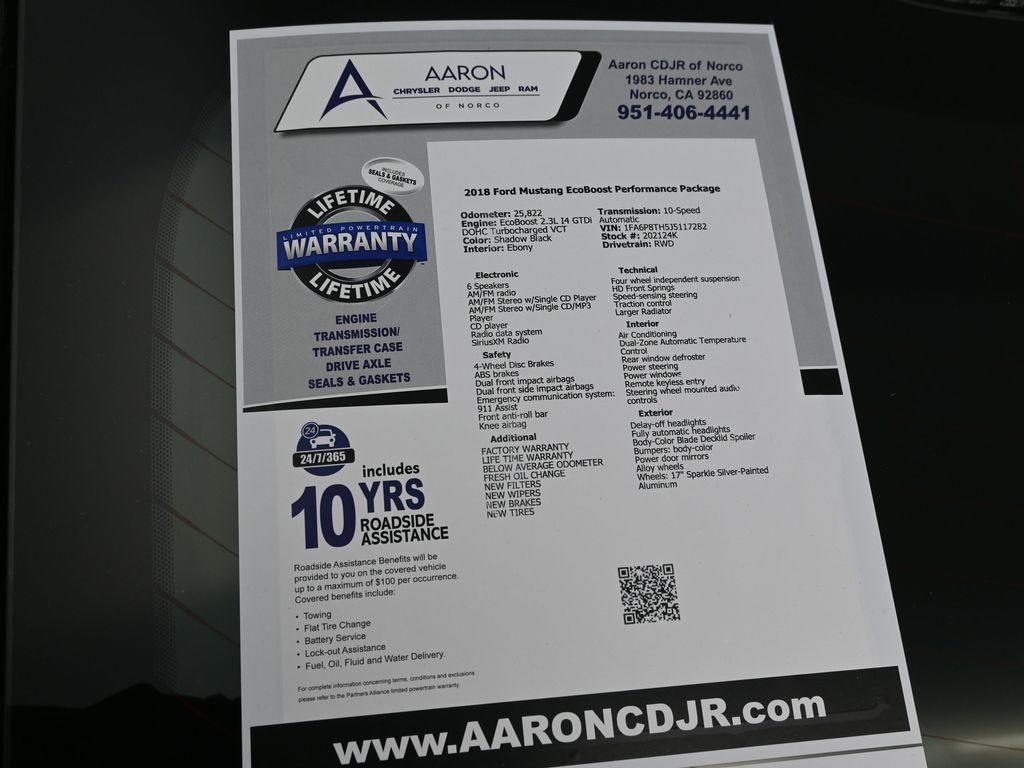 LIFE TIME WARRANTY, BELOW AVERAGE ODOMETER, FRESH OIL CHANGE, NEW FILTERS, NEW WIPERS, 2D Coupe, EcoBoost 2.3L I4 GTDi DOHC Turbocharged VCT, 10-Speed Automatic, RWD, 3.55 TORSEN Limited Slip Rear Axle, Alloy wheels, AM/FM Stereo w/Single CD/MP3 Player, Body-Color Blade Decklid Spoiler, Cloth Bucket Seats, Dual-Zone Automatic Temperature Control, EcoBoost Performance Package, Engine Spun Aluminum Instrument Panel, Equipment Group 101A, Exterior Parking Camera Rear, Gauge Pack (Oil Pressure & Boost), HD Front Springs, Knee airbag, Larger Brake Rotors, Larger Radiator, Low tire pressure warning, Reverse Sensing System, SiriusXM Radio, SYNC 3 Communications & Entertainment System, Wheels: 18" x 8" Machined-Face Aluminum, Wheels: 19" x 9" Ebony Black-Painted Aluminum.CARFAX One-Owner.Awards: * 2018 KBB.com 10 Coolest Cars Under $25,000 * 2018 KBB.com Brand Image Awards * 2018 KBB.com 10 Most Awarded Brands