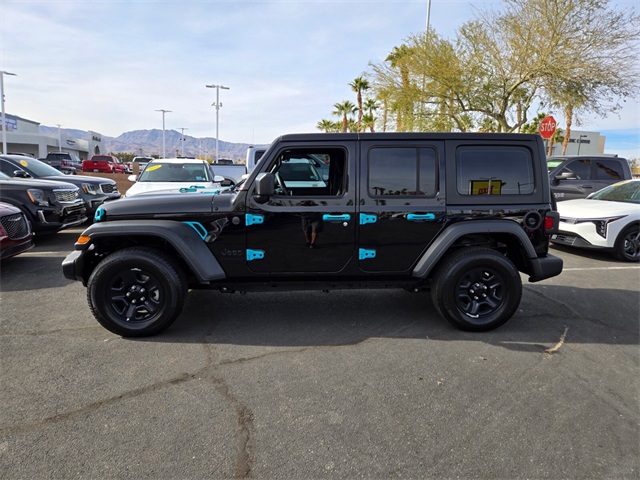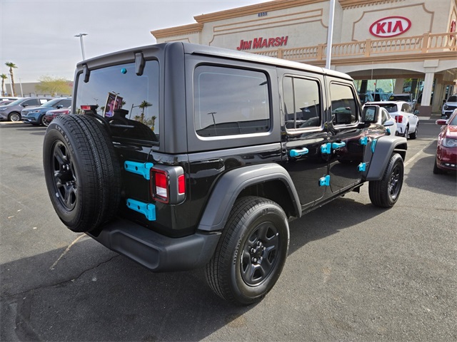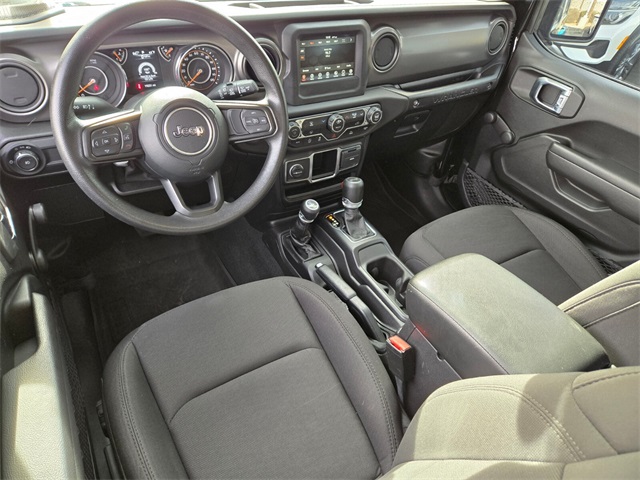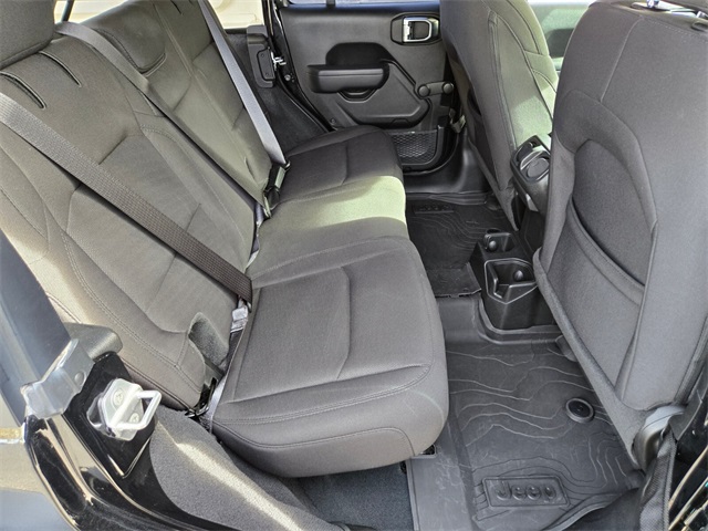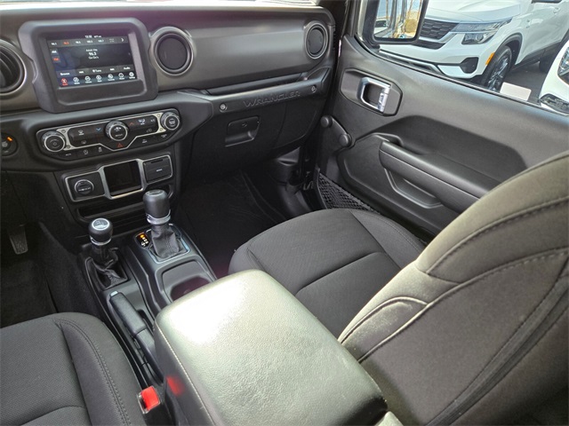 Odometer is 7158 miles below market average!Black Clearcoat 2023 Jeep Wrangler Sport 4WD 3.6L V6 24V VVTIf you don't drive here, you can't save here!Price may not include recon fee. Quick Order Package 25B Sport, 3.45 Overall Top Gear Ratio, 4-Wheel Disc Brakes, 8 Speakers, ABS brakes, Air Conditioning, AM/FM radio, Apple CarPlay, Apple CarPlay/Android Auto, Aux Battery, Black 3-Piece Hard Top, Brake assist, Cloth Low-Back Bucket Seats, Compass, Delay-off headlights, Driver door bin, Driver vanity mirror, Dual front impact airbags, Dual front side impact airbags, Electronic Stability Control, Emergency communication system: SiriusXM Guardian, Engine Oil Cooler, Front anti-roll bar, Front Bucket Seats, Front Center Armrest w/Storage, Front fog lights, Front reading lights, Google Android Auto, GPS Antenna Input, Integrated Center Stack Radio, Integrated roll-over protection, Integrated Voice Command w/Bluetooth, Low tire pressure warning, MOPAR All-Weather Floor Mats, Non-Lock Fuel Cap w/o Discriminator, Normal Duty Suspension, Occupant sensing airbag, Outside temperature display, ParkView Rear Back-Up Camera, Passenger door bin, Passenger vanity mirror, Power steering, Radio data system, Radio: Uconnect 4 w/7" Display, Rear anti-roll bar, Rear reading lights, Speed control, Split folding rear seat, Steering wheel mounted audio controls, Stop-Start Dual Battery System, Tachometer, Telescoping steering wheel, Tilt steering wheel, Traction control, Trip computer, USB Host Flip, Variably intermittent wipers, and Wheels: 17" x 7.5" Black Steel Styled.