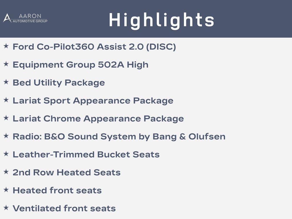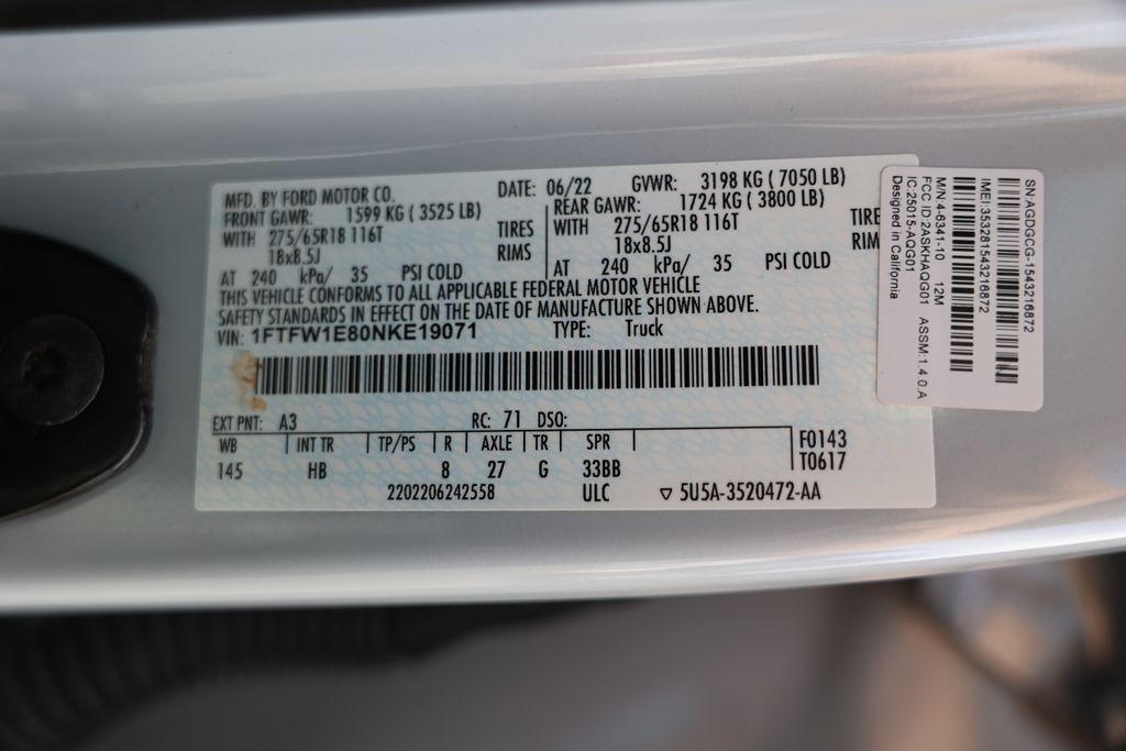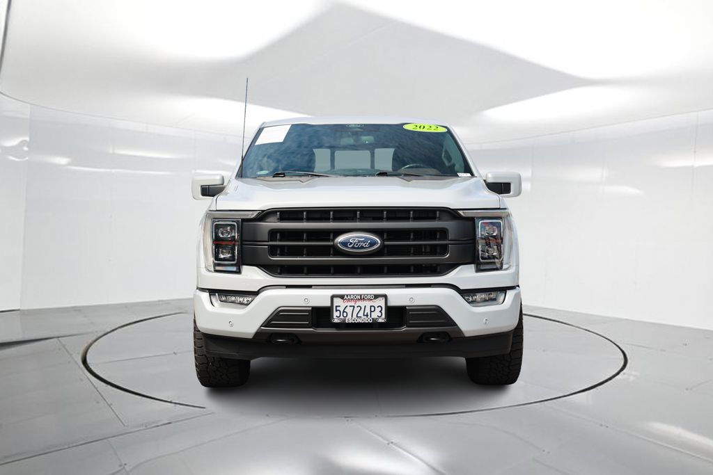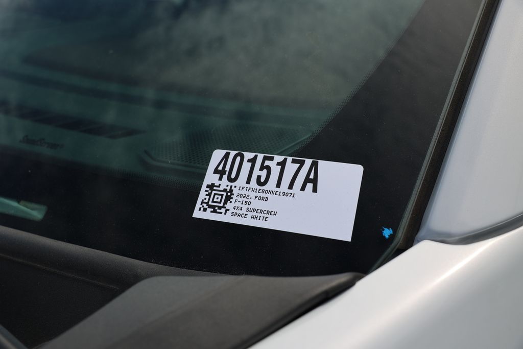 Space White Metallic 2022 Ford F-150 Lariat 4WD 10-Speed Automatic 3.5L V6 EcoBoost 4WD, 2nd Row Heated Seats, 6" Bright Polished Running Board, Accent-Color Angular Step Bars, Bed Utility Package, Body-Color Front & Rear Bumpers, Box Side Decals, BoxLink, Chrome 2-Bar Grille w/4 Minor Bars, Chrome Door & Tailgate Handles w/Body-Color Bezel, Chrome Single-Tip Exhaust, Chrome Skull Caps on Exterior Mirrors, Connected Built-In Navigation, Dark 2-Bar & 1 Minor Bar Style Grille, Equipment Group 502A High, Evasive Steering Assist, Exterior Parking Camera Rear, Ford Co-Pilot360 Assist 2.0 (DISC), Heated front seats, Heated Steering Wheel, Intelligent Adaptive Cruise Control w/Stop & Go, Intersection Assist, Lariat Chrome Appearance Package, Lariat Sport Appearance Package, Leather-Trimmed Bucket Seats, LED Box Lighting, LED Projector w/Dynamic Bending Headlamps, Onboard 400W Outlet, Power Glass Sideview Mirr w/Chrome Skull Caps, Power Tailgate, Power Tilt/Telescoping Steering Column w/Memory, Radio: B&O Sound System by Bang & Olufsen, Rain-Sensing Wipers, Remote keyless entry, Speed Sign Recognition, SYNC 4 w/Enhanced Voice Recognition, Tailgate Step w/Tailgate Work Surface, Universal Garage Door Opener, Ventilated front seats, Wheels: 18" 6-Spoke Machined Aluminum, Wheels: 18" Chrome-Like PVD, Wireless Charging Pad.