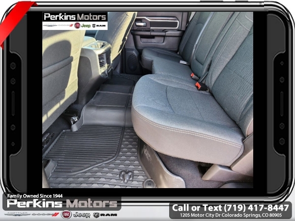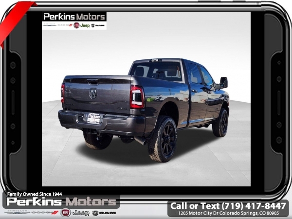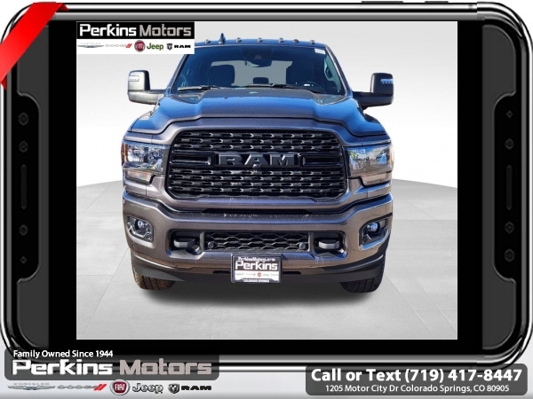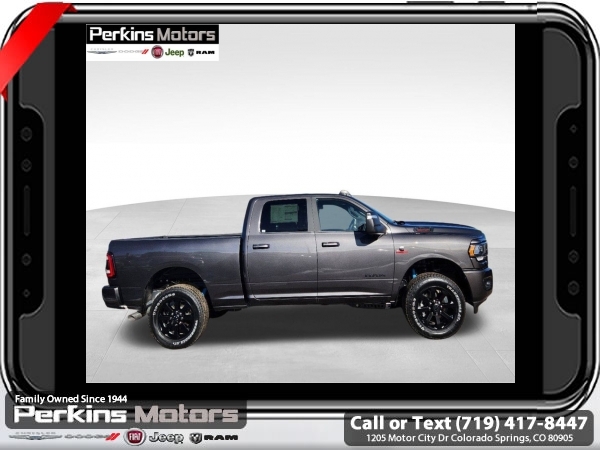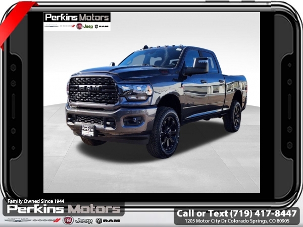 Factory MSRP: $82,440 $16,744 off MSRP! Granite Crystal Metallic Clearcoat 2024 Ram 2500 Big Horn 4WD 6-Speed Automatic Cummins 6.7L I6 Turbodiesel<br><br>Check us out at www.perkinsmotors.com to see our specials! Since opening our doors in 1944, we’ve been proud to serve Colorado Springs, CO, and the surrounding areas of Pueblo, Castle Rock and Denver, CO. Throughout this time of being family owned for 80 years, we’ve maintained a firm commitment to our customers: to offer a wide selection of New Chrysler, Dodge, Fiat, Jeep, and Ram vehicles and quality pre-owned vehicles, and provide a quick, no-hassle car-buying process that ensures everyone drives off the lot satisfied with their purchase.<br><br>Bed Utility Group (LED Bed Lighting, MOPAR Deployable Bed Step, and MOPAR Spray In Bedliner), Cold Weather Group (Engine Block Heater and MOPAR Winter Front Grille Cover), Heated Seats & Wheel Group (Heated Front Seats, Heated Steering Wheel, Leather Wrapped Steering Wheel, and Steering Wheel Mounted Audio Controls), Level 1 Equipment Group (2 Way Rear Headrest Seat, 2nd Row In Floor Storage Bins, 4 Way Front Headrests, 40/20/40 Split Bench Seat, 4G LTE Wi-Fi Hot Spot, 8.4 Touchscreen Display, Apple CarPlay, Auto Power-Folding Mirrors, Big Horn IP Badge, Black Exterior Mirrors, Bluetooth Handsfree Phone & Audio, Center Hub, Connectivity - US/Canada, Dual Glove Boxes, Exterior Mirrors Courtesy Lamps, Exterior Mirrors w/Heating Element, Exterior Mirrors w/Supplemental Signals, Foam Bottle Insert (Door Trim Panel), Footwell Courtesy Lamp, For Details, Visit DriveUconnect.com, For More Info, Call 800-643-2112, Forward & Reverse Utility Lights, Front Armrest w/Cupholders, Front Center Seat Cushion Storage, Front Fog Lamps, Front Seat Back Map Pockets, Global Telematics Box Module (TBM), Glove Box Lamp, Google Android Auto, GPS Antenna Input, Integrated Center Stack Radio, Integrated Voice Command w/Bluetooth, Locking Lower Glove Box, Manual Adjust 4-Way Front Passenger Seat, Mirror Running Lights, Power 2-Way Driver Lumbar Adjust, Power Adjust 8-Way Driver Seat, Power Adjust Mirrors, Power Adjustable Convex Aux Mirrors, Power Heated Fold Telescope Mirrors, Power Telescoping Mirrors, Rear 60/40 Folding Seat, Rear Dome w/On/Off Switch Lamp, Remote USB Port - Charge Only, Selectable Tire Fill Alert, SiriusXM Radio Service, SiriusXM Satellite Radio, Storage Tray, and Wheels: 18 x 8.0 Polished Aluminum), Night Edition (Black Exterior Truck Badging, Black Headlamp Bezels, Black Interior Accents, Black Ram Head Tailgate Badge, Black Tail Lamp Bezels, Black Wheel Center Hub, Body Color Door Handles, Body Color Grille Surround, Gloss Black Nostrils/MIC Black Grille, Painted Front Bumper, Painted Rear Bumper, ParkSense Front/Rear Park Assist System, and Wheels: 20 x 8.0 Black Painted Aluminum), Off Road Package (Front Performance Tuned Shock Absorbers, Hill Descent Control, Rear Performance Tuned Shock Absorbers, and Tow Hooks), Quick Order Package 2HZ Big Horn, Safety Group (Adaptive Cruise Control w/Stop, Adaptive Steering System, Auto High Beam Headlamp Control, Auto-Dimming Rear-View Mirror, Full Speed Forward Collision Warning Plus, Lane Keep Assist, and Rain Sensitive Windshield Wipers), Towing Technology Group (Blind Spot & Cross Path Detection, CTR Stop Lamp w/Cargo View Camera, LED Tail Lamps, Surround View Camera System, and Trailer Reverse Guidance), 115V Auxiliary Front Power Outlet, 220 Amp Alternator, 3.73 Axle Ratio, 4-Wheel Disc Brakes, 400W Inverter, 5th Wheel/Gooseneck Towing Prep Group, 9 Alpine Speakers w/Subwoofer, ABS brakes, Active Noise Control System, Air Conditioning ATC w/Dual Zone Control, Alexa Built-In, All R1 High Radios, All Radio Equipped Vehicles, Anti-Spin Differential Rear Axle, Brake assist, Bumpers: chro Sale price includes all manufacture's incentives and dealer discounts. Sale price not available on lease or compatible with special APR. 10% Msrp - 2024 West BC Standalone 10% Below MSRP. Exp. 0