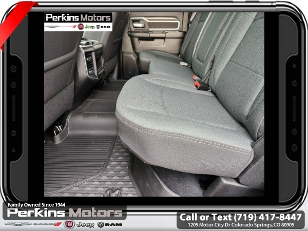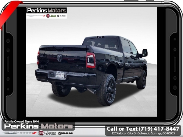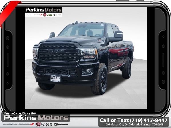 Factory MSRP: $82,390 $10,130 off MSRP! Diamond Black Crystal Pearlcoat 2024 Ram 2500 Big Horn 4WD 6-Speed Automatic Cummins 6.7L I6 Turbodiesel<br><br>Check us out at www.perkinsmotors.com to see our specials! Since opening our doors in 1944, we’ve been proud to serve Colorado Springs, CO, and the surrounding areas of Pueblo, Castle Rock and Denver, CO. Throughout this time of being family owned for 80 years, we’ve maintained a firm commitment to our customers: to offer a wide selection of New Chrysler, Dodge, Fiat, Jeep, and Ram vehicles and quality pre-owned vehicles, and provide a quick, no-hassle car-buying process that ensures everyone drives off the lot satisfied with their purchase.<br><br>Bed Utility Group (LED Bed Lighting, MOPAR Deployable Bed Step, and MOPAR Spray In Bedliner), Cold Weather Group (Engine Block Heater and MOPAR Winter Front Grille Cover), Heated Seats & Wheel Group (Heated Front Seats, Heated Steering Wheel, Leather Wrapped Steering Wheel, and Steering Wheel Mounted Audio Controls), Level 1 Equipment Group (2 Way Rear Headrest Seat, 2nd Row In Floor Storage Bins, 4 Way Front Headrests, 40/20/40 Split Bench Seat, 4G LTE Wi-Fi Hot Spot, 8.4 Touchscreen Display, Apple CarPlay, Auto Power-Folding Mirrors, Big Horn IP Badge, Black Exterior Mirrors, Bluetooth Handsfree Phone & Audio, Center Hub, Connectivity - US/Canada, Dual Glove Boxes, Exterior Mirrors Courtesy Lamps, Exterior Mirrors w/Heating Element, Exterior Mirrors w/Supplemental Signals, Foam Bottle Insert (Door Trim Panel), Footwell Courtesy Lamp, For Details, Visit DriveUconnect.com, For More Info, Call 800-643-2112, Forward & Reverse Utility Lights, Front Armrest w/Cupholders, Front Center Seat Cushion Storage, Front Fog Lamps, Front Seat Back Map Pockets, Global Telematics Box Module (TBM), Glove Box Lamp, Google Android Auto, GPS Antenna Input, Integrated Center Stack Radio, Integrated Voice Command w/Bluetooth, Locking Lower Glove Box, Manual Adjust 4-Way Front Passenger Seat, Mirror Running Lights, Power 2-Way Driver Lumbar Adjust, Power Adjust 8-Way Driver Seat, Power Adjust Mirrors, Power Adjustable Convex Aux Mirrors, Power Heated Fold Telescope Mirrors, Power Telescoping Mirrors, Rear 60/40 Folding Seat, Rear Dome w/On/Off Switch Lamp, Remote USB Port - Charge Only, Selectable Tire Fill Alert, SiriusXM Radio Service, SiriusXM Satellite Radio, Storage Tray, and Wheels: 18 x 8.0 Polished Aluminum), Night Edition (Black Exterior Truck Badging, Black Headlamp Bezels, Black Interior Accents, Black Ram Head Tailgate Badge, Black Tail Lamp Bezels, Black Wheel Center Hub, Body Color Door Handles, Body Color Grille Surround, Gloss Black Nostrils/MIC Black Grille, Painted Front Bumper, Painted Rear Bumper, ParkSense Front/Rear Park Assist System, and Wheels: 20 x 8.0 Black Painted Aluminum), Off Road Package (Front Performance Tuned Shock Absorbers, Hill Descent Control, Rear Performance Tuned Shock Absorbers, and Tow Hooks), Quick Order Package 2HZ Big Horn, Safety Group (Adaptive Cruise Control w/Stop, Adaptive Steering System, Auto High Beam Headlamp Control, Auto-Dimming Rear-View Mirror, Full Speed Forward Collision Warning Plus, Lane Keep Assist, and Rain Sensitive Windshield Wipers), Towing Technology Group (Blind Spot & Cross Path Detection, CTR Stop Lamp w/Cargo View Camera, LED Tail Lamps, Surround View Camera System, and Trailer Reverse Guidance), 115V Auxiliary Front Power Outlet, 220 Amp Alternator, 3.73 Axle Ratio, 4-Wheel Disc Brakes, 400W Inverter, 5th Wheel/Gooseneck Towing Prep Group, 6 Speakers, 9 Alpine Speakers w/Subwoofer, ABS brakes, Active Noise Control System, Air Conditioning, Air Conditioning ATC w/Dual Zone Control, Alexa Built-In, All R1 High Radios, All Radio Equipped V Sale price includes all manufacture's incentives and dealer discounts. Sale price not available on lease or compatible with special APR. $2500 - 2024 National Truck Month Bonus Cash. Exp. 03/31/2025 Price includes $870 in dealer added a