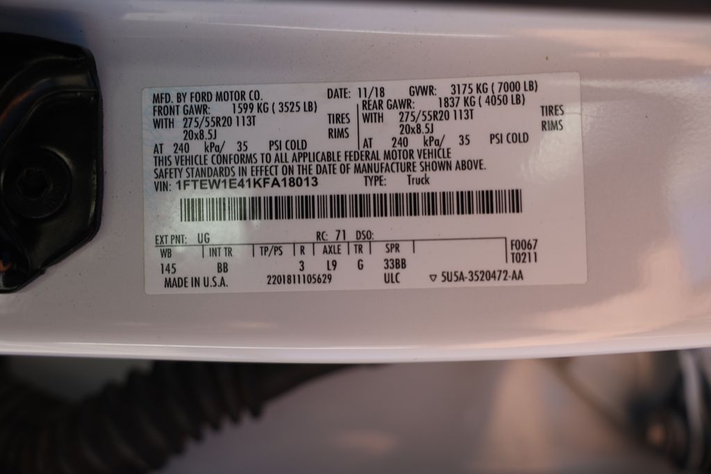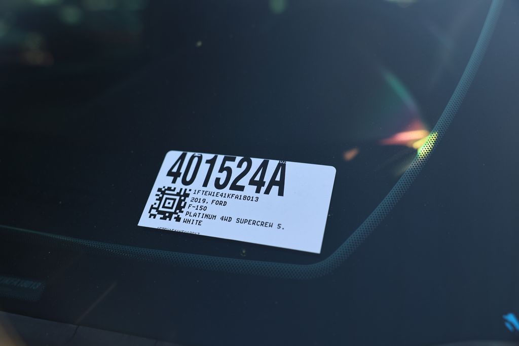White Platinum 2019 Ford F-150 Platinum 4WD 10-Speed Automatic 3.5L V6 EcoBoost 4WD, Active Cruise Control, Radio: B&O Sound System by Bang & Olufsen, SiriusXM Radio, SYNC 3, Twin Panel Moonroof, Voice-Activated Touchscreen Navigation.