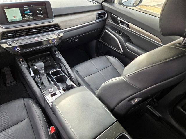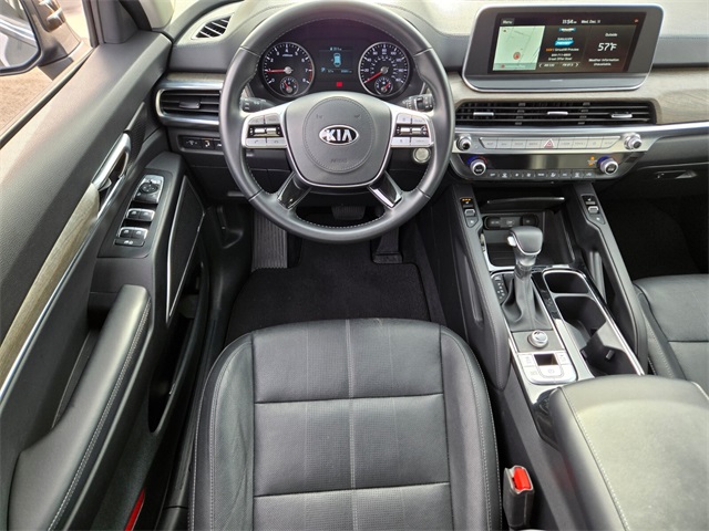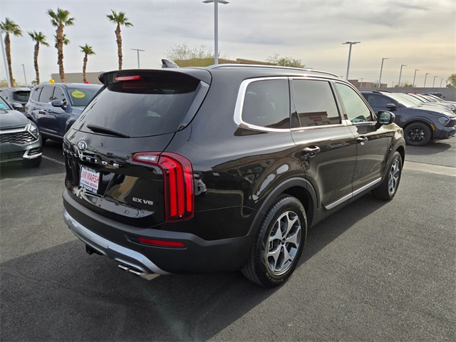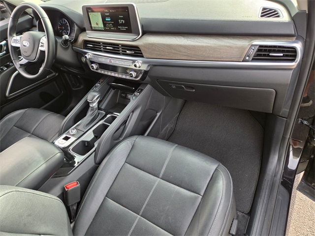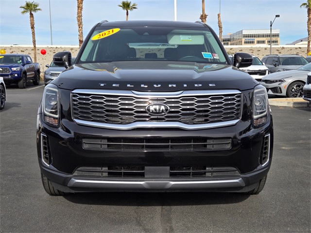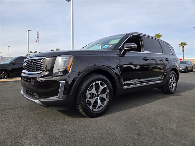 Recent Arrival!Priced below KBB Fair Purchase Price!Odometer is 19126 miles below market average!20/26 City/Highway MPGBlack Copper 2021 Kia Telluride EX FWD 8-Speed Automatic 3.8L V6 DGI DOHC Dual CVVTIf you don't drive here, you can't save here!Awards: * JD Power Initial Quality Study (IQS) * JD Power Automotive Performance, Execution and Layout (APEAL) Study, Initial Quality Study (IQS)Price may not include recon fee. Towing Package (Self Leveling Rear Suspension and Tow Hitch w/Harness (TOF)), 3.648 Axle Ratio, 3rd row seats: split-bench, 4-Wheel Disc Brakes, 6 Speakers, ABS brakes, Air Conditioning, Alloy wheels, AM/FM radio: SiriusXM, Apple CarPlay & Android Auto, Auto-dimming Rear-View mirror, Automatic temperature control, Brake assist, Bumpers: body-color, Carpeted Floor Mats, Compass, Delay-off headlights, Driver door bin, Driver vanity mirror, Dual front impact airbags, Dual front side impact airbags, Electronic Stability Control, Emergency communication system: 911 Connect, Four wheel independent suspension, Front anti-roll bar, Front Bucket Seats, Front Center Armrest, Front dual zone A/C, Front reading lights, Fully automatic headlights, Heated & Ventilated Front Bucket Seats, Heated door mirrors, Heated front seats, Illuminated entry, Knee airbag, Leather Seat Trim, Leather Shift Knob, Leather steering wheel, Low tire pressure warning, Navigation System, Occupant sensing airbag, Outside temperature display, Overhead airbag, Overhead console, Panic alarm, Passenger door bin, Passenger vanity mirror, Power door mirrors, Power driver seat, Power Liftgate, Power moonroof, Power passenger seat, Power steering, Power windows, Radio data system, Radio: AM/FM/SIRIUS Display Audio, Rear air conditioning, Rear anti-roll bar, Rear audio controls, Rear reading lights, Rear seat center armrest, Rear window defroster, Rear window wiper, Reclining 3rd row seat, Remote keyless entry, Roof rack: rails only, Security system, Smart Key w/ Push Button and Remote Start, Speed control, Speed-sensing steering, Split folding rear seat, Spoiler, Steering wheel mounted audio controls, Tachometer, Telescoping steering wheel, Tilt steering wheel, Traction control, Trip computer, Turn signal indicator mirrors, Variably intermittent wipers, Ventilated front seats, and Wheels: 7.5" x 18" Machined Finish Alloy.