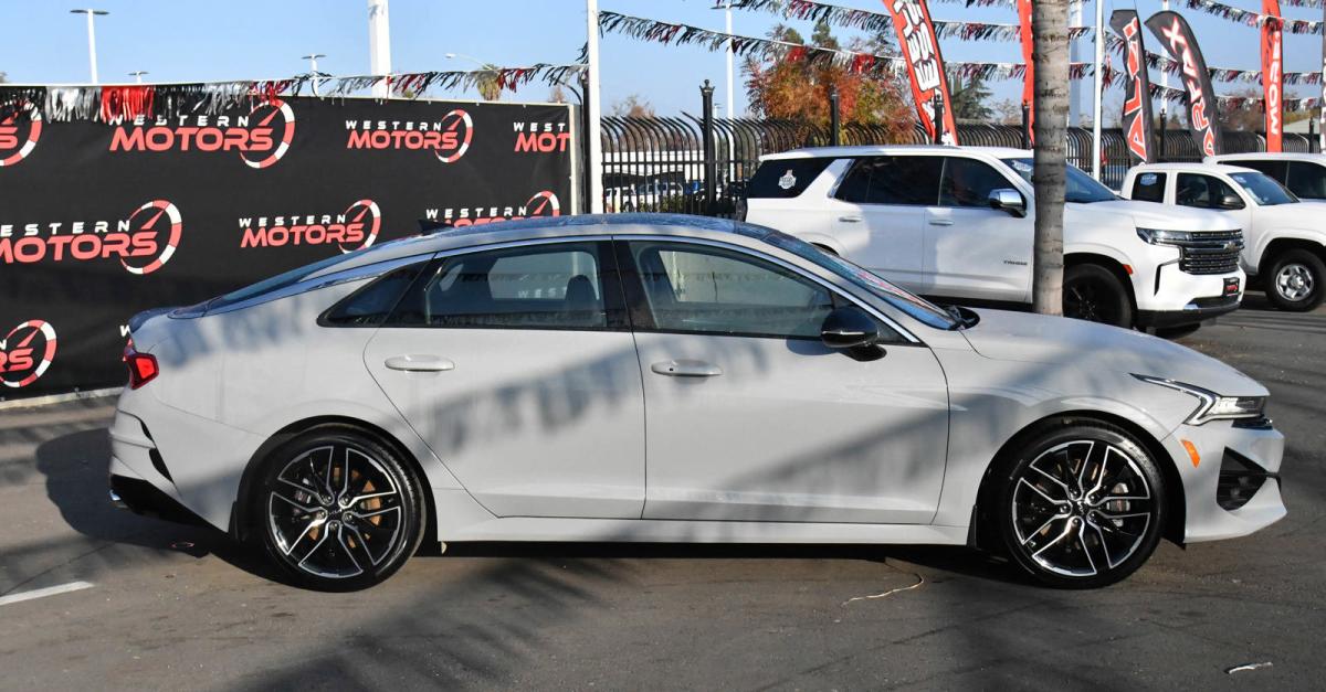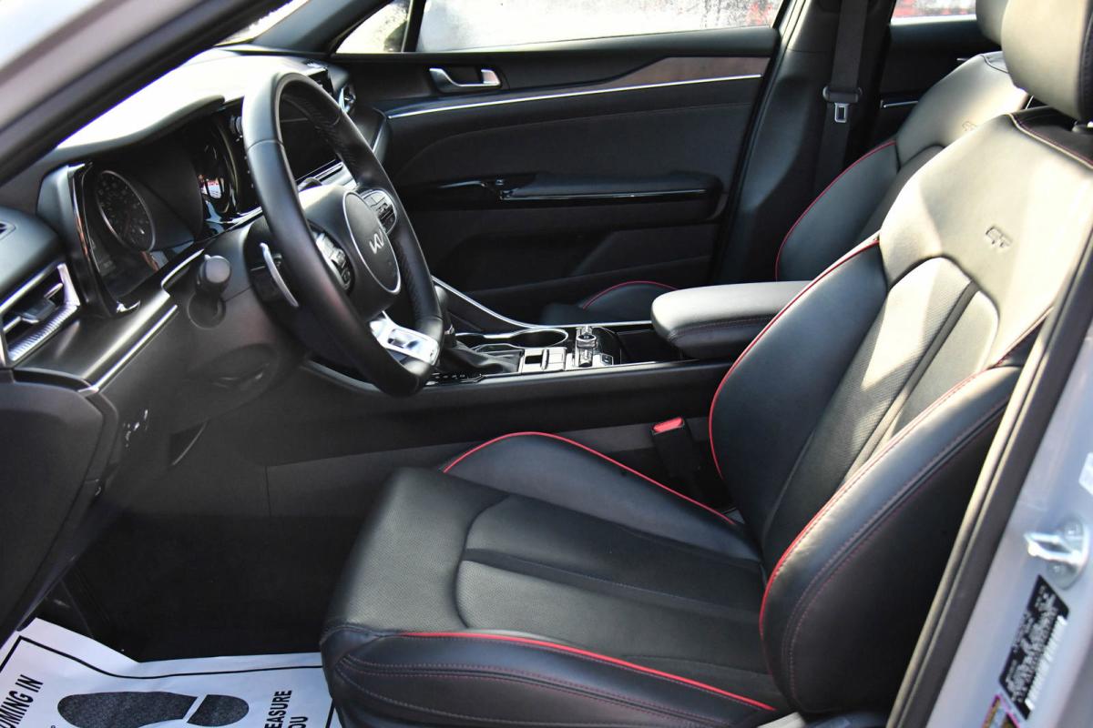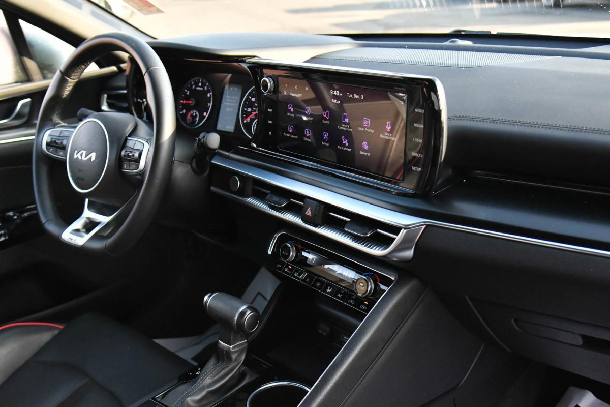 Delivers 32 Highway MPG and 24 City MPG! This Kia K5 delivers a Intercooled Turbo Regular Unleaded I-4 2.5 L/152 engine powering this Automatic transmission. WOLF GRAY, CARPETED FLOOR MATS, BLACK, SYNTEX SEAT TRIM -inc: GT logo and red piping.*This Kia K5 Comes Equipped with These Options *Window Grid Antenna, Wheels: 19 Gloss Black Machined Finish Alloy, Variable Intermittent Wipers, Urethane Gear Shifter Material, Turn-By-Turn Navigation Directions, Trunk Rear Cargo Access, Trip Computer, Transmission: 8-Speed Dual Clutch -inc: paddle shifters and drive mode select system, Tracker System, Tires: 245/40R19.