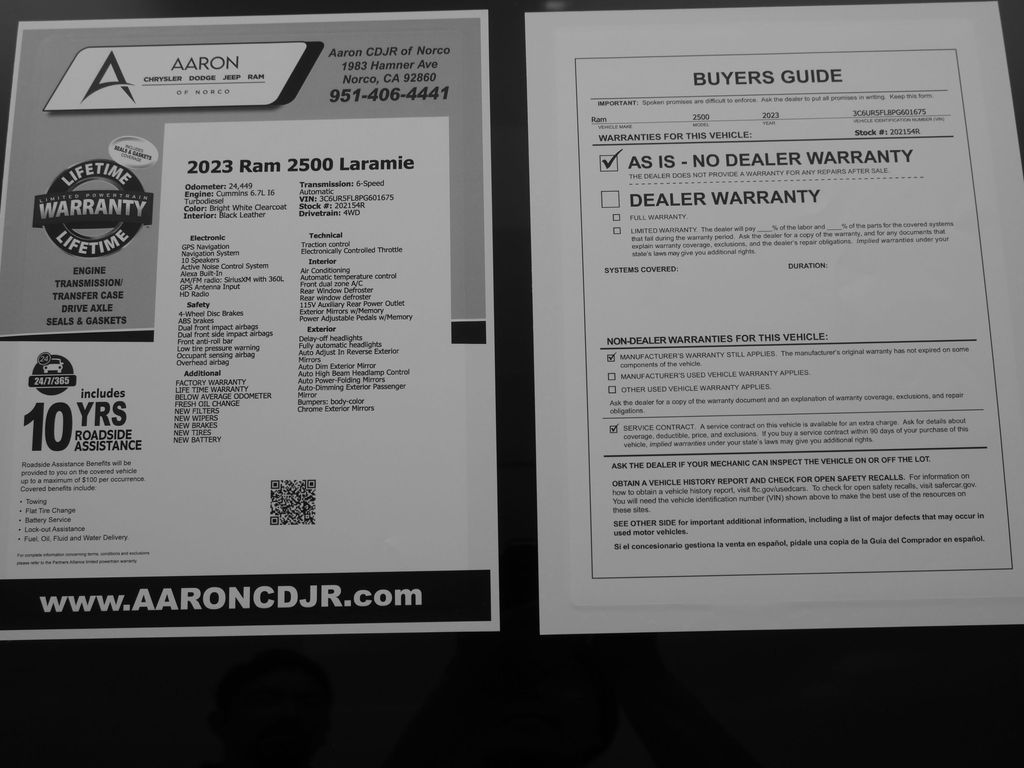 Priced below KBB Fair Purchase Price!FACTORY WARRANTY, FRESH OIL CHANGE, NEW FILTERS, NEW WIPERS, 2500 Laramie, 4D Crew Cab, Cummins 6.7L I6 Turbodiesel, 6-Speed Automatic, 4WD, 12" Touchscreen Display, 2nd Row In Floor Storage Bins, 4G LTE Wi-Fi Hot Spot, Alexa Built-In, Alloy wheels, Apple CarPlay/Android Auto, Auto Adjust In Reverse Exterior Mirrors, Auto Dim Exterior Mirror, Auto High Beam Headlamp Control, Auto Power-Folding Mirrors, Auto-Dimming Exterior Passenger Mirror, Blind Spot & Cross Path Detection, Chrome Exterior Mirrors, Compass, Connected Travel & Traffic Services, Connectivity - US/Canada, Delay-off headlights, Disassociated Touchscreen Display, Exterior Mirrors Courtesy Lamps, Exterior Mirrors w/Heating Element, Exterior Mirrors w/Memory, Exterior Mirrors w/Supplemental Signals, Foam Bottle Insert (Door Trim Panel), For Details, Visit DriveUconnect.com, For More Info, Call 800-643-2112, Forward & Reverse Utility Lights, Front dual zone A/C, Front LED Fog Lamps, Global Telematics Box Module (TBM), Google Android Auto, GPS Antenna Input, GPS Navigation, HD Radio, Heated front seats, Integrated Voice Command w/Bluetooth, Laramie Level 1 Equipment Group, LED Reflector Headlamps, Low tire pressure warning, Mirror Running Lights, Navigation System, Off-Road Information Pages, Overhead airbag, ParkSense Front/Rear Park Assist System, Power Adjust Mirrors, Power Adjustable Convex Aux Mirrors, Power Adjustable Pedals w/Memory, Power Heated Fold Telescopic Mirrors w/Memory, Power Telescoping Mirrors, Radio: Uconnect 5 Nav w/12.0" Display, Radio/Driver Seat/Mirrors/Pedals Memory, Rain Sensitive Windshield Wipers, Rear Power Sliding Window, Rear Window Defroster, Remote Tailgate Release, Selectable Tire Fill Alert, SiriusXM Radio Service, SiriusXM w/360L, Trailer Tow Pages.CARFAX One-Owner.