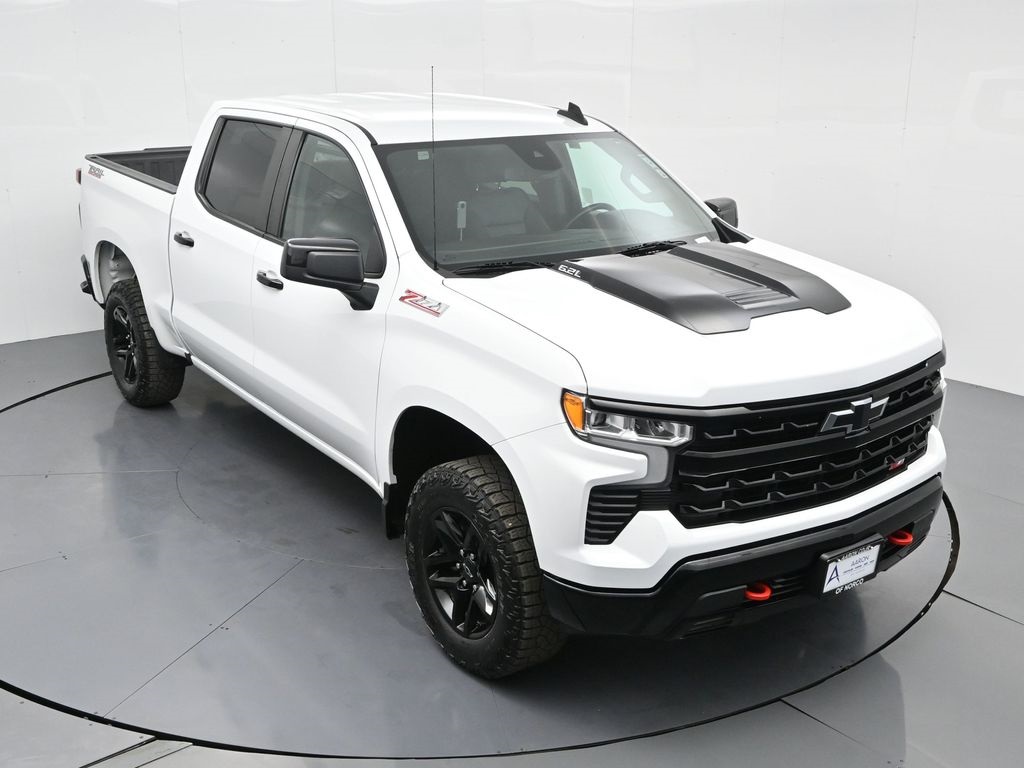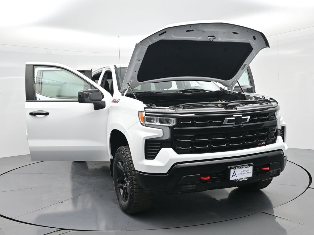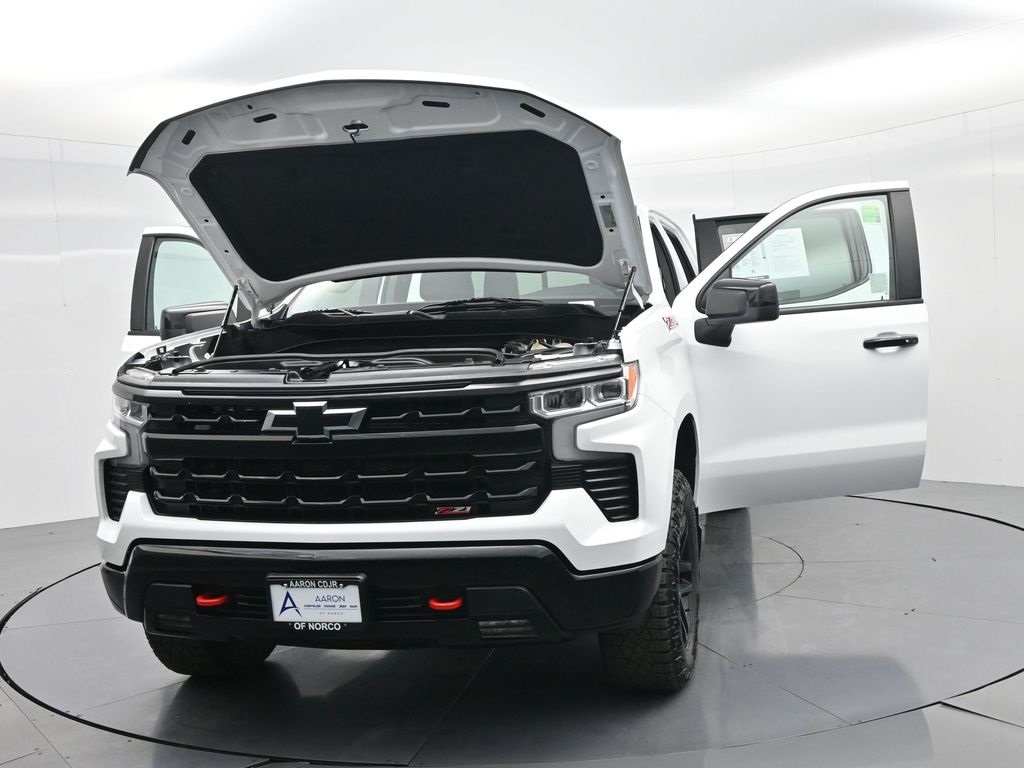 Priced below KBB Fair Purchase Price!FACTORY WARRANTY, FRESH OIL CHANGE, NEW FILTERS, NEW WIPERS, Silverado 1500 LT Trail Boss, 4D Crew Cab, EcoTec3 6.2L V8, 10-Speed Automatic, 4WD, 10-Way Power Driver Seat w/Lumbar, 12.3" Multicolor Reconfigurable Digital Display, 120-Volt Bed Mounted Power Outlet, 120-Volt Instrument Panel Power Outlet, 6-Speaker Audio System, All-Weather Floor Liner (LPO) (AAK), Apple CarPlay/Android Auto, Auto-Locking Rear Differential, Bluetooth® For Phone, Chevrolet Connected Access Capable, Color-Keyed Carpeting Floor Covering, Compass, Convenience Package, Convenience Package II, Deep-Tinted Glass, Dual Rear USB Ports (Charge Only), Dual-Zone Automatic Climate Control, Electric Rear-Window Defogger, Electrical Steering Column Lock, Electronic Cruise Control, EZ Lift Power Lock & Release Tailgate, Front LED Fog Lamps, HD Rear Vision Camera, Heated Driver & Front Outboard Passenger Seats, Heated Power-Adjustable Outside Mirrors, Heated Steering Wheel, Heavy-Duty Air Filter, High Gloss Black Mirror Caps, Hill Descent Control, Hitch Guidance, Hitch Guidance w/Hitch View, Inside Rear-View Mirror w/Tilt, Integrated Trailer Brake Controller, Keyless Open & Start, Leather Package, Leather-Appointed Front Seat Trim, LED Cargo Area Lighting, Low tire pressure warning, OnStar & Chevrolet Connected Services Capable, Overhead airbag, Performance Red Recovery Hooks, Power Front Windows w/Driver Express Up/Down, Power Front Windows w/Passenger Express Down, Power Rear Windows w/Express Down, Power Sliding Rear Window w/Rear Defogger, Preferred Equipment Group 2LT, Premium Bose 7-Speaker Sound System, Rear 60/40 Folding Bench Seat (Folds Up), Remote Vehicle Starter System, SiriusXM w/360L, Standard Tailgate, Steering Wheel Audio Controls, Suspension Package, Theft Deterrent System (Unauthorized Entry), Trailering App, Trailering Package, Universal Home Remote, Up-Level Rear Seat w/Storage Package, Wi-Fi Hot Spot Capable, Wireless Phone Projection, Wrapped Steering Wheel.For help with any Vehicle needs please call us directly at 951-621-1288.Clean CARFAX.CARFAX One-Owner.