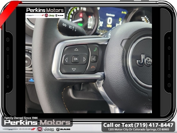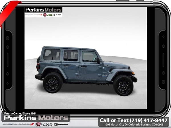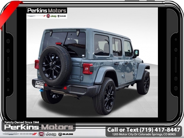 Factory MSRP: $65,735 $12,500 off MSRP! Priced below KBB Fair Purchase Price! Anvil Clear Coat 2024 Jeep Wrangler Sahara 4xe 4WD 8-Speed Automatic 2.0L I4 DOHC<br>2.0L I4 DOHC.<br>Check us out at www.perkinsmotors.com to see our specials! Since opening our doors in 1944, we’ve been proud to serve Colorado Springs, CO, and the surrounding areas of Pueblo, Castle Rock and Denver, CO. Throughout this time of being family owned for 80 years, we’ve maintained a firm commitment to our customers: to offer a wide selection of New Chrysler, Dodge, Fiat, Jeep, and Ram vehicles and quality pre-owned vehicles, and provide a quick, no-hassle car-buying process that ensures everyone drives off the lot satisfied with their purchase.<br><br>Quick Order Package 29P Sahara, Safety Group (Auto High Beam Headlamp Control, Blind Spot & Cross Path Detection, and ParkSense Rear Park Assist System), 2.0L I4 DOHC, 12.3 Touchscreen Display, 3.73 Rear Axle Ratio, 4-Wheel Disc Brakes, 4G LTE Wi-Fi Hot Spot, 8 Speakers, ABS brakes, Air Conditioning, Alloy wheels, AM/FM radio: SiriusXM, Apple CarPlay, Apple CarPlay/Android Auto, Automatic temperature control, Body Color 3-Piece Hard Top, Brake assist, Cloth Low-Back Bucket Seats, Compass, Connectivity - US/Canada, Cruise Control, Delay-off headlights, Disassociated Touchscreen Display, Driver door bin, Driver vanity mirror, Dual front impact airbags, Dual front side impact airbags, Electronic Stability Control, Emergency communication system: Jeep Connect, Freedom Panel Storage Bag, Front anti-roll bar, Front Bucket Seats, Front Center Armrest w/Storage, Front dual zone A/C, Front fog lights, Front License Plate Bracket, Front reading lights, Fully automatic headlights, Google Android Auto, Heated door mirrors, Heated front seats, Heated steering wheel, Illuminated entry, Integrated Center Stack Radio, Integrated roll-over protection, Integrated Voice Command w/Bluetooth, Jeep Trail Rated Kit, Low tire pressure warning, MOPAR All-Weather Floor Mats, No Soft Top, Occupant sensing airbag, Outside temperature display, Overhead airbag, Panic alarm, ParkView Rear Back-Up Camera, Passenger door bin, Passenger vanity mirror, Power door mirrors, Power steering, Power windows, Radio data system, Radio: Uconnect 5 w/12.3 Display, Rear anti-roll bar, Rear reading lights, Rear seat center armrest, Rear Window Defroster, Rear Window Wiper/Washer, Remote keyless entry, Security system, Split folding rear seat, Sport Suspension, Steering wheel mounted audio controls, Tachometer, Telescoping steering wheel, Tilt steering wheel, Traction control, Trip computer, Variably intermittent wipers, Voltmeter, and Wheels: 20 x 8 Painted Black Aluminum. Sale price includes all manufacture's incentives and dealer discounts. Sale price not available on lease or compatible with special APR. $500 - 2024 National Presidents Day Bonus Cash . Exp. 03/03/2025 $7500 - 2024 National Retail Consumer Cash . Exp. 03/03/2025