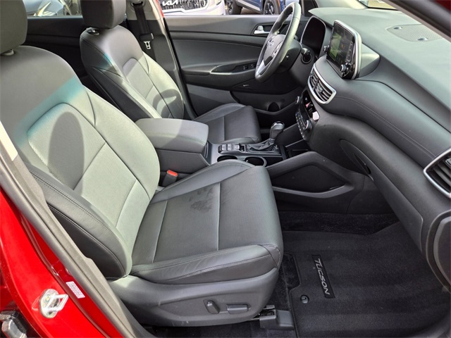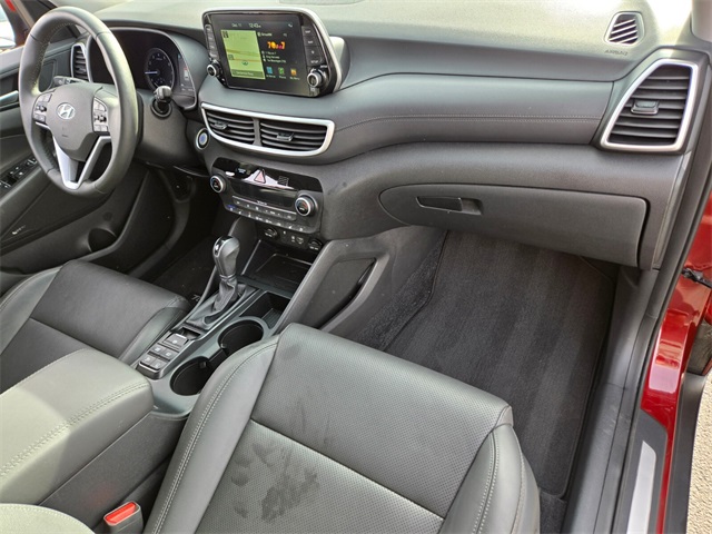 Priced below KBB Fair Purchase Price!Odometer is 29065 miles below market average!21/26 City/Highway MPGGemstone Red 2020 Hyundai Tucson Ultimate AWD 6-Speed Automatic with Shiftronic 2.4L I4 DGI DOHC 16V AWD.If you don't drive here, you can't save here!Price may not include recon fee. Cargo Package (Cargo Net, First Aid Kit, and Reversible Cargo Tray), Option Group 01, AWD, 18" x 7.0J Alloy Wheels, 4-Wheel Disc Brakes, 8 Speakers, ABS brakes, Air Conditioning, Alloy wheels, AM/FM radio: SiriusXM, Apple CarPlay & Android Auto, Auto High-beam Headlights, Auto-dimming Rear-View mirror, Automatic temperature control, Axle Ratio: 3.195, Brake assist, Bumpers: body-color, Carpeted Floor Mats, Delay-off headlights, Driver door bin, Driver vanity mirror, Dual front impact airbags, Dual front side impact airbags, Electronic Stability Control, Emergency communication system, Exterior Parking Camera Rear, Four wheel independent suspension, Front anti-roll bar, Front Bucket Seats, Front Center Armrest, Front dual zone A/C, Front fog lights, Front reading lights, Fully automatic headlights, Garage door transmitter: HomeLink, Heated & Ventilated Front Bucket Seats, Heated door mirrors, Heated front seats, Heated rear seats, Heated steering wheel, Illuminated entry, Leather Seat Trim, Leather Shift Knob, Low tire pressure warning, Navigation System, Occupant sensing airbag, Outside temperature display, Overhead airbag, Overhead console, Panic alarm, Passenger door bin, Passenger vanity mirror, Power door mirrors, Power driver seat, Power Liftgate, Power moonroof, Power passenger seat, Power steering, Power windows, Radio: Infinity Audio System w/Navigation, Rain sensing wipers, Rear anti-roll bar, Rear Bumper Applique, Rear reading lights, Rear seat center armrest, Rear window defroster, Rear window wiper, Remote keyless entry, Roof rack: rails only, Security system, Speed control, Speed-sensing steering, Split folding rear seat, Spoiler, Steering wheel mounted audio controls, Tachometer, Telescoping steering wheel, Tilt steering wheel, Traction control, Trip computer, Turn signal indicator mirrors, Variably intermittent wipers, Ventilated front seats, and Wheel Locks.