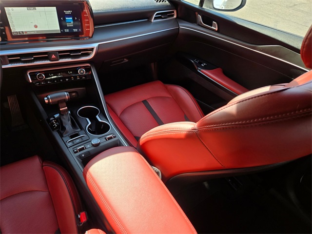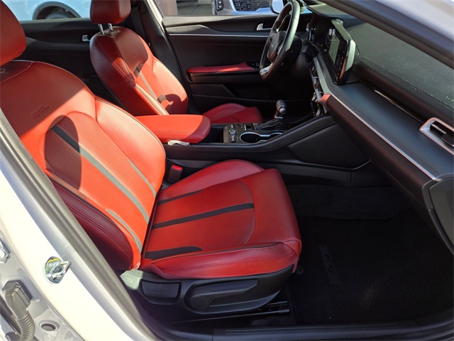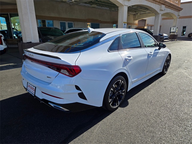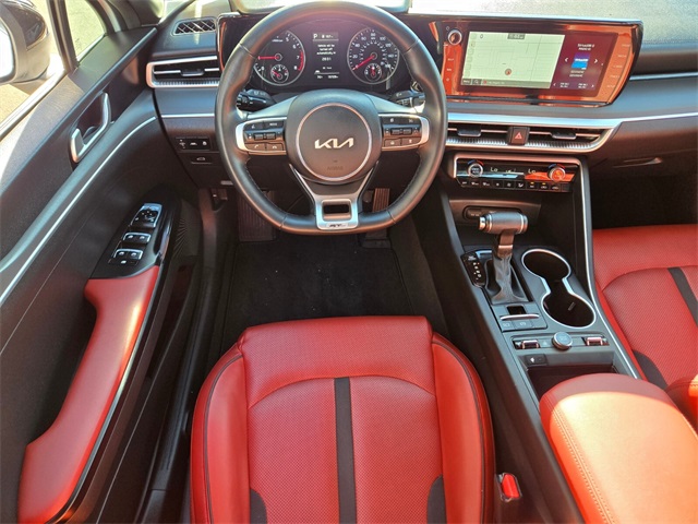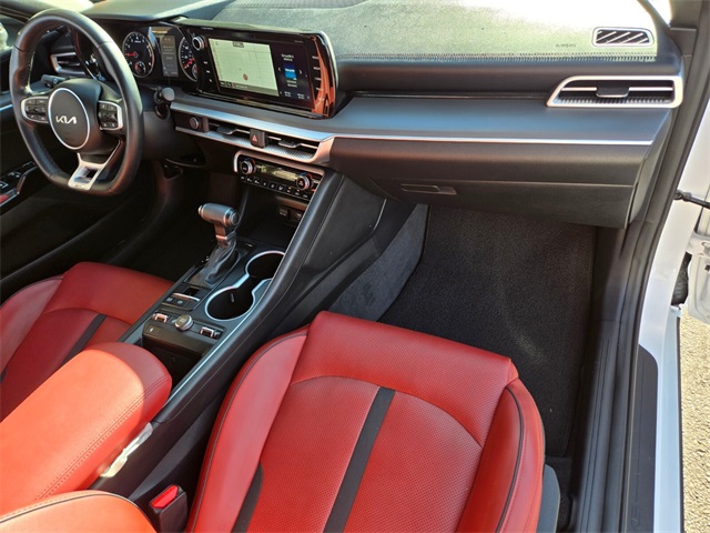 CARFAX One-Owner.Priced below KBB Fair Purchase Price!Odometer is 4426 miles below market average!Glacial White Pearl 2023 Kia K5 GT-Line AWD 8-Speed Automatic 1.6L I4 DGI Turbocharged DOHC 16V LEV3-ULEV70 180hpIf you don't drive here, you can't save here!Price may not include recon fee. GT-Line Premium Package (Smart Cruise Control w/Stop & Go), GT-Line Red Interior Package, 4-Wheel Disc Brakes, 6 Speakers, ABS brakes, Air Conditioning, Alloy wheels, AM/FM radio: SiriusXM, Apple CarPlay & Android Auto, Auto High-beam Headlights, Automatic temperature control, Brake assist, Bumpers: body-color, Carpeted Floor Mats, Cloth/SynTex Seat Trim, Delay-off headlights, Driver door bin, Driver vanity mirror, Dual front impact airbags, Dual front side impact airbags, Electronic Stability Control, Four wheel independent suspension, Front anti-roll bar, Front Bucket Seats, Front Center Armrest, Front dual zone A/C, Front fog lights, Front reading lights, Fully automatic headlights, Heated door mirrors, Illuminated entry, Knee airbag, Low tire pressure warning, Navigation System, Occupant sensing airbag, Outside temperature display, Overhead airbag, Overhead console, Panic alarm, Passenger door bin, Passenger vanity mirror, Power door mirrors, Power driver seat, Power steering, Power windows, Radio data system, Radio: AM/FM/MP3 Audio System, Rear anti-roll bar, Rear seat center armrest, Rear side impact airbag, Rear window defroster, Remote keyless entry, Security system, Speed control, Speed-sensing steering, Split folding rear seat, Spoiler, Sport steering wheel, Steering wheel mounted audio controls, Tachometer, Telescoping steering wheel, Tilt steering wheel, Traction control, Trip computer, Turn signal indicator mirrors, Variably intermittent wipers, and Wheels: 18" Gloss Black Machined Finish Alloy.