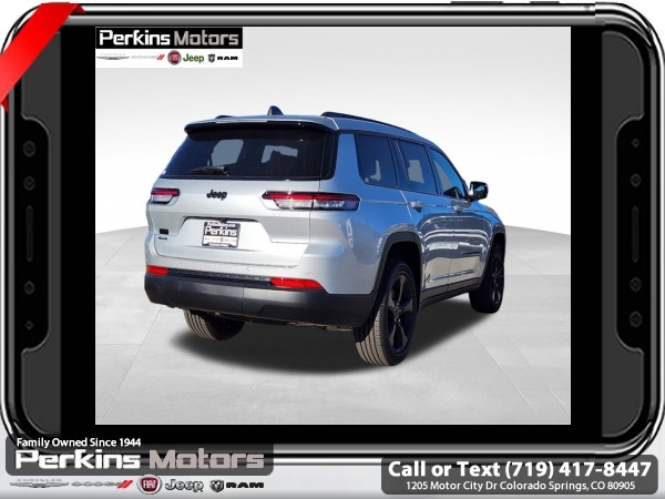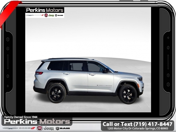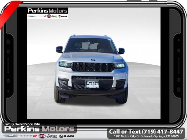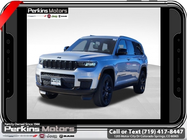 Factory MSRP: $51,170 $7,737 off MSRP! Silver Zynith 2025 Jeep Grand Cherokee L Laredo 4WD 8-Speed Automatic 3.6L V6 24V VVT<br><br>Check us out at www.perkinsmotors.com to see our specials! Since opening our doors in 1944, we’ve been proud to serve Colorado Springs, CO, and the surrounding areas of Pueblo, Castle Rock and Denver, CO. Throughout this time of being family owned for 80 years, we’ve maintained a firm commitment to our customers: to offer a wide selection of New Chrysler, Dodge, Fiat, Jeep, and Ram vehicles and quality pre-owned vehicles, and provide a quick, no-hassle car-buying process that ensures everyone drives off the lot satisfied with their purchase.<br><br>Trailer Tow Package (180 Amp Alternator, 7 & 4 Pin Wiring Harness, Automatic Headlamp Leveling System, Class IV Receiver Hitch, Dual Exhaust Tips, Heavy-Duty Engine Cooling, Rear Load Leveling Suspension, and Trailer Hitch Zoom), 3.45 Rear Axle Ratio, 3rd row seats: split-bench, 4-Wheel Disc Brakes, 6 Speakers, ABS brakes, Air Conditioning, Alloy wheels, AM/FM radio: SiriusXM, Anti-whiplash front head restraints, Automatic temperature control, Brake assist, Bumpers: body-color, Cloth Seats, Compass, Cruise Control, Delay-off headlights, Driver door bin, Driver vanity mirror, Dual front impact airbags, Dual front side impact airbags, Electronic Stability Control, Emergency communication system, Four wheel independent suspension, Front anti-roll bar, Front Bucket Seats, Front Center Armrest w/Storage, Front dual zone A/C, Front License Plate Bracket, Front reading lights, Fully automatic headlights, Heated door mirrors, Illuminated entry, Knee airbag, Low tire pressure warning, Manual Fold Seatbacks, Model Year Tracking, Normal Duty Suspension, Occupant sensing airbag, Outside temperature display, Overhead airbag, Overhead console, Panic alarm, ParkView Rear Back-Up Camera, Passenger door bin, Passenger vanity mirror, Power door mirrors, Power driver seat, Power steering, Power windows, Radio data system, Radio: Uconnect 5 w/8.4 Display, Rear air conditioning, Rear anti-roll bar, Rear reading lights, Rear window defroster, Rear window wiper, Reclining 3rd row seat, Remote keyless entry, Security system, Speed-Sensitive Wipers, Split folding rear seat, Spoiler, Steering wheel mounted audio controls, Tachometer, Telescoping steering wheel, Tilt steering wheel, Traction control, Trip computer, Variably intermittent wipers, Voltmeter, Wheels: 18 x 8.0 Fully Painted Aluminum, and Wheels: 20 x 8.5 Gloss Black Painted Aluminum. Sale price includes all manufacture's incentives and dealer discounts. Sale price not available on lease or compatible with special APR. $1000 - 2025 West BC SFS Bonus Cash . Exp. 06/30/2025