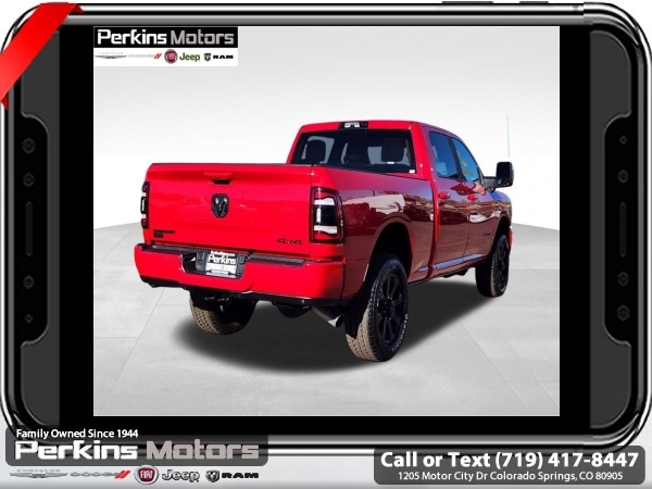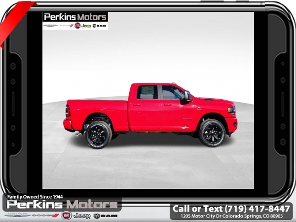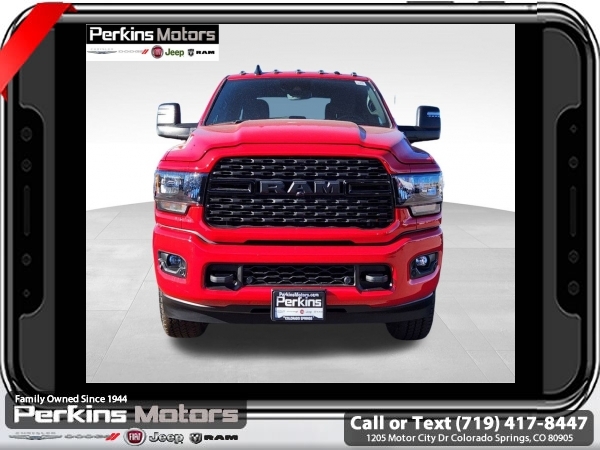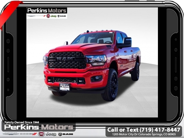 Factory MSRP: $82,145 $15,755 off MSRP! Flame Red Clearcoat 2024 Ram 2500 Big Horn 4WD 6-Speed Automatic Cummins 6.7L I6 Turbodiesel<br><br>Check us out at www.perkinsmotors.com to see our specials! Since opening our doors in 1944, we’ve been proud to serve Colorado Springs, CO, and the surrounding areas of Pueblo, Castle Rock and Denver, CO. Throughout this time of being family owned for 80 years, we’ve maintained a firm commitment to our customers: to offer a wide selection of New Chrysler, Dodge, Fiat, Jeep, and Ram vehicles and quality pre-owned vehicles, and provide a quick, no-hassle car-buying process that ensures everyone drives off the lot satisfied with their purchase.<br><br>Bed Utility Group (LED Bed Lighting, MOPAR Deployable Bed Step, and MOPAR Spray In Bedliner), Cold Weather Group (Engine Block Heater and MOPAR Winter Front Grille Cover), Heated Seats & Wheel Group (Heated Front Seats, Heated Steering Wheel, Leather Wrapped Steering Wheel, and Steering Wheel Mounted Audio Controls), Level 1 Equipment Group (2 Way Rear Headrest Seat, 2nd Row In Floor Storage Bins, 4 Way Front Headrests, 40/20/40 Split Bench Seat, 4G LTE Wi-Fi Hot Spot, 8.4 Touchscreen Display, Apple CarPlay, Auto Power-Folding Mirrors, Big Horn IP Badge, Black Exterior Mirrors, Bluetooth Handsfree Phone & Audio, Center Hub, Connectivity - US/Canada, Dual Glove Boxes, Exterior Mirrors Courtesy Lamps, Exterior Mirrors w/Heating Element, Exterior Mirrors w/Supplemental Signals, Foam Bottle Insert (Door Trim Panel), Footwell Courtesy Lamp, For Details, Visit DriveUconnect.com, For More Info, Call 800-643-2112, Forward & Reverse Utility Lights, Front Armrest w/Cupholders, Front Center Seat Cushion Storage, Front Fog Lamps, Front Seat Back Map Pockets, Global Telematics Box Module (TBM), Glove Box Lamp, Google Android Auto, GPS Antenna Input, Integrated Center Stack Radio, Integrated Voice Command w/Bluetooth, Locking Lower Glove Box, Manual Adjust 4-Way Front Passenger Seat, Mirror Running Lights, Power 2-Way Driver Lumbar Adjust, Power Adjust 8-Way Driver Seat, Power Adjust Mirrors, Power Adjustable Convex Aux Mirrors, Power Heated Fold Telescope Mirrors, Power Telescoping Mirrors, Rear 60/40 Folding Seat, Rear Dome w/On/Off Switch Lamp, Remote USB Port - Charge Only, Selectable Tire Fill Alert, SiriusXM Radio Service, SiriusXM Satellite Radio, Storage Tray, and Wheels: 18 x 8.0 Polished Aluminum), Night Edition (Black Exterior Truck Badging, Black Headlamp Bezels, Black Interior Accents, Black Ram Head Tailgate Badge, Black Tail Lamp Bezels, Black Wheel Center Hub, Body Color Door Handles, Body Color Grille Surround, Gloss Black Nostrils/MIC Black Grille, Painted Front Bumper, Painted Rear Bumper, ParkSense Front/Rear Park Assist System, and Wheels: 20 x 8.0 Black Painted Aluminum), Off Road Package (Front Performance Tuned Shock Absorbers, Hill Descent Control, Rear Performance Tuned Shock Absorbers, and Tow Hooks), Quick Order Package 2HZ Big Horn, Safety Group (Adaptive Cruise Control w/Stop, Adaptive Steering System, Auto High Beam Headlamp Control, Auto-Dimming Rear-View Mirror, Full Speed Forward Collision Warning Plus, Lane Keep Assist, and Rain Sensitive Windshield Wipers), Towing Technology Group (Blind Spot & Cross Path Detection, CTR Stop Lamp w/Cargo View Camera, LED Tail Lamps, Surround View Camera System, and Trailer Reverse Guidance), 115V Auxiliary Front Power Outlet, 220 Amp Alternator, 3.73 Axle Ratio, 4-Wheel Disc Brakes, 400W Inverter, 5th Wheel/Gooseneck Towing Prep Group, 9 Alpine Speakers w/Subwoofer, ABS brakes, Active Noise Control System, Air Conditioning ATC w/Dual Zone Control, Ale Sale price includes all manufacture's incentives and dealer discounts. Sale price not available on lease or compatible with special APR. $1000 - 2024West BC Trade Assist Bonus Cash. Exp. 06/30/2025 $1500 - 2024 National Stellantis Loyalty Bonus Cash . Exp. 06/30/2025 $6726 - 2024 National Minimum Employee Pricing Discount . Exp. 0