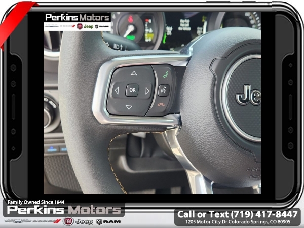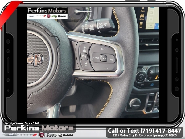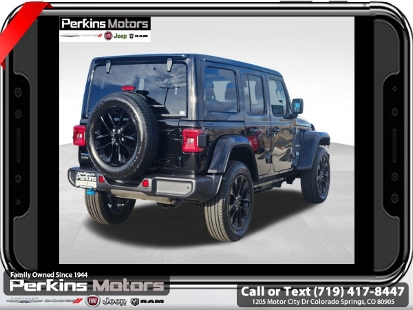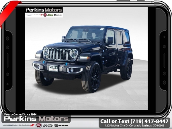 Factory MSRP: $65,735 $12,500 off MSRP! Priced below KBB Fair Purchase Price! Black Clearcoat 2024 Jeep Wrangler Sahara 4xe 4WD 8-Speed Automatic 2.0L I4 DOHC<br>2.0L I4 DOHC.<br>Check us out at www.perkinsmotors.com to see our specials! Since opening our doors in 1944, we’ve been proud to serve Colorado Springs, CO, and the surrounding areas of Pueblo, Castle Rock and Denver, CO. Throughout this time of being family owned for 80 years, we’ve maintained a firm commitment to our customers: to offer a wide selection of New Chrysler, Dodge, Fiat, Jeep, and Ram vehicles and quality pre-owned vehicles, and provide a quick, no-hassle car-buying process that ensures everyone drives off the lot satisfied with their purchase.<br><br>Quick Order Package 29P Sahara, Safety Group (Auto High Beam Headlamp Control, Blind Spot & Cross Path Detection, and ParkSense Rear Park Assist System), 2.0L I4 DOHC, 12.3 Touchscreen Display, 3.73 Rear Axle Ratio, 4-Wheel Disc Brakes, 4G LTE Wi-Fi Hot Spot, 8 Speakers, ABS brakes, Air Conditioning, Alloy wheels, AM/FM radio: SiriusXM, Apple CarPlay, Apple CarPlay/Android Auto, Automatic temperature control, Body Color 3-Piece Hard Top, Brake assist, Cloth Low-Back Bucket Seats, Compass, Connectivity - US/Canada, Cruise Control, Delay-off headlights, Disassociated Touchscreen Display, Driver door bin, Driver vanity mirror, Dual front impact airbags, Dual front side impact airbags, Electronic Stability Control, Emergency communication system: Jeep Connect, Freedom Panel Storage Bag, Front anti-roll bar, Front Bucket Seats, Front Center Armrest w/Storage, Front dual zone A/C, Front fog lights, Front License Plate Bracket, Front reading lights, Fully automatic headlights, Google Android Auto, Heated door mirrors, Heated front seats, Heated steering wheel, Illuminated entry, Integrated Center Stack Radio, Integrated roll-over protection, Integrated Voice Command w/Bluetooth, Jeep Trail Rated Kit, Low tire pressure warning, MOPAR All-Weather Floor Mats, No Soft Top, Occupant sensing airbag, Outside temperature display, Overhead airbag, Panic alarm, ParkView Rear Back-Up Camera, Passenger door bin, Passenger vanity mirror, Power door mirrors, Power steering, Power windows, Radio data system, Radio: Uconnect 5 w/12.3 Display, Rear anti-roll bar, Rear reading lights, Rear seat center armrest, Rear Window Defroster, Rear Window Wiper/Washer, Remote keyless entry, Security system, Split folding rear seat, Sport Suspension, Steering wheel mounted audio controls, Tachometer, Telescoping steering wheel, Tilt steering wheel, Traction control, Trip computer, Variably intermittent wipers, Voltmeter, and Wheels: 20 x 8 Painted Black Aluminum. Sale price includes all manufacture's incentives and dealer discounts. Sale price not available on lease or compatible with special APR. $500 - 2024 National Presidents Day Bonus Cash . Exp. 03/03/2025 $7500 - 2024 National Retail Consumer Cash . Exp. 03/03/2025