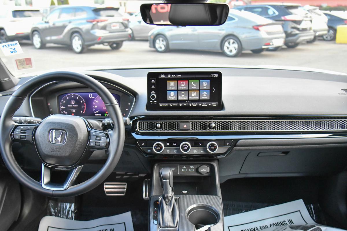 NACTOY 2022 North American Car of the Year. Only 11,304 Miles! Boasts 37 Highway MPG and 30 City MPG! This Honda Civic Hatchback boasts a Intercooled Turbo Regular Unleaded I-4 1.5 L/91 engine powering this Variable transmission. Wheels: 18 Alloy, Wheels w/Machined w/Painted Accents Accents, Voice Activated Dual Zone Front Automatic Air Conditioning.*This Honda Civic Hatchback Features the Following Options *Vehicle Stability Assist (VSA) Electronic Stability Control (ESC), Turn-By-Turn Navigation Directions, Trip Computer, Transmission: Continuously Variable -inc: dual-mode paddle shifters, LED gear position indicators and 3-mode drive system (econ, normal, sport), Traffic Jam Assist, Tires: 235/40R18 91W AS, Tailgate/Rear Door Lock Included w/Power Door Locks, Strut Front Suspension w/Coil Springs, Steel Spare Wheel, Side Impact Beams.