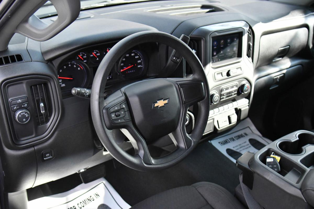 This Chevrolet Silverado 1500 has a strong Turbocharged Gas I4 2.7L/166 engine powering this Automatic transmission. WHEELS, 20 X 9 (50.8 CM X 22.9 CM) BRIGHT SILVER PAINTED ALUMINUM (STD), TRANSMISSION, 8-SPEED AUTOMATIC, ELECTRONICALLY CONTROLLED with overdrive and tow/haul mode. Includes Cruise Grade Braking and Powertrain Grade Braking (STD), TIRES, 275/60R20 ALL-SEASON, BLACKWALL (STD).*This Chevrolet Silverado 1500 Comes Equipped with These Options *SEATS, FRONT 40/20/40 SPLIT-BENCH with covered armrest storage and under-seat storage (lockable) (STD), REAR AXLE, 3.42 RATIO, NOT EQUIPPED WITH USB PORTS, REAR, SEE DEALER FOR DETAILS (Beginning with the start of production certain vehicles will be forced to include (RFO) Not Equipped with USB ports rear.), NOT EQUIPPED WITH STEERING COLUMN LOCK, SEE DEALER FOR DETAILS (Certain vehicles built on or after 4-4-2022 will be forced to include (R7N) Not Equipped with Steering Column Lock, which removes Steering Column Lock.), LPO, WHEEL LOCKS, SET OF 4 (dealer-installed), LPO, UNDERSEAT STORAGE (dealer-installed), LICENSE PLATE KIT, FRONT, JET BLACK, CLOTH SEAT TRIM, ENGINE, 2.7L TURBO HIGH-OUTPUT (310 hp [231 kW] @ 5600 rpm, 430 lb-ft of torque [583 Nm] @ 3000 rpm) (STD), CUSTOM PREFERRED EQUIPMENT GROUP includes standard equipment.