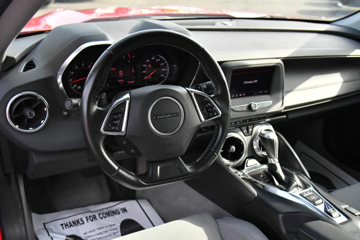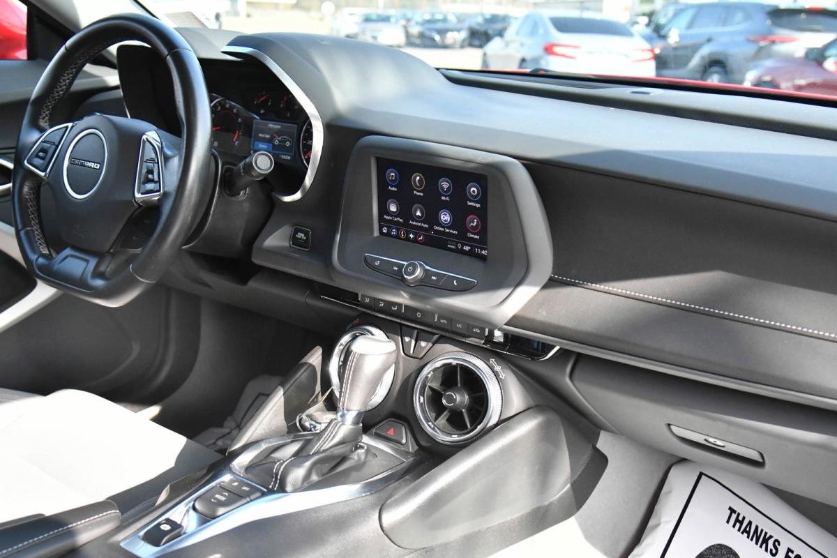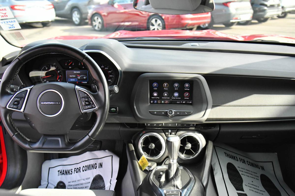 Delivers 30 Highway MPG and 22 City MPG! This Chevrolet Camaro boasts a Turbocharged Gas I4 2.0L/122 engine powering this Automatic transmission. WHEELS, 18 (45.7 CM) SILVER-PAINTED ALUMINUM (STD), TRANSMISSION, AUTOMATIC includes transmission oil cooler and (BTV) remote vehicle starter system, TRANSMISSION, 8-SPEED.*This Chevrolet Camaro Features the Following Options *TIRES, 245/50R18, BLACKWALL, ALL-SEASON includes (KTI) tire inflator kit (STD), SEATS, CLOTH FRONT SPORT BUCKET (STD), REMOTE VEHICLE STARTER SYSTEM, RED HOT, REAR AXLE, 3.27 RATIO, PADDLE-SHIFT MANUAL CONTROLS, MEDIUM ASH GRAY, SEAT TRIM, LICENSE PLATE BRACKET, FRONT, ENGINE, 2.0L TURBO, 4-CYLINDER, SIDI, VVT (275 hp [205 kW] @ 5600 rpm, 295 lb-ft of torque [398.3 N-m] @ 3000-4500 rpm) (STD), DELETED 3 YEARS OF REMOTE ACCESS..