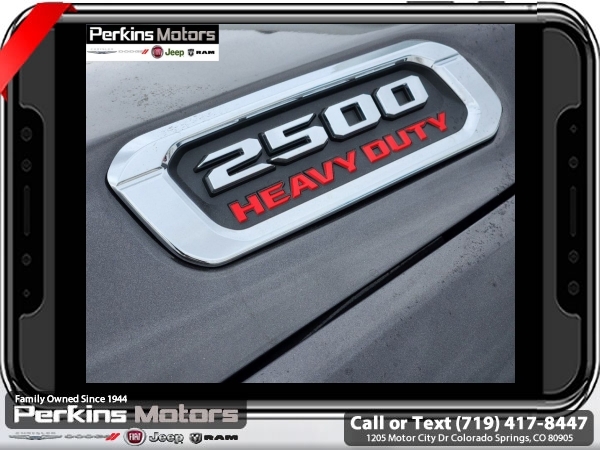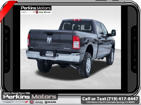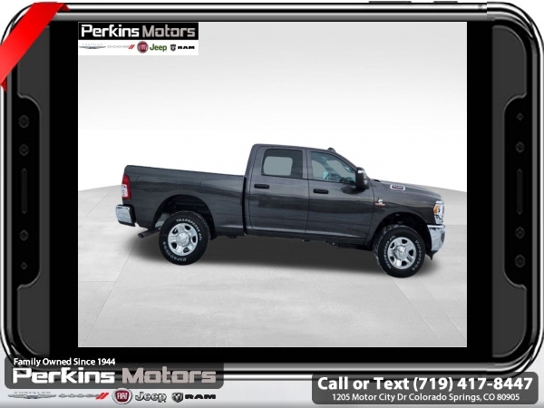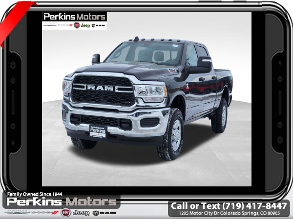 Factory MSRP: $68,365 $13,304 off MSRP! Priced below KBB Fair Purchase Price! Granite Crystal Metallic Clearcoat 2024 Ram 2500 Tradesman 4WD 6-Speed Automatic Cummins 6.7L I6 Turbodiesel<br><br>Check us out at www.perkinsmotors.com to see our specials! Since opening our doors in 1944, we’ve been proud to serve Colorado Springs, CO, and the surrounding areas of Pueblo, Castle Rock and Denver, CO. Throughout this time of being family owned for 80 years, we’ve maintained a firm commitment to our customers: to offer a wide selection of New Chrysler, Dodge, Fiat, Jeep, and Ram vehicles and quality pre-owned vehicles, and provide a quick, no-hassle car-buying process that ensures everyone drives off the lot satisfied with their purchase.<br><br>Chrome Appearance Group (Bright Front Bumper, Bright Rear Bumper, Center Hub, Chrome Grille Surround, Chrome Headlamp Bezels, Matte Black Mesh Grille w/Chrome, and Wheels: 18 x 8.0 Steel Chrome Clad), Cold Weather Group (Engine Block Heater and MOPAR Winter Front Grille Cover), Protection Group (Tow Hooks), Quick Order Package 2HA Tradesman, Snow Chief Group (Anti-Spin Differential Rear Axle, Auxiliary Switches Prep, Clearance Lamps, Dash Pass Thru Wire Circuits, and I/P Mounted Auxiliary Switches), Tradesman Level 2 Equipment Group (2 Way Rear Headrest Seat, 4 Way Front Headrests, 40/20/40 Split Bench Seat, Black Exterior Mirrors, Cloth 40/20/40 Bench Seat, Exterior Mirrors Courtesy Lamps, Exterior Mirrors w/Heating Element, Exterior Mirrors w/Supplemental Signals, For More Info, Call 800-643-2112, Front Armrest w/Cupholders, Manual Adjust 4-Way Driver Seat, Manual Adjust 4-Way Front Passenger Seat, Manual Folding Exterior Mirrors, Manual Telescoping Mirrors, Mirror Running Lights, Power Adjust Mirrors, Power Adjustable Convex Aux Mirrors, Power Heated Folding Telescope Mirrors, Rear Folding Seat, Rear Power Sliding Window, Rear Window Defroster, Remote USB Port - Charge Only, SiriusXM Radio Service, SiriusXM Satellite Radio, and Storage Tray), 115V Auxiliary Front Power Outlet, 17 x 7.5 Steel Styled Wheels, 220 Amp Alternator, 3.73 Axle Ratio, 4-Wheel Disc Brakes, 400W Inverter, 6 Speakers, ABS brakes, Active Noise Control System, Air Conditioning, AM/FM radio, Brake assist, Carpet Floor Covering, Compass, Cruise Control, Delay-off headlights, Driver door bin, Dual Alternators Rated At 440 Amps, Dual front impact airbags, Dual front side impact airbags, Electric Shift-On-The-Fly Transfer Case, Electronic Stability Control, Electronically Controlled Throttle, Emergency communication system: SiriusXM Guardian, Exterior 115V AC Outlet, Front & Rear Floor Mats, Front anti-roll bar, Front Center Armrest w/Storage, Front License Plate Bracket, Front reading lights, Fully automatic headlights, Global Telematics Box Module (TBM), GPS Antenna Input, Heavy Duty Vinyl 40/20/40 Split Bench Seat, Illuminated entry, Integrated Voice Command w/Bluetooth, Low tire pressure warning, Occupant sensing airbag, Outside temperature display, Overhead airbag, Overhead console, ParkSense Rear Park Assist System, ParkView Rear Back-Up Camera, Passenger door bin, Passenger vanity mirror, Power steering, Power windows, Radio data system, Radio: Uconnect 3 w/5 Display, Rear anti-roll bar, Rear step bumper, Rear Wheelhouse Liners, Tachometer, Tilt steering wheel, Tip Start, Traction control, Trailer Brake Control, Trailer Light Check, Variably intermittent wipers, and Voltmeter. Sale price includes all manufacture's incentives and dealer discounts. Sale price not available on lease or compatible with special APR. $1000 - 2024West BC Trade Assist Bonus Cash. Exp. 06/02/2025 $1500 - 2024 National Stellantis Loyalty Bonus Cash . Exp. 06/02/2025 $6019 - 2024 National Minimum Employee Pricing Discount . Exp. 06/02/2025
