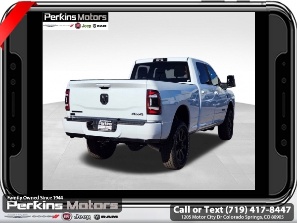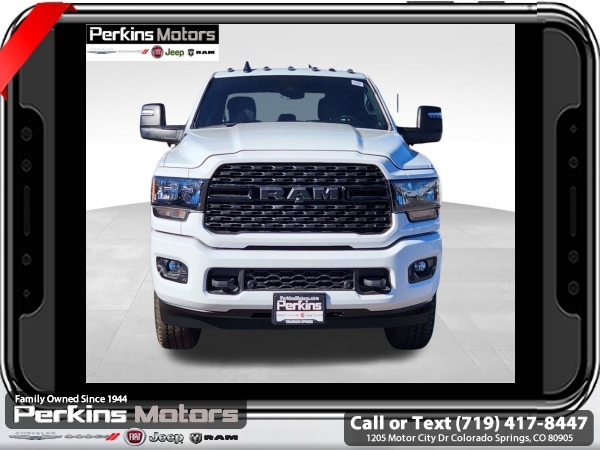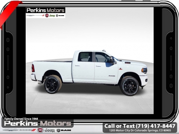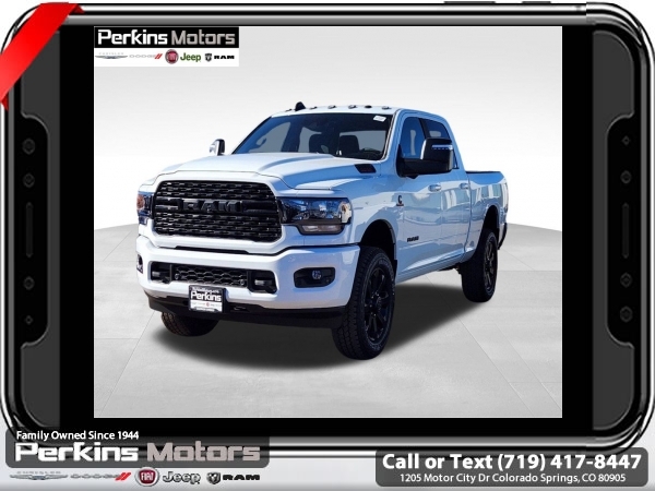 Factory MSRP: $82,145 $15,344 off MSRP! Bright White Clearcoat 2024 Ram 2500 Big Horn 4WD 6-Speed Automatic Cummins 6.7L I6 Turbodiesel<br><br>Check us out at www.perkinsmotors.com to see our specials! Since opening our doors in 1944, we’ve been proud to serve Colorado Springs, CO, and the surrounding areas of Pueblo, Castle Rock and Denver, CO. Throughout this time of being family owned for 80 years, we’ve maintained a firm commitment to our customers: to offer a wide selection of New Chrysler, Dodge, Fiat, Jeep, and Ram vehicles and quality pre-owned vehicles, and provide a quick, no-hassle car-buying process that ensures everyone drives off the lot satisfied with their purchase.<br><br>Bed Utility Group (LED Bed Lighting, MOPAR Deployable Bed Step, and MOPAR Spray In Bedliner), Cold Weather Group (Engine Block Heater and MOPAR Winter Front Grille Cover), Heated Seats & Wheel Group (Heated Front Seats, Heated Steering Wheel, Leather Wrapped Steering Wheel, and Steering Wheel Mounted Audio Controls), Level 1 Equipment Group (2 Way Rear Headrest Seat, 2nd Row In Floor Storage Bins, 4 Way Front Headrests, 40/20/40 Split Bench Seat, 4G LTE Wi-Fi Hot Spot, 8.4 Touchscreen Display, Apple CarPlay, Auto Power-Folding Mirrors, Big Horn IP Badge, Black Exterior Mirrors, Bluetooth Handsfree Phone & Audio, Center Hub, Connectivity - US/Canada, Dual Glove Boxes, Exterior Mirrors Courtesy Lamps, Exterior Mirrors w/Heating Element, Exterior Mirrors w/Supplemental Signals, Foam Bottle Insert (Door Trim Panel), Footwell Courtesy Lamp, For Details, Visit DriveUconnect.com, For More Info, Call 800-643-2112, Forward & Reverse Utility Lights, Front Armrest w/Cupholders, Front Center Seat Cushion Storage, Front Fog Lamps, Front Seat Back Map Pockets, Global Telematics Box Module (TBM), Glove Box Lamp, Google Android Auto, GPS Antenna Input, Integrated Center Stack Radio, Integrated Voice Command w/Bluetooth, Locking Lower Glove Box, Manual Adjust 4-Way Front Passenger Seat, Mirror Running Lights, Power 2-Way Driver Lumbar Adjust, Power Adjust 8-Way Driver Seat, Power Adjust Mirrors, Power Adjustable Convex Aux Mirrors, Power Heated Fold Telescope Mirrors, Power Telescoping Mirrors, Rear 60/40 Folding Seat, Rear Dome w/On/Off Switch Lamp, Remote USB Port - Charge Only, Selectable Tire Fill Alert, SiriusXM Radio Service, SiriusXM Satellite Radio, Storage Tray, and Wheels: 18 x 8.0 Polished Aluminum), Night Edition (Black Exterior Truck Badging, Black Headlamp Bezels, Black Interior Accents, Black Ram Head Tailgate Badge, Black Tail Lamp Bezels, Black Wheel Center Hub, Body Color Door Handles, Body Color Grille Surround, Gloss Black Nostrils/MIC Black Grille, Painted Front Bumper, Painted Rear Bumper, ParkSense Front/Rear Park Assist System, and Wheels: 20 x 8.0 Black Painted Aluminum), Off Road Package (Front Performance Tuned Shock Absorbers, Hill Descent Control, Rear Performance Tuned Shock Absorbers, and Tow Hooks), Quick Order Package 2HZ Big Horn, Safety Group (Adaptive Cruise Control w/Stop, Adaptive Steering System, Auto High Beam Headlamp Control, Auto-Dimming Rear-View Mirror, Full Speed Forward Collision Warning Plus, Lane Keep Assist, and Rain Sensitive Windshield Wipers), Towing Technology Group (Blind Spot & Cross Path Detection, CTR Stop Lamp w/Cargo View Camera, LED Tail Lamps, Surround View Camera System, and Trailer Reverse Guidance), 115V Auxiliary Front Power Outlet, 220 Amp Alternator, 3.73 Axle Ratio, 4-Wheel Disc Brakes, 400W Inverter, 5th Wheel/Gooseneck Towing Prep Group, 6 Speakers, 9 Alpine Speakers w/Subwoofer, ABS brakes, Active Noise Control System, Air Conditioning, Air Conditioning ATC w/Dual Zone Control, Alexa Built-In, All R1 High Radios, All Radio Equipped Vehic Sale price includes all manufacture's incentives and dealer discounts. Sale price not available on lease or compatible with special APR. 10% Msrp - 2024 West BC Standalone 10% Below MSRP. Exp. 04/30/2025 Price includes $870 in dealer added a