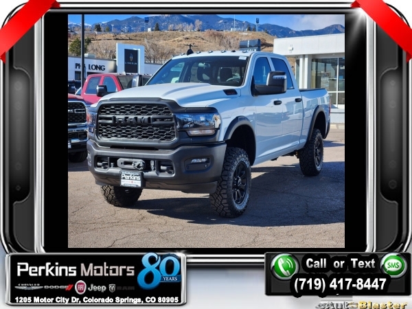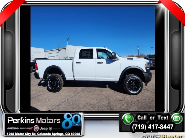Factory MSRP: $64,615 $12,461 off MSRP! Bright White Clearcoat 2024 Ram 2500 Tradesman 4WD 8-Speed Automatic 6.4L V8<br><br>Check us out at www.perkinsmotors.com to see our specials! Since opening our doors in 1944, we’ve been proud to serve Colorado Springs, CO, and the surrounding areas of Pueblo, Castle Rock and Denver, CO. Throughout this time of being family owned for 80 years, we’ve maintained a firm commitment to our customers: to offer a wide selection of New Chrysler, Dodge, Fiat, Jeep, and Ram vehicles and quality pre-owned vehicles, and provide a quick, no-hassle car-buying process that ensures everyone drives off the lot satisfied with their purchase.<br><br>Power Wagon Package (4.10 Axle Ratio, Base Engine Controller, Black Wheel Center Hub, Black Wheel Flares, Front Disconnecting Stabilizer Bar, Front Electric Winch, Front LED Fog Lamps, Front Performance Tuned Shock Absorbers, Fuel Tank Skid Plate Shield, Hill Descent Control, ParkSense Front/Rear Park Assist System, Powder Coated Front Bumper, Powder Coated Rear Bumper, Raised Ride Height, RAM Articulink Suspension, Rear Performance Tuned Shock Absorbers, Rear Wheelhouse Liners, Tow Hooks, Tru-Lok Front & Rear Axles, and Wheels: 17 x 8.0 Black Painted Aluminum), Quick Order Package 2GA Tradesman, Tradesman Level 2 Equipment Group (2 Way Rear Headrest Seat, 4 Way Front Headrests, 40/20/40 Split Bench Seat, Black Exterior Mirrors, Cloth 40/20/40 Bench Seat, Exterior Mirrors Courtesy Lamps, Exterior Mirrors w/Heating Element, Exterior Mirrors w/Supplemental Signals, For More Info, Call 800-643-2112, Front Armrest w/Cupholders, Manual Adjust 4-Way Driver Seat, Manual Adjust 4-Way Front Passenger Seat, Manual Folding Exterior Mirrors, Manual Telescoping Mirrors, Mirror Running Lights, Power Adjust Mirrors, Power Adjustable Convex Aux Mirrors, Power Heated Folding Telescope Mirrors, Rear Folding Seat, Rear Power Sliding Window, Rear Window Defroster, Remote USB Port - Charge Only, SiriusXM Radio Service, SiriusXM Satellite Radio, and Storage Tray), 115V Auxiliary Front Power Outlet, 17 x 7.5 Steel Styled Wheels, 220 Amp Alternator, 3.73 Axle Ratio, 4-Wheel Disc Brakes, 400W Inverter, 4G LTE Wi-Fi Hot Spot, 6 Speakers, 8.4 Touchscreen Display, ABS brakes, Active Noise Control System, Air Conditioning, All R1 Low Radios, All Radio Equipped Vehicles, AM/FM radio, Apple CarPlay, Auto Power-Folding Mirrors, Blind Spot & Cross Path Detection, Bluetooth Handsfree Phone & Audio, Brake assist, Carpet Floor Covering, Center Hub, Clearance Lamps, Compass, Connectivity - US/Canada, Cruise Control, Delay-off headlights, Driver door bin, Dual front impact airbags, Dual front side impact airbags, Electronic Stability Control, Electronically Controlled Throttle, Emergency communication system: SiriusXM Guardian, Exterior 115V AC Outlet, For Details, Visit DriveUconnect.com, Forward & Reverse Utility Lights, Front & Rear Floor Mats, Front anti-roll bar, Front Center Armrest w/Storage, Front License Plate Bracket, Front reading lights, Fully automatic headlights, Global Telematics Box Module (TBM), Google Android Auto, GPS Antenna Input, Heavy Duty Vinyl 40/20/40 Split Bench Seat, Illuminated entry, Integrated Center Stack Radio, Integrated Voice Command w/Bluetooth, LED Tail Lamps, Low tire pressure warning, Manufacturer's Statement of Origin, MOPAR Front & Rear Rubber Floor Mats, Occupant sensing airbag, Outside temperature display, Overhead airbag, Overhead console, ParkView Rear Back-Up Camera, Passenger door bin, Passenger vanity mirror, Power Heated Fold Telescope Mirrors, Power steering, Power Telescoping Mirrors, Power windows, Radio data system, Radio: Uconnect 3 w/5 Display, Radio: Uconnect 5 W w/8.4 Display, Rear anti-roll bar, Rear step bumper, Selectable Tire Fill A Sale price includes all manufacture's incentives and dealer discounts. Sale price not available on lease or compatible with special APR. 10% Msrp - 2024 West BC Standalone 10% Below MSRP. Exp. 0