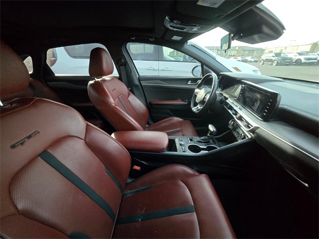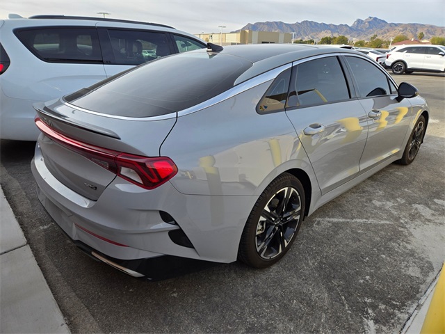Recent Arrival!25/33 City/Highway MPGWolf Gray 2022 Kia K5 GT-Line AWD 8-Speed Automatic I4If you don't drive here, you can't save here!Price may not include recon fee. GT-Line AWD Premium Package (Forward Collision Avoidance-Assist - Cyclist, Gloss Black Pillar & Door Frame Cover, Heated Steering Wheel, Highway Driving Assist, LED Interior Lighting, and Panoramic Sunroof), GT-Line Red Interior Package, 4-Wheel Disc Brakes, 6 Speakers, ABS brakes, Air Conditioning, Alloy wheels, AM/FM radio: SiriusXM, Apple CarPlay & Android Auto, Auto High-beam Headlights, Automatic temperature control, Brake assist, Bumpers: body-color, Carpeted Floor Mats, Cloth/Leatherette Seat Trim, Delay-off headlights, Driver door bin, Driver vanity mirror, Dual front impact airbags, Dual front side impact airbags, Electronic Stability Control, Four wheel independent suspension, Front anti-roll bar, Front Center Armrest, Front dual zone A/C, Front fog lights, Front reading lights, Fully automatic headlights, Heated door mirrors, Illuminated entry, Knee airbag, Low tire pressure warning, Navigation System, Occupant sensing airbag, Outside temperature display, Overhead airbag, Overhead console, Panic alarm, Passenger door bin, Passenger vanity mirror, Power door mirrors, Power driver seat, Power steering, Power windows, Radio data system, Radio: AM/FM/MP3 Audio System, Rear anti-roll bar, Rear seat center armrest, Rear side impact airbag, Rear window defroster, Remote keyless entry, Security system, Speed control, Speed-sensing steering, Split folding rear seat, Spoiler, Sport steering wheel, Steering wheel mounted audio controls, Tachometer, Telescoping steering wheel, Tilt steering wheel, Traction control, Trip computer, Turn signal indicator mirrors, Variably intermittent wipers, and Wheels: 7.5J x 18" Gloss Black Machined Finish Alloy.