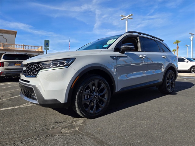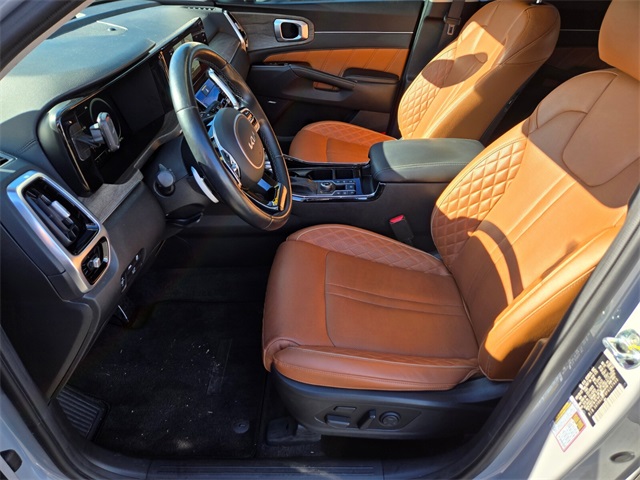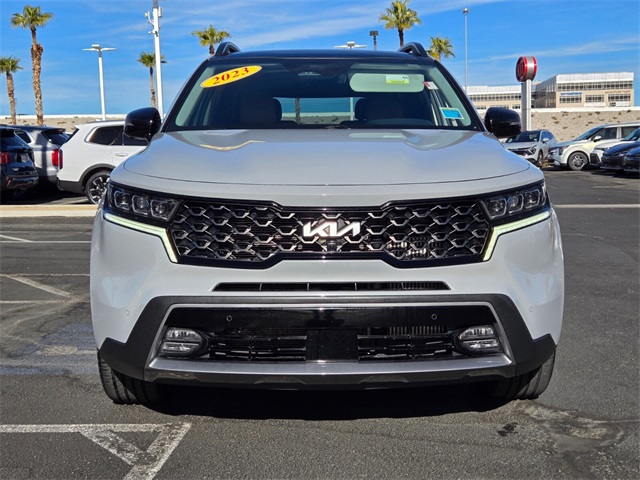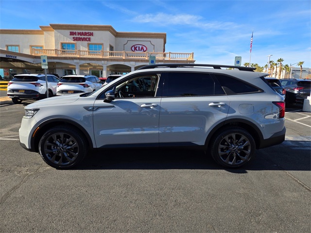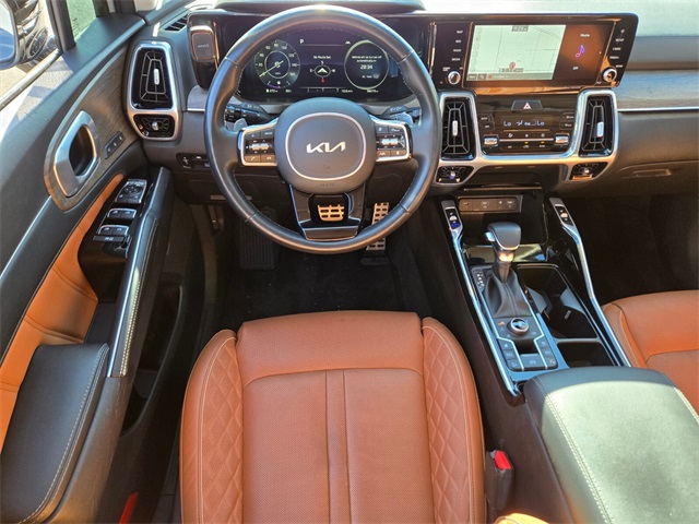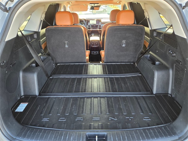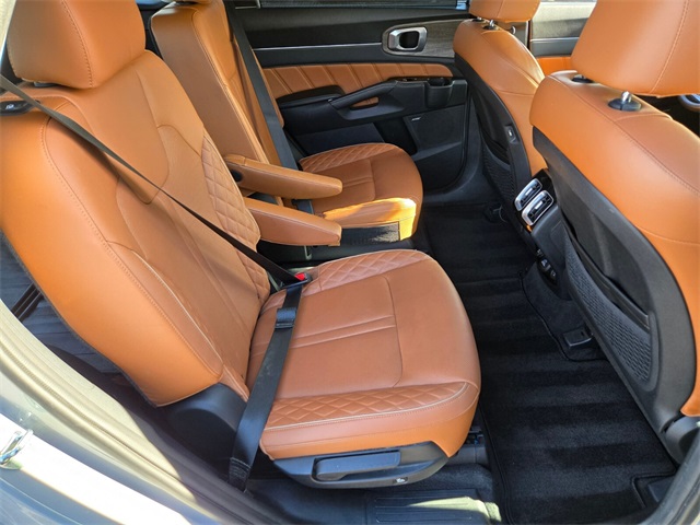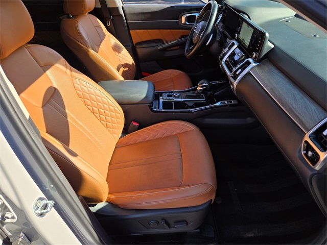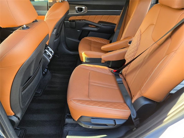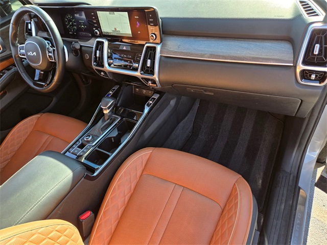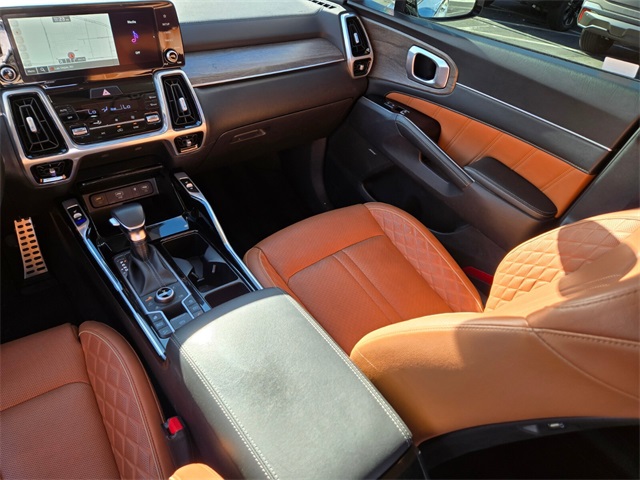 CARFAX One-Owner.22/27 City/Highway MPGWolf Gray 2023 Kia Sorento X-Line SX Prestige AWD 8-Speed DCT 2.5L I4 DGI Turbocharged DOHC 16V LEV3-ULEV70 281hp AWD.If you don't drive here, you can't save here!Price may not include recon fee. X-Line Rust Interior Color Package, AWD, 12 Speakers, 3.316 Axle Ratio, 3rd row seats: split-bench, 4-Wheel Disc Brakes, ABS brakes, Air Conditioning, Alloy wheels, AM/FM radio: SiriusXM, Apple CarPlay & Android Auto, Auto High-beam Headlights, Auto-dimming Rear-View mirror, Automatic temperature control, Brake assist, Bumpers: body-color, Cargo Cover, Cargo Net, Carpet Floor Mats, Delay-off headlights, Driver door bin, Driver vanity mirror, Dual front impact airbags, Dual front side impact airbags, Electronic Stability Control, Emergency communication system, Folding Cargo Tray, Four wheel independent suspension, Front anti-roll bar, Front Bucket Seats, Front Center Armrest, Front dual zone A/C, Front fog lights, Front reading lights, Fully automatic headlights, Garage door transmitter: HomeLink, Heated & Ventilated Front Bucket Seats, Heated door mirrors, Heated front seats, Heated rear seats, Heated steering wheel, Illuminated entry, Knee airbag, Leather steering wheel, Low tire pressure warning, Memory seat, Navigation System, Occupant sensing airbag, Outside temperature display, Overhead airbag, Overhead console, Panic alarm, Passenger door bin, Passenger vanity mirror, Perforated Genuine Leather Seat Trim, Power door mirrors, Power driver seat, Power Liftgate, Power moonroof, Power passenger seat, Power steering, Power windows, Radio data system, Radio: AM/FM Bose Premium Audio System, Rain sensing wipers, Rear air conditioning, Rear anti-roll bar, Rear reading lights, Rear window defroster, Rear window wiper, Remote keyless entry, Roof rack: rails only, Security system, Smart Key w/ Push Button and Remote Start, Speed control, Speed-sensing steering, Split folding rear seat, Spoiler, Steering wheel mounted audio controls, Tachometer, Telescoping steering wheel, Tilt steering wheel, Traction control, Trip computer, Turn signal indicator mirrors, Variably intermittent wipers, Ventilated front seats, and Wheels: 8.5J x 20" Matte Gray Alloy.