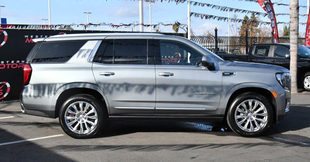 Scores 18 Highway MPG and 14 City MPG! This GMC Yukon delivers a Gas V8 6.2L/ engine powering this Automatic transmission. WHEELS, 22 X 9 (55.9 CM X 22.9 CM) BRIGHT MACHINED ALUMINUM WITH PREMIUM PAINT Includes (SFE) wheel locks, LPO.), TRANSMISSION, 10-SPEED AUTOMATIC electronically controlled with overdrive, includes Traction Select System including tow/haul (STD), TIRES, 275/50R22SL ALL-SEASON, BLACKWALL.*This GMC Yukon Comes Equipped with These Options *LICENSE PLATE FRONT MOUNTING PACKAGE (Included on orders with ship-to states that require a front license plate.) , SUNROOF, POWER PANORAMIC, DUAL-PANE tilt-sliding with express-open and close and power sunshade, STERLING METALLIC, SEATS, FRONT BUCKET (STD), REAR AXLE, 3.23 RATIO, LPO, WHEEL LOCKS, SET OF 4 (dealer-installed), JET BLACK, PERFORATED LEATHER SEATING SURFACES, GVWR, 7500 LBS. (3402 KG) (STD), ENGINE, 6.2L ECOTEC3 V8 with Dynamic Fuel Management, Direct Injection and Variable Valve Timing, includes aluminum block construction (420 hp [313 kW] @ 5600 rpm, 460 lb-ft of torque [624 Nm] @ 4100 rpm) (STD), DENALI PREFERRED EQUIPMENT GROUP Includes Standard Equipment.